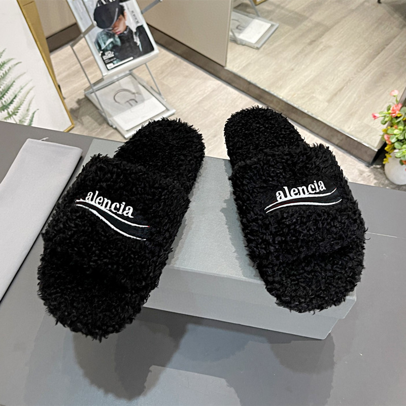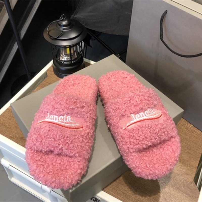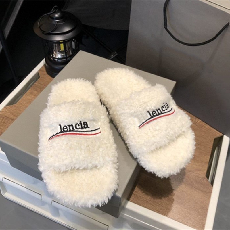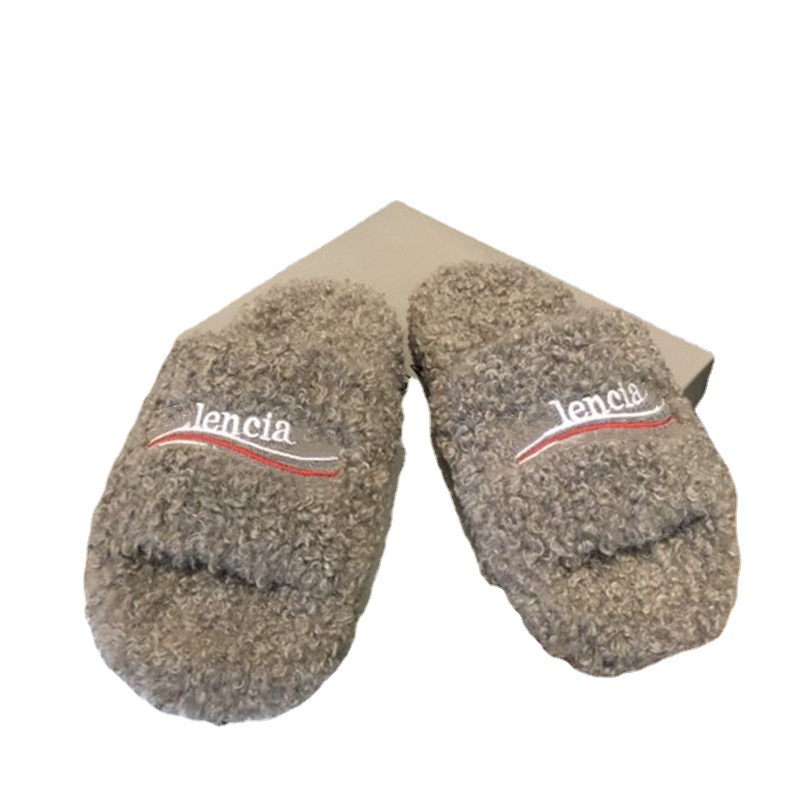Paris wool slippers women's casual wear autumn and winter new B family embroidered letter family word couple wool slippers