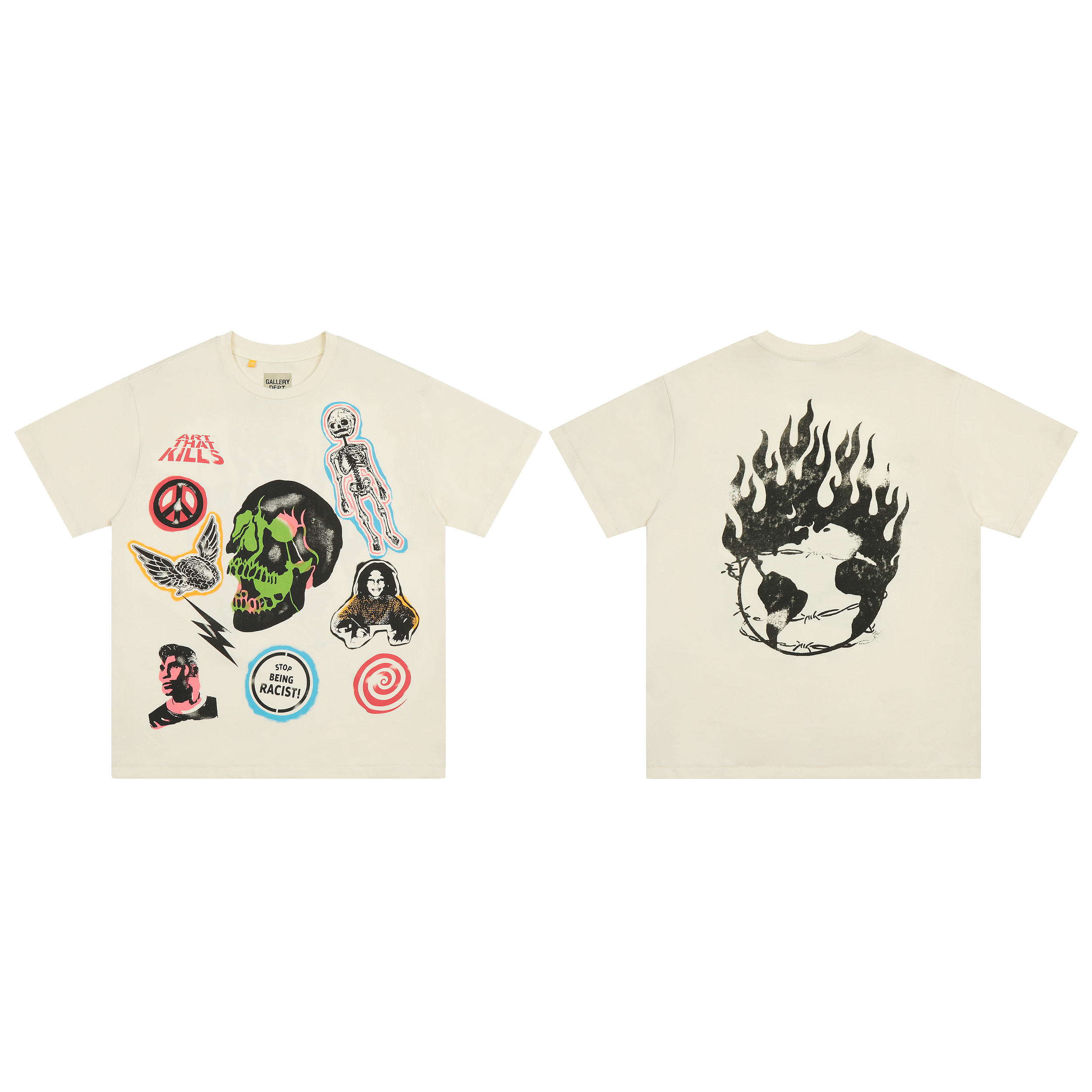 Gallery dept printed short-sleeved American tide brand retro old vintage high street loose round neck T-shirt man