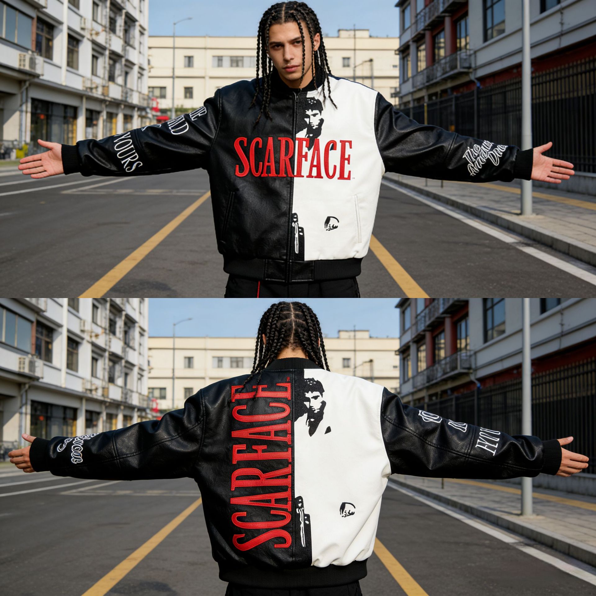 2025 European and American foreign trade baseball uniforms, Toronto Raptors embroidered PU leather sleeves, spliced with padded men's and women's jackets