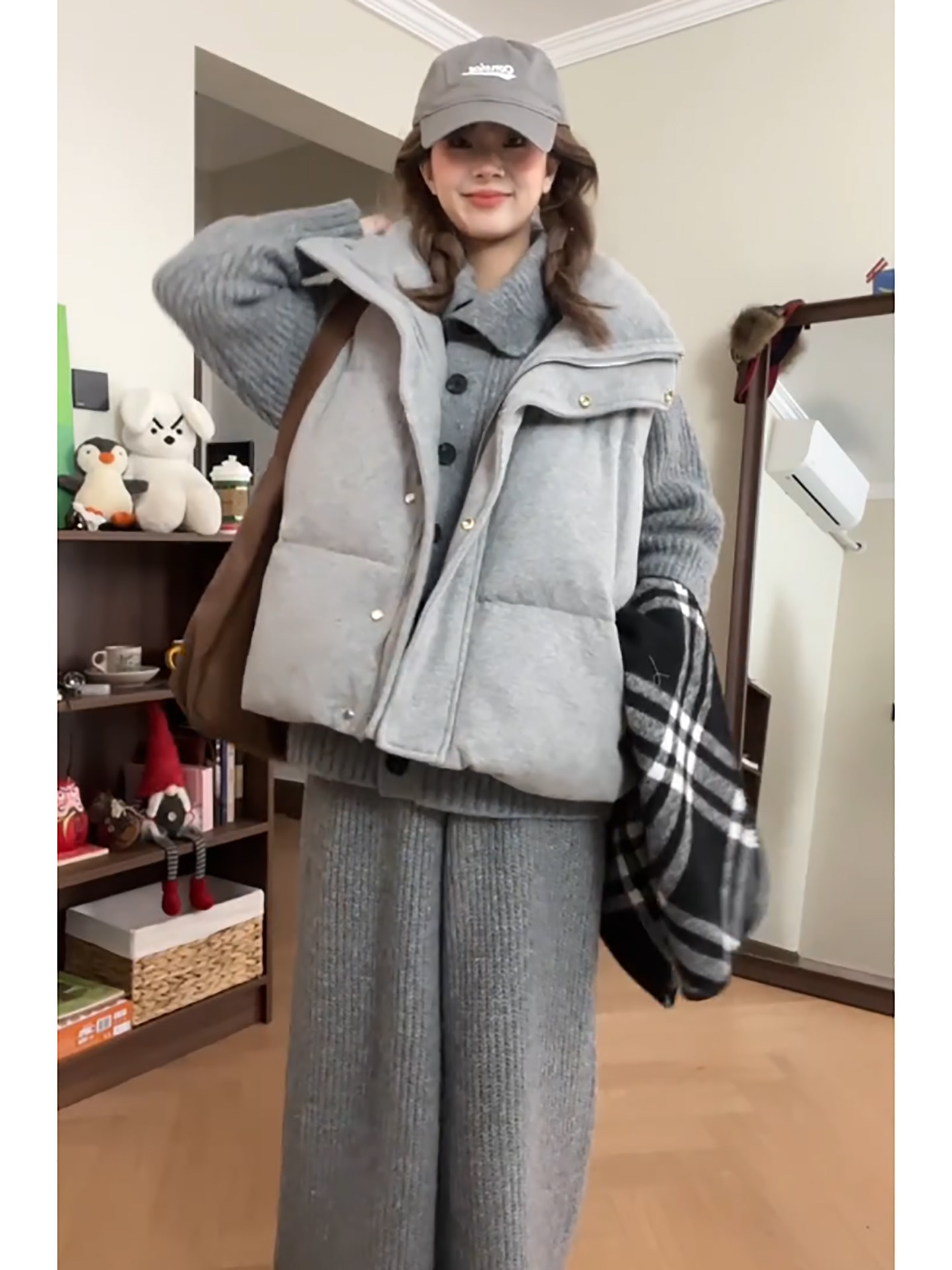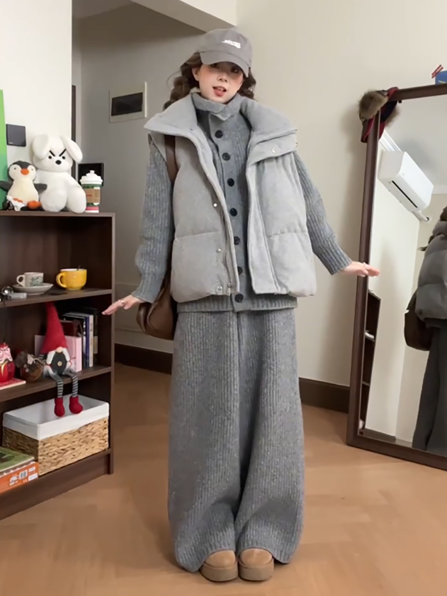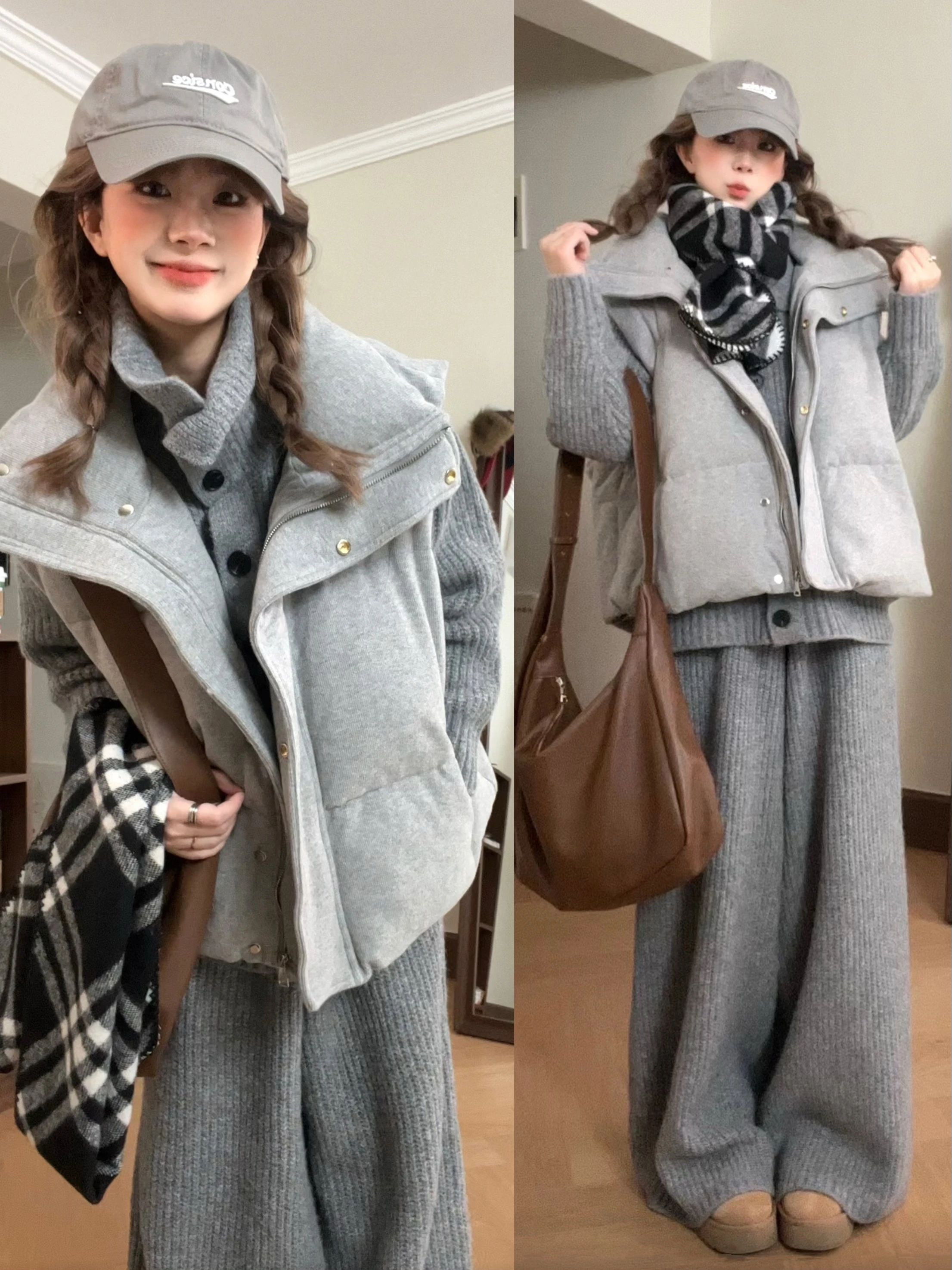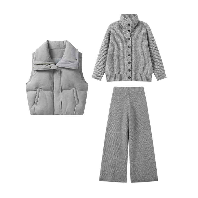 Lazy style cotton suit vest suit women's winter outfit is a complete set of Korean layered sweaters and wide-leg pants three-piece set