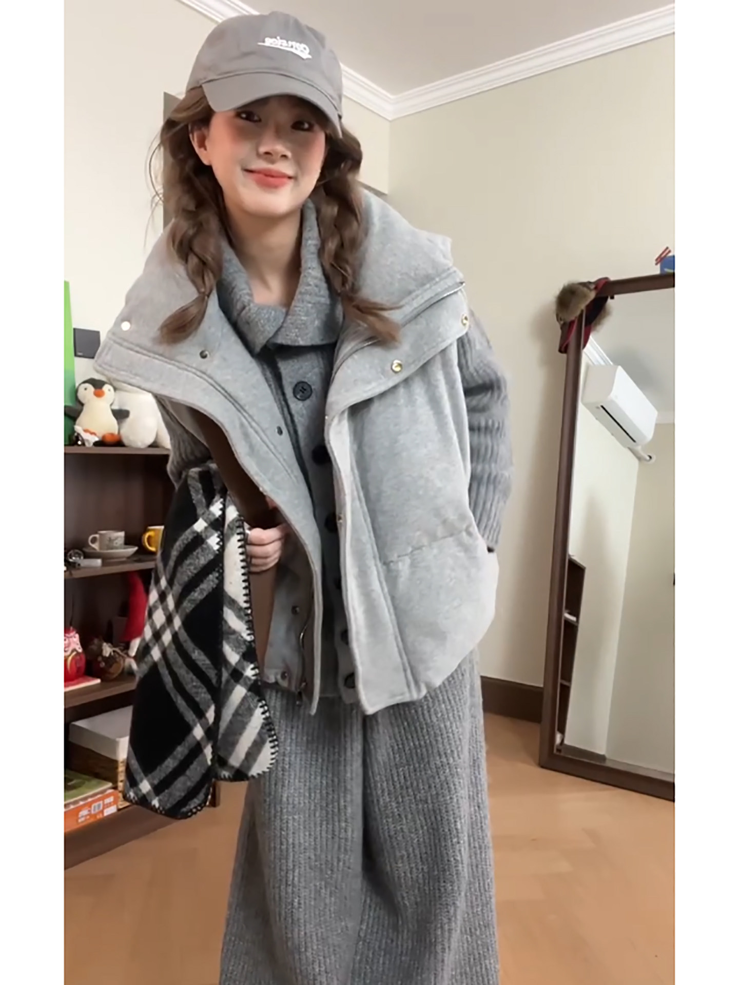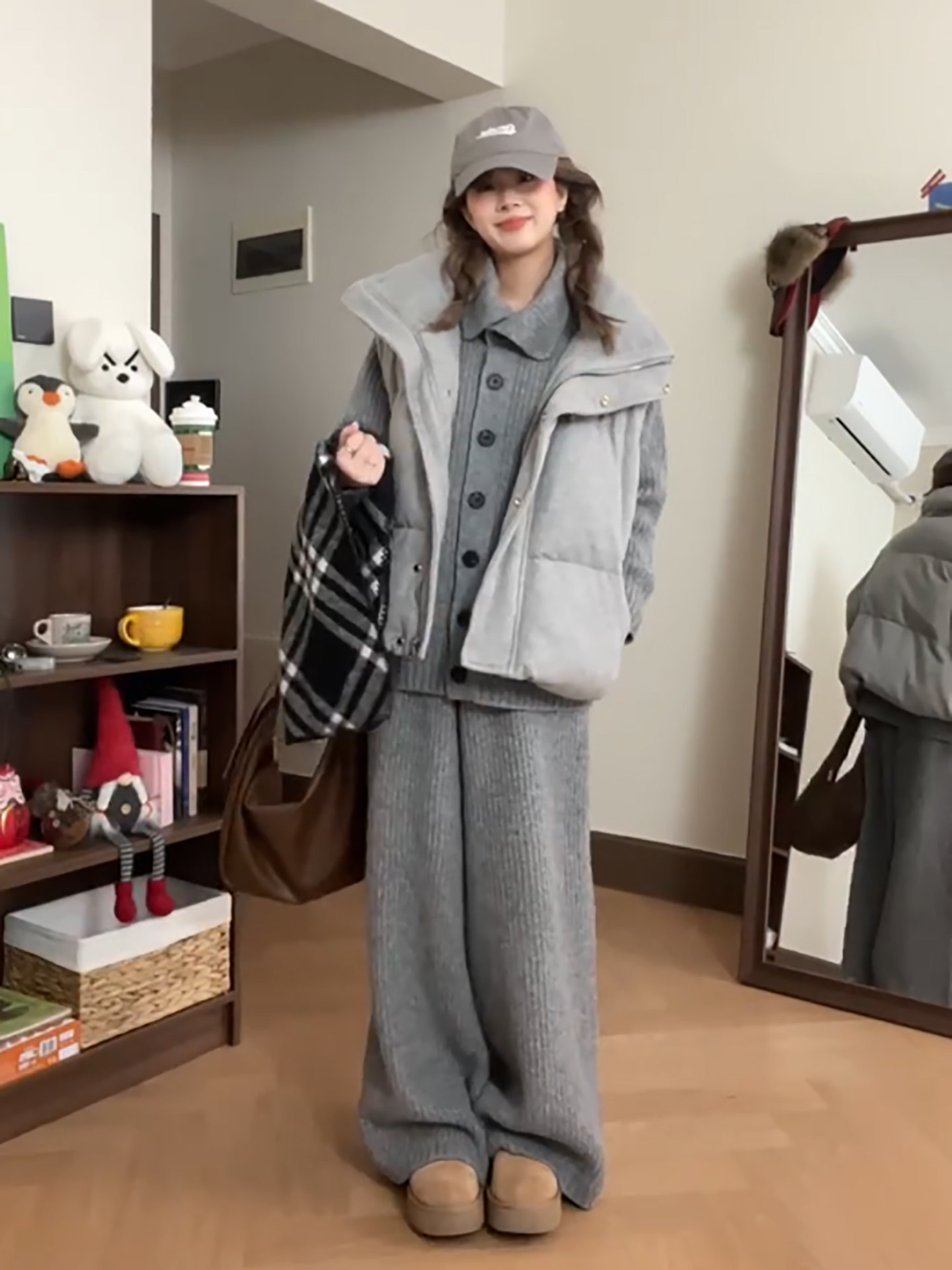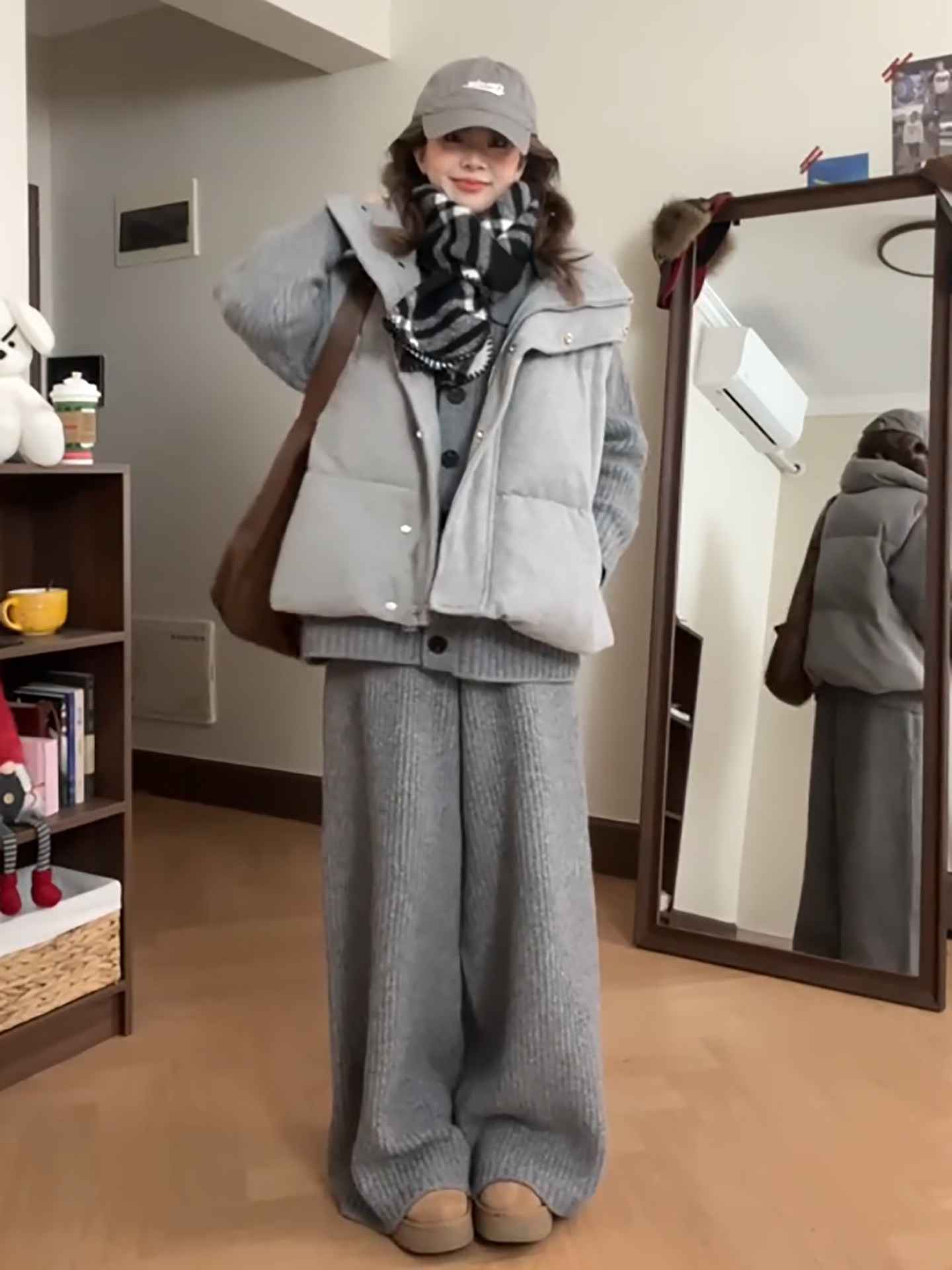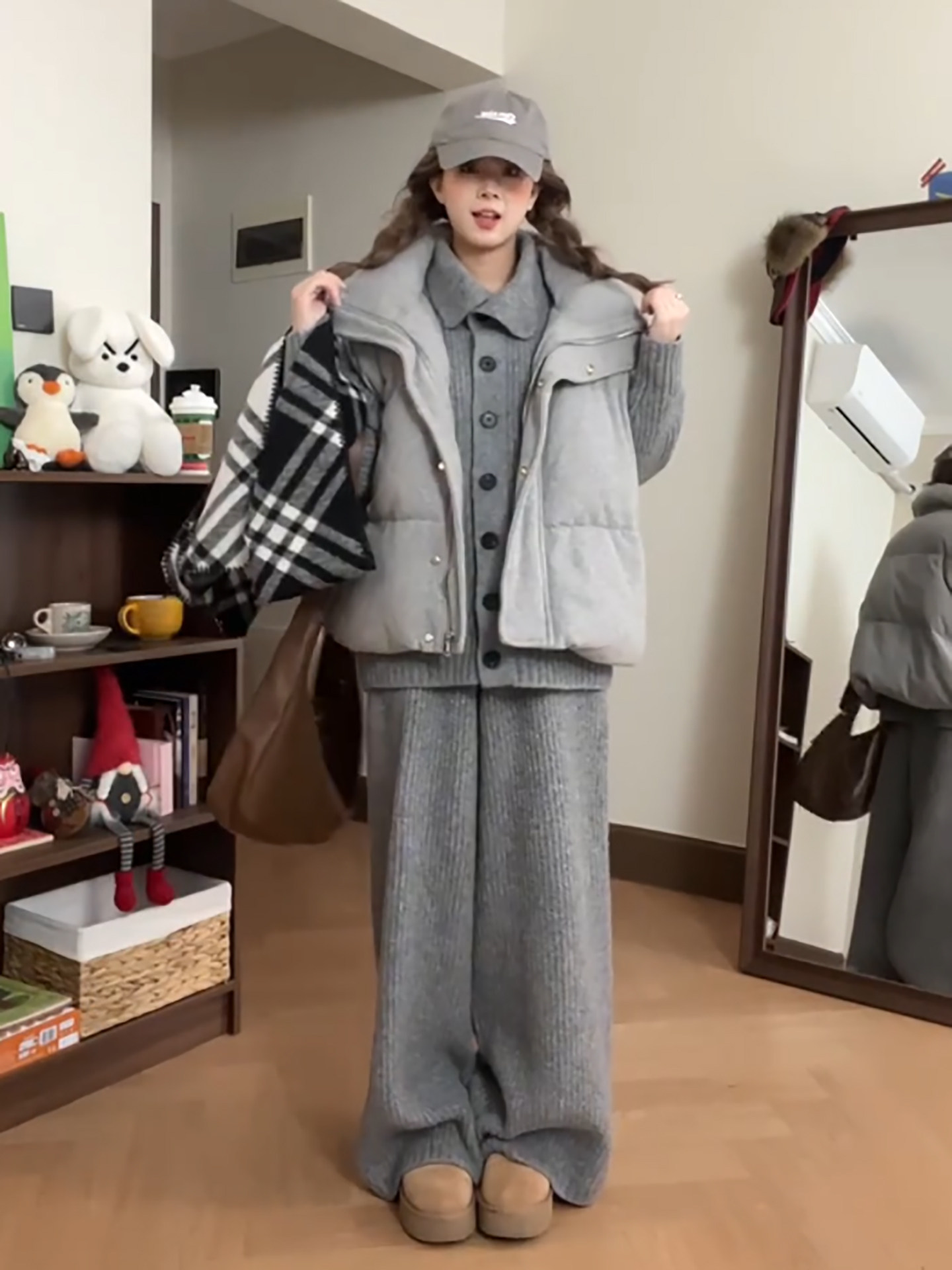 Lazy style cotton suit vest suit women's winter outfit is a complete set of Korean layered sweaters and wide-leg pants three-piece set