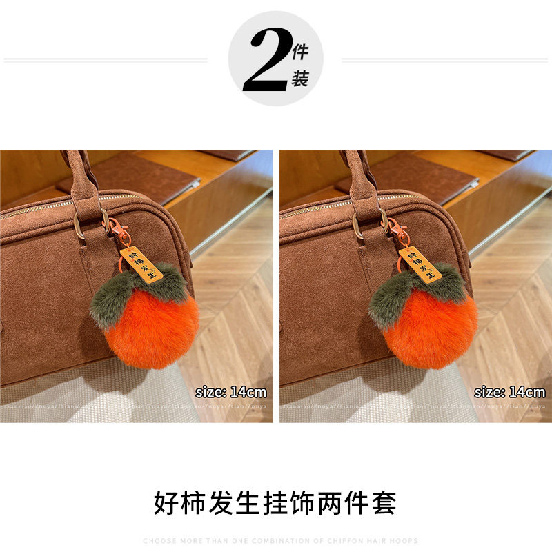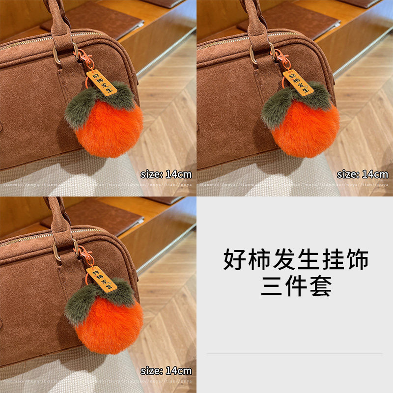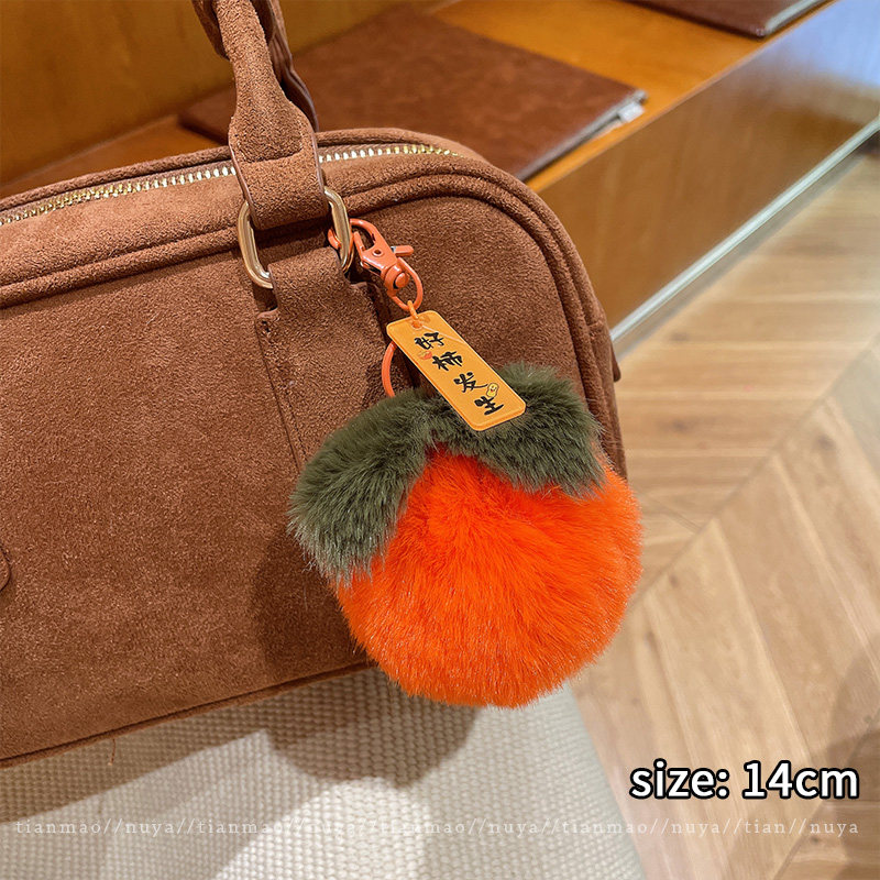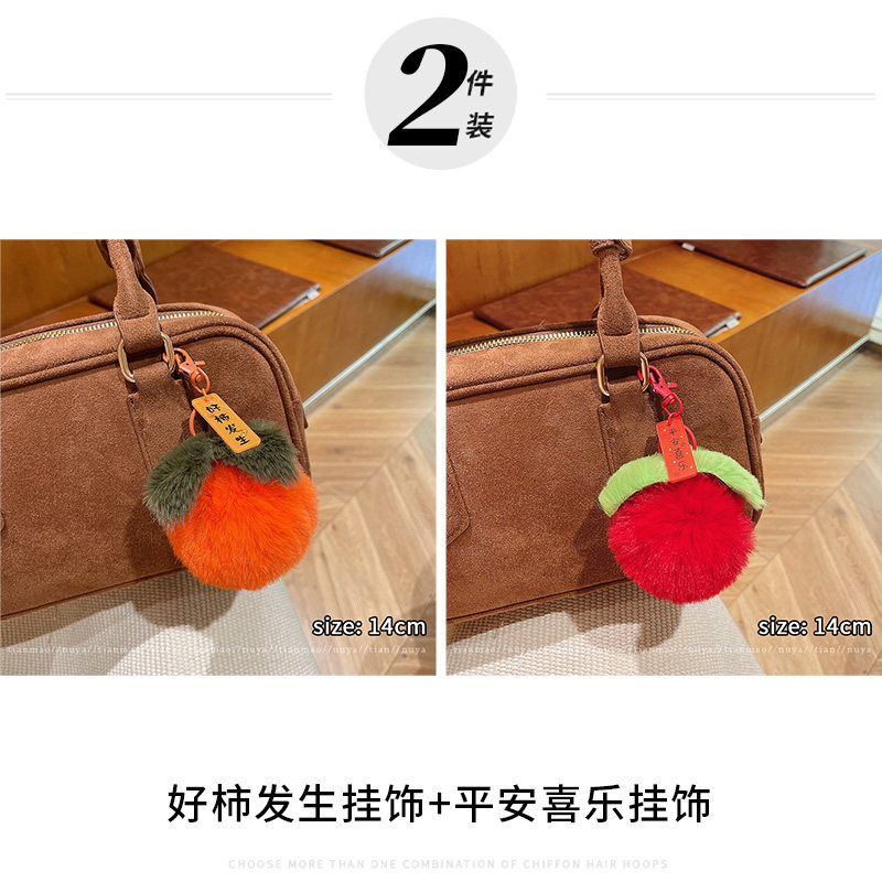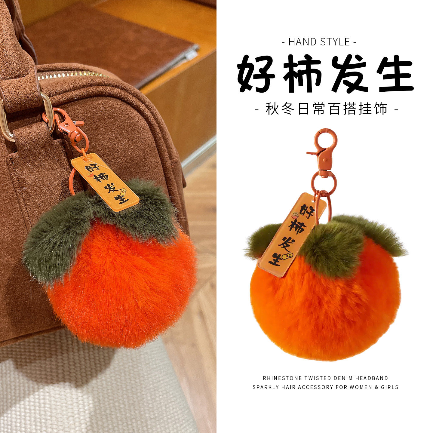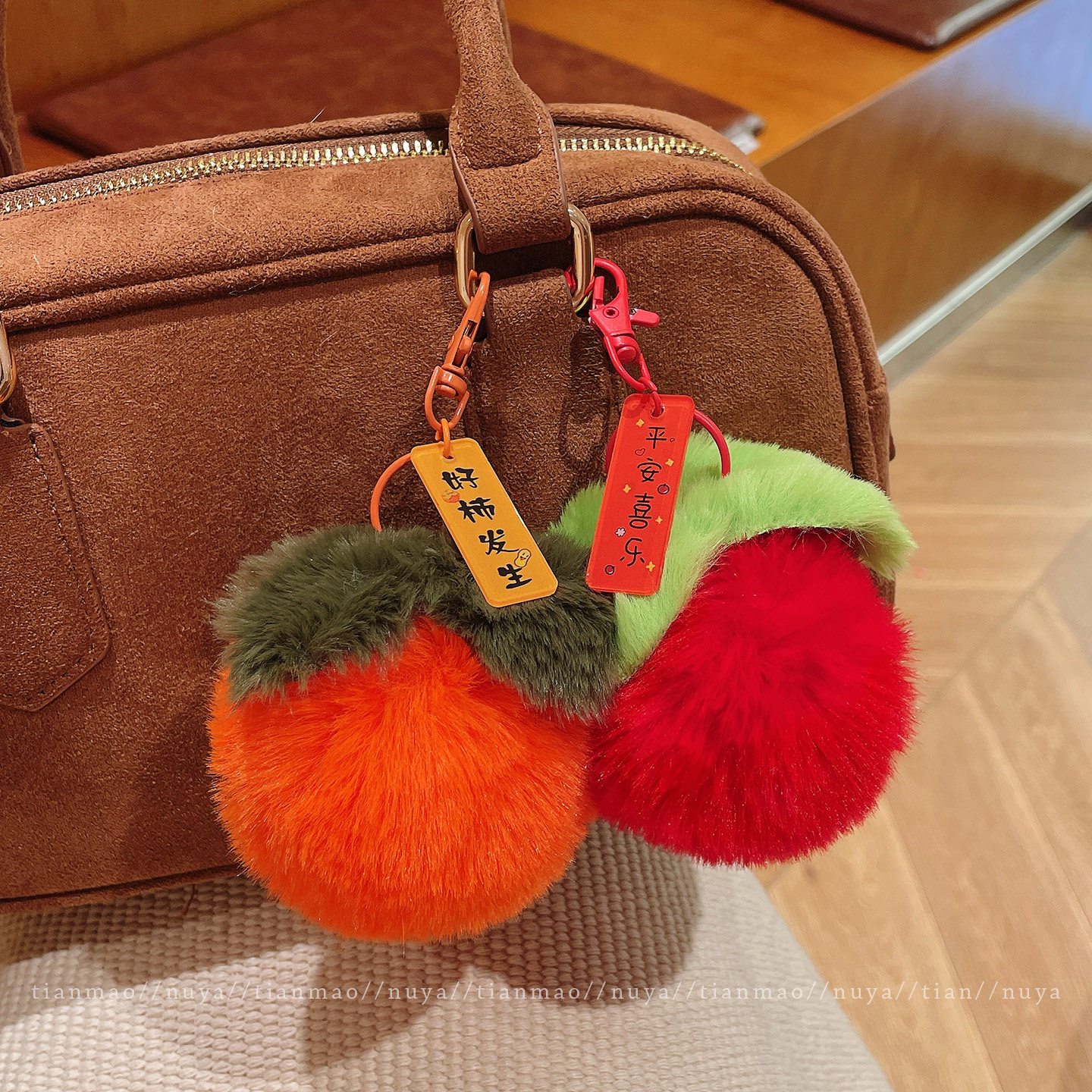 Good persimmon happens imitation rabbit fur plush bag pendant persimmon persimmon ruyi keychain high-end pendant New Year's gift