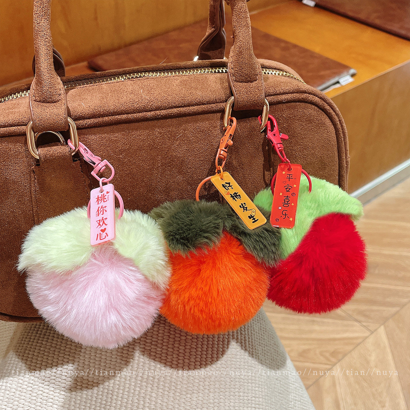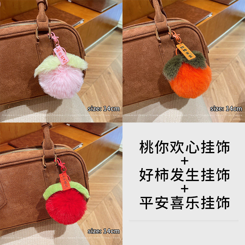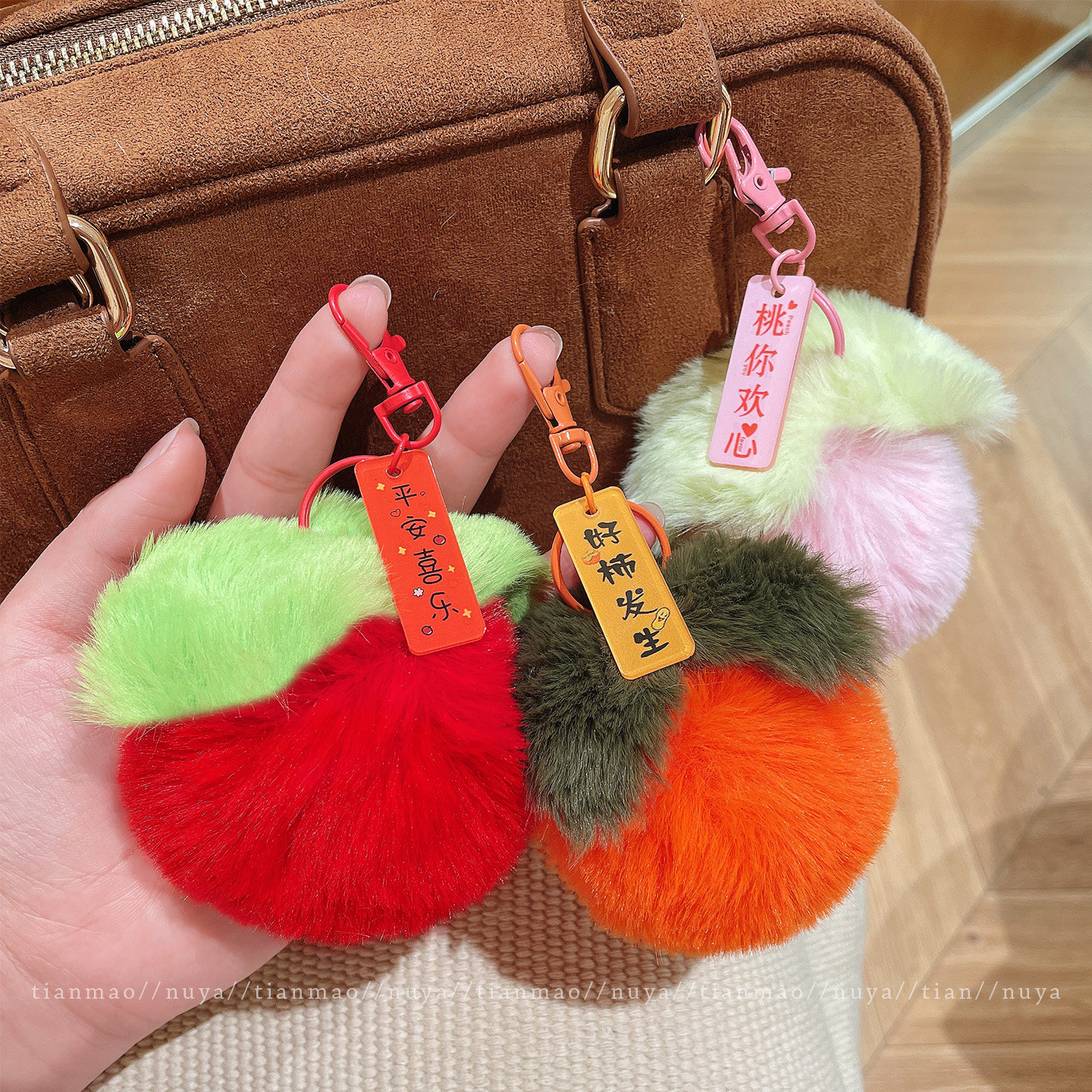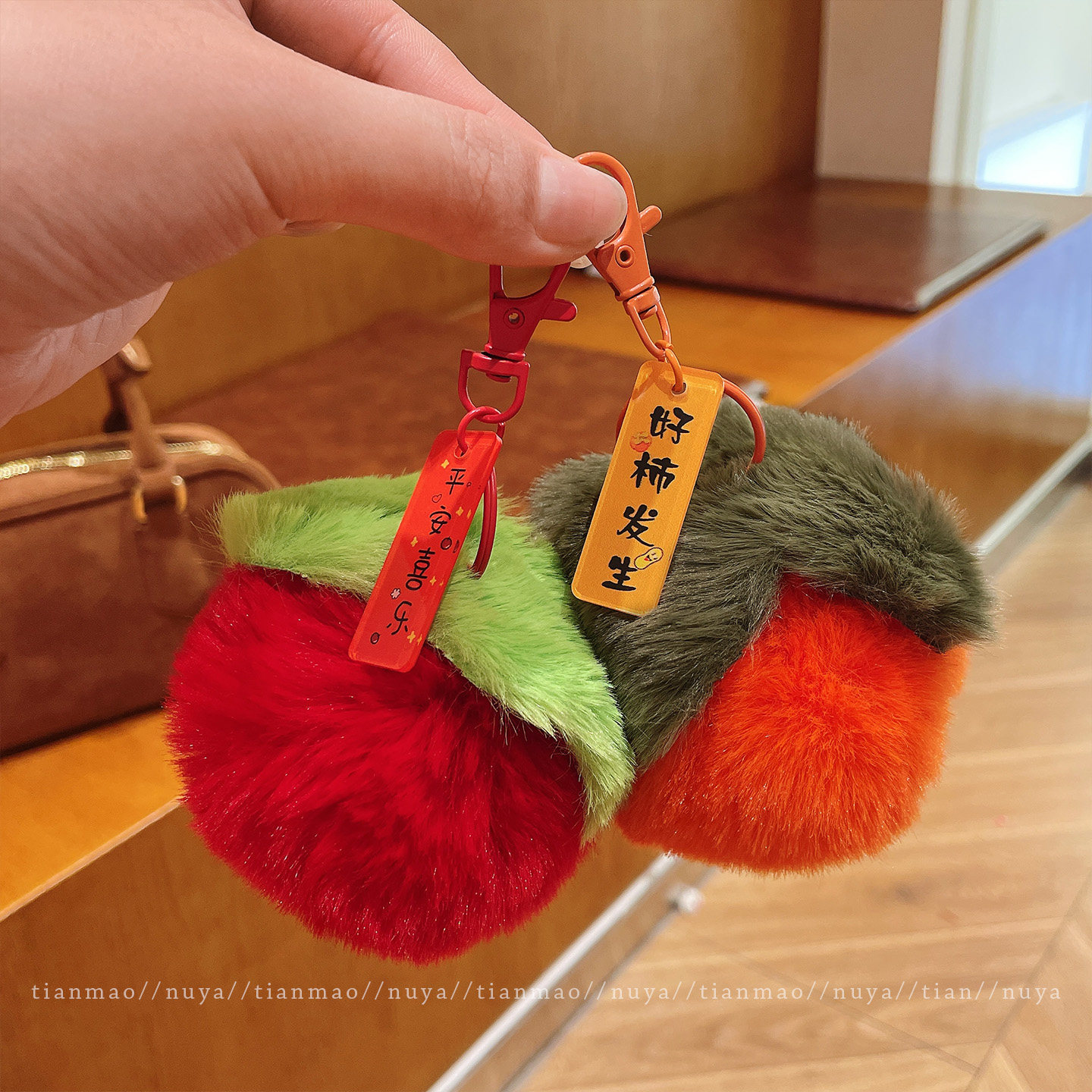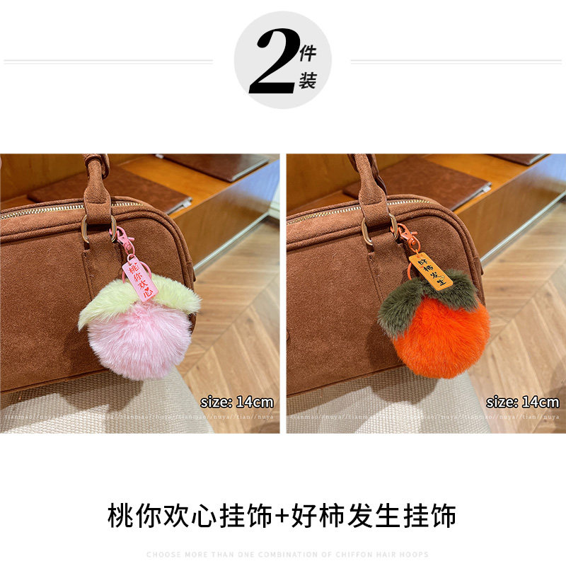 Good persimmon happens imitation rabbit fur plush bag pendant persimmon persimmon ruyi keychain high-end pendant New Year's gift