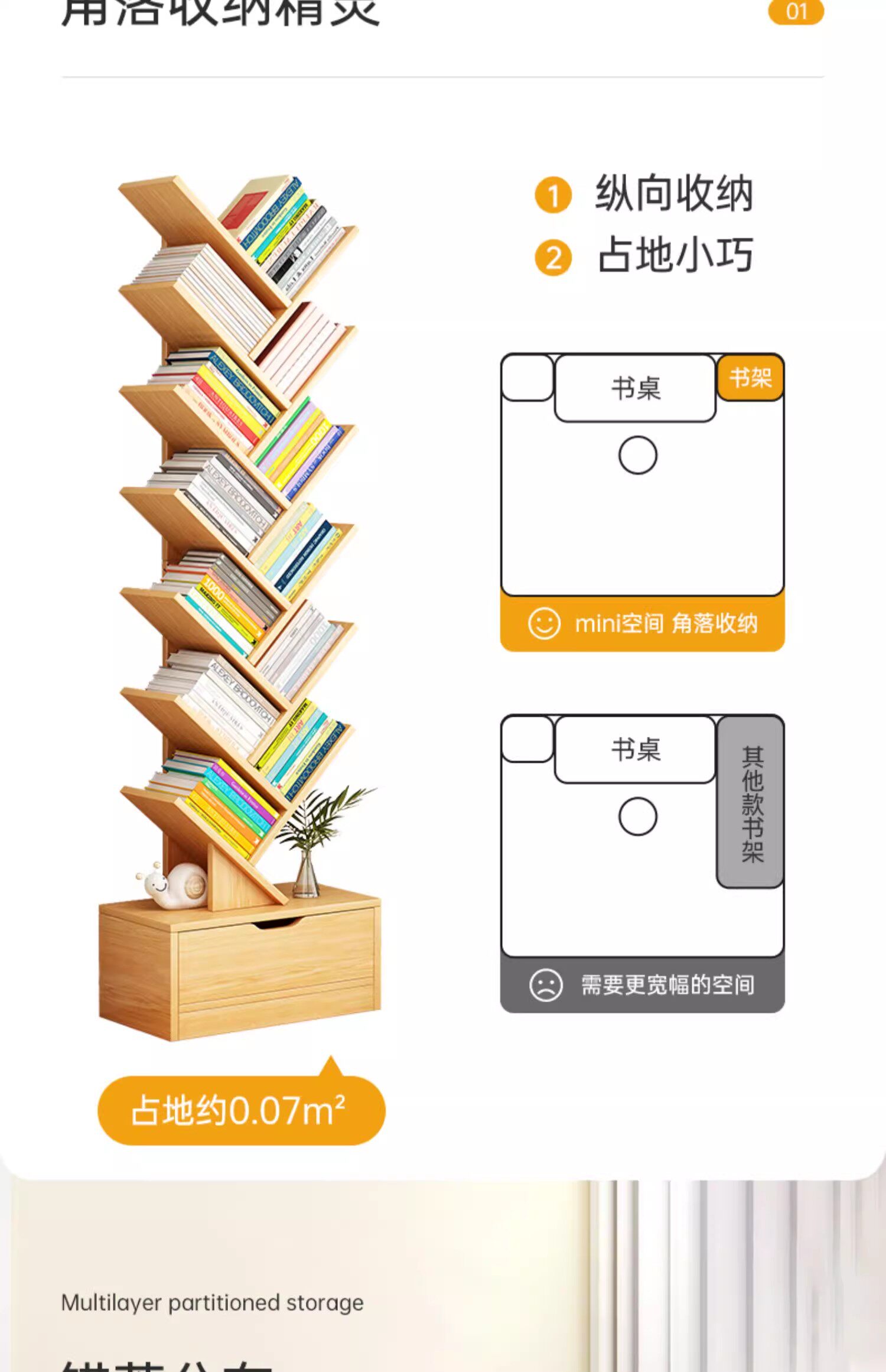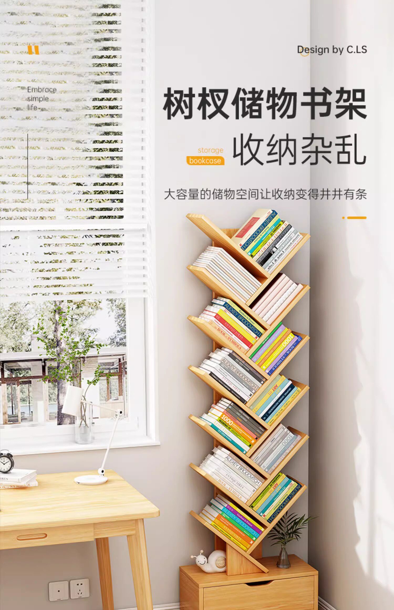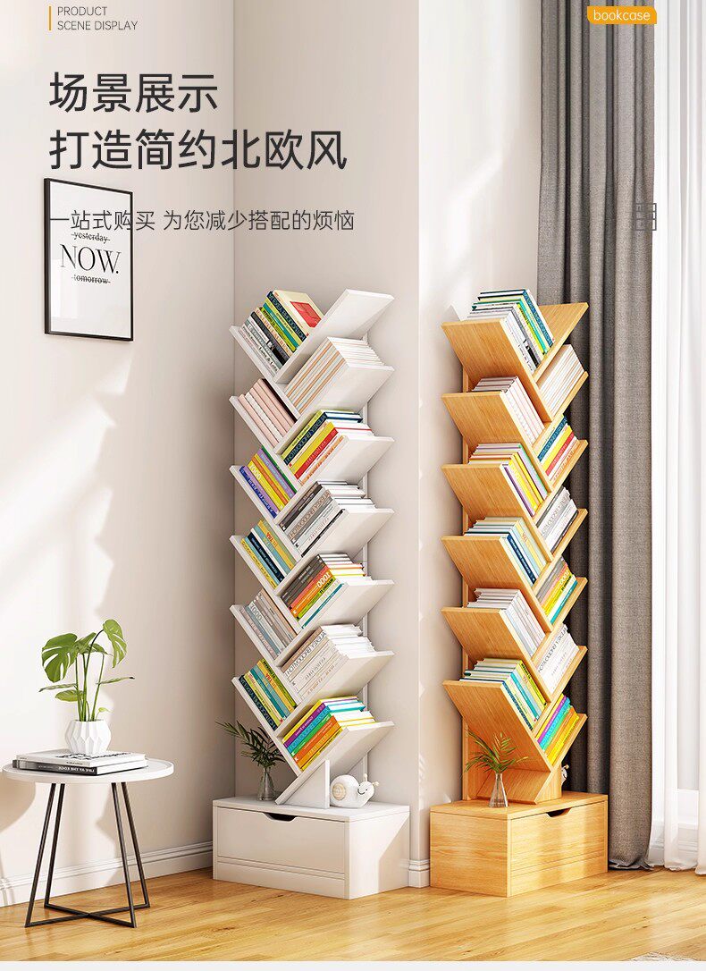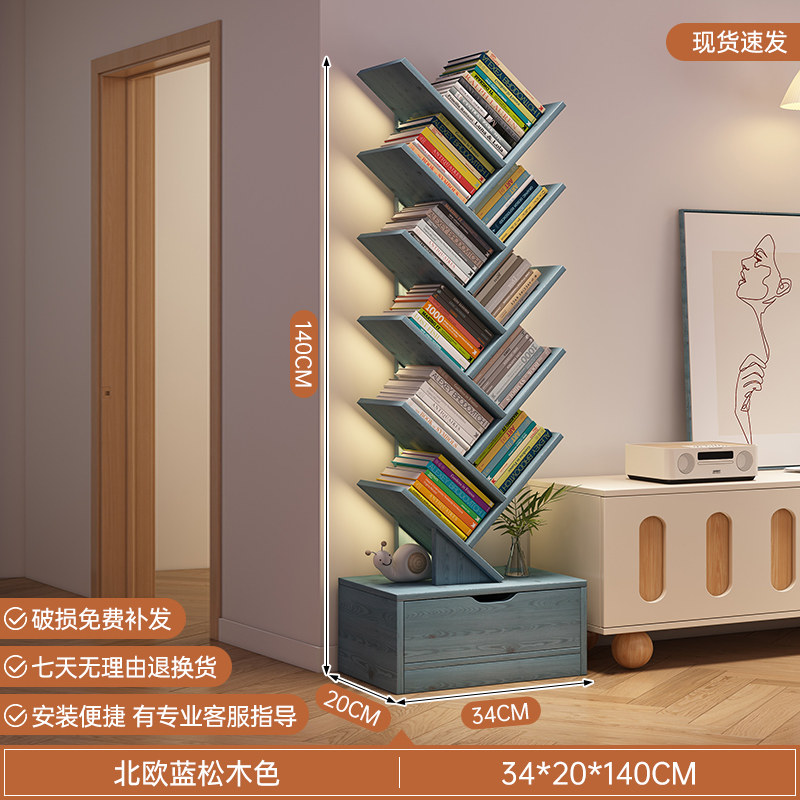 Tree Shape Bookshelf Floor-to-ceiling Bedroom Shelf Living Room Cabinet Simple Storage Bookshelf Home Multi-layer Creative Narrow Bookcase