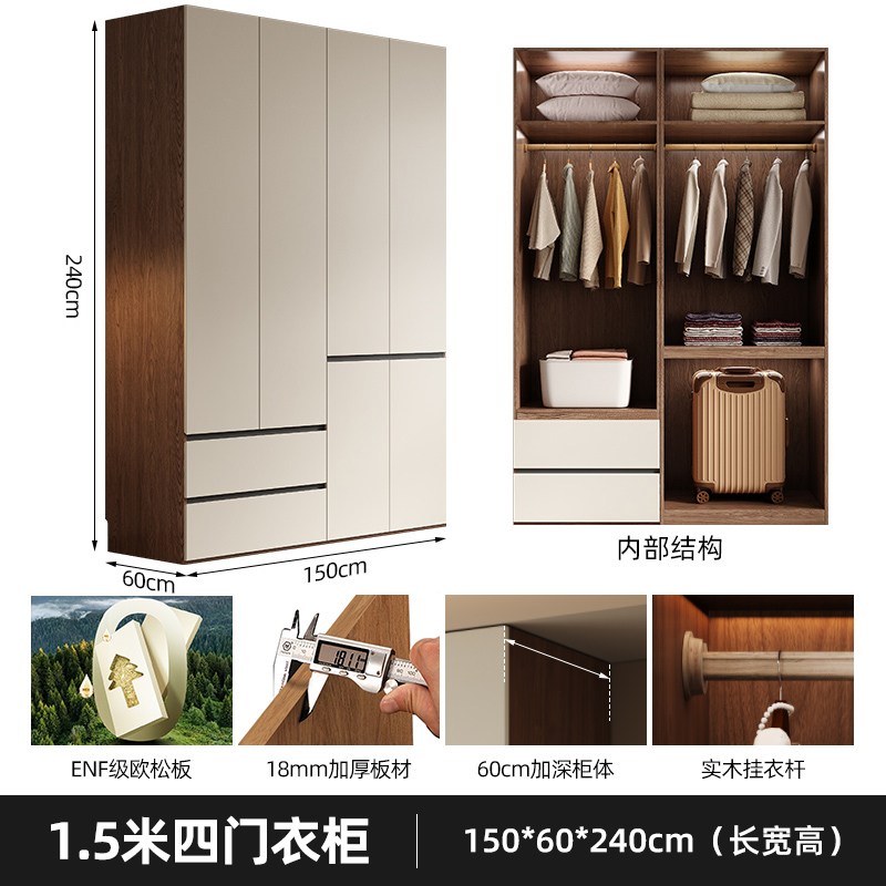 Wardrobe home swing door adult simple modern combination economy upper and lower drawer cabinet solid wood storage large wardrobe