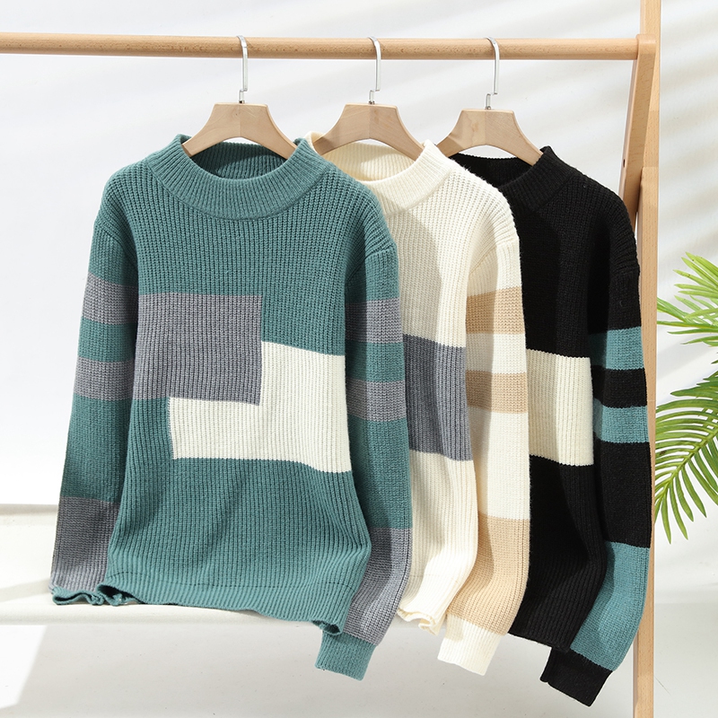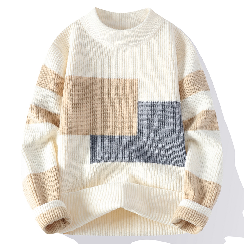 Contrasting sweater, men's winter thickened trendy brand knitwear, loose and luxurious, lazy, fashionable and versatile warm thread