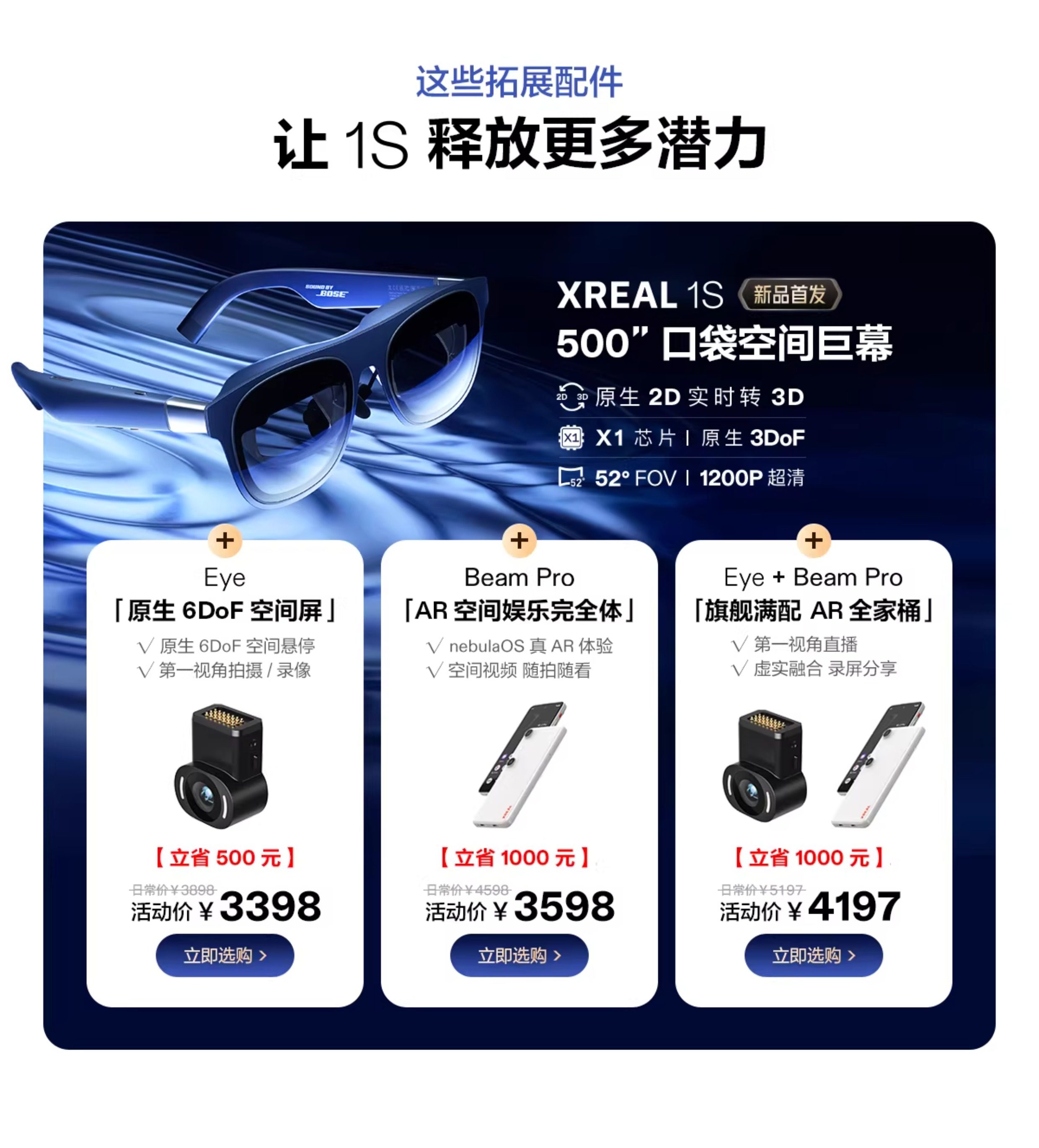 [New Product Launch] XREAL 1S AR smart glasses native 2D to 3D self-developed X1 chip giant screen in the air 500-inch 52-degree FOV non-VRAI glasses