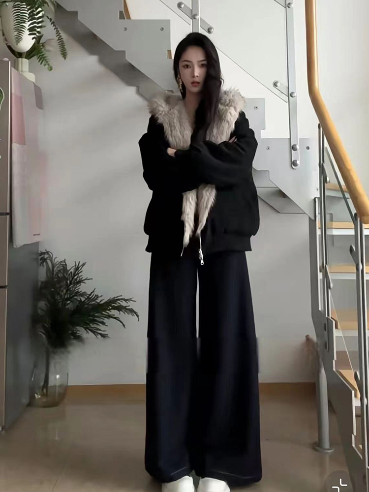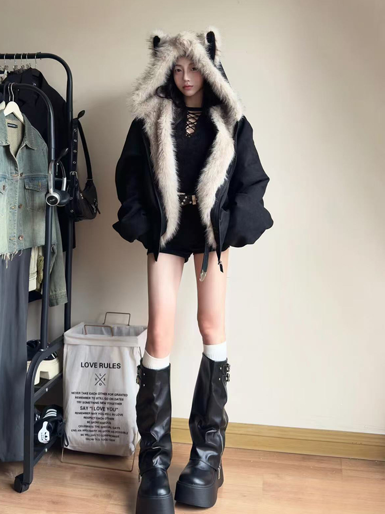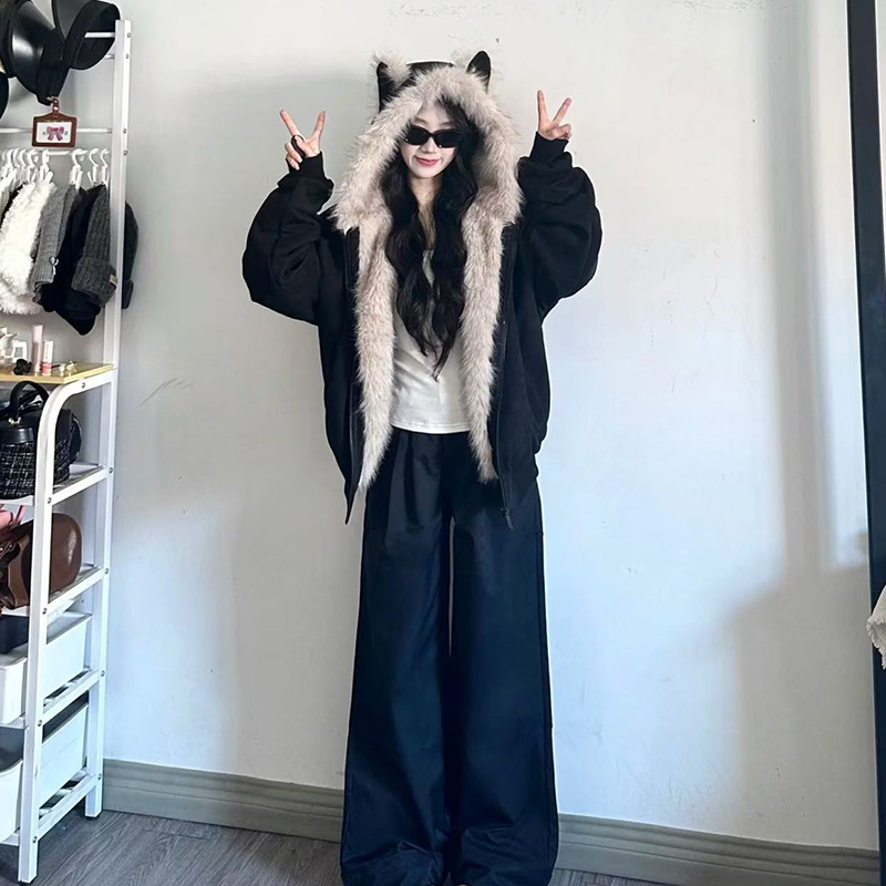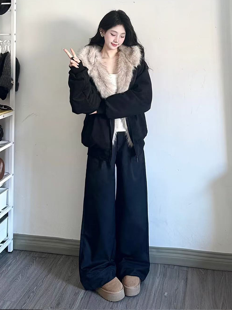 Mountain carved fluffy collar cotton jacket jacket for men and women pile thickened jacket American cleanfit winter cotton jacket