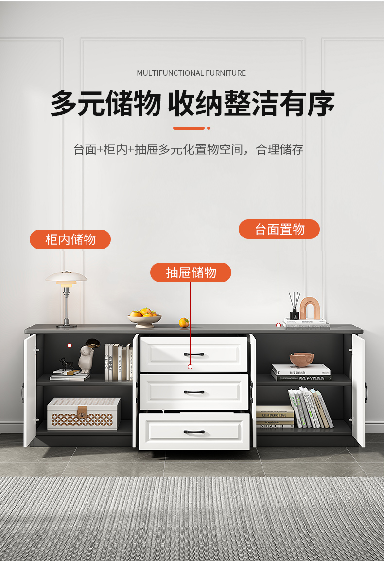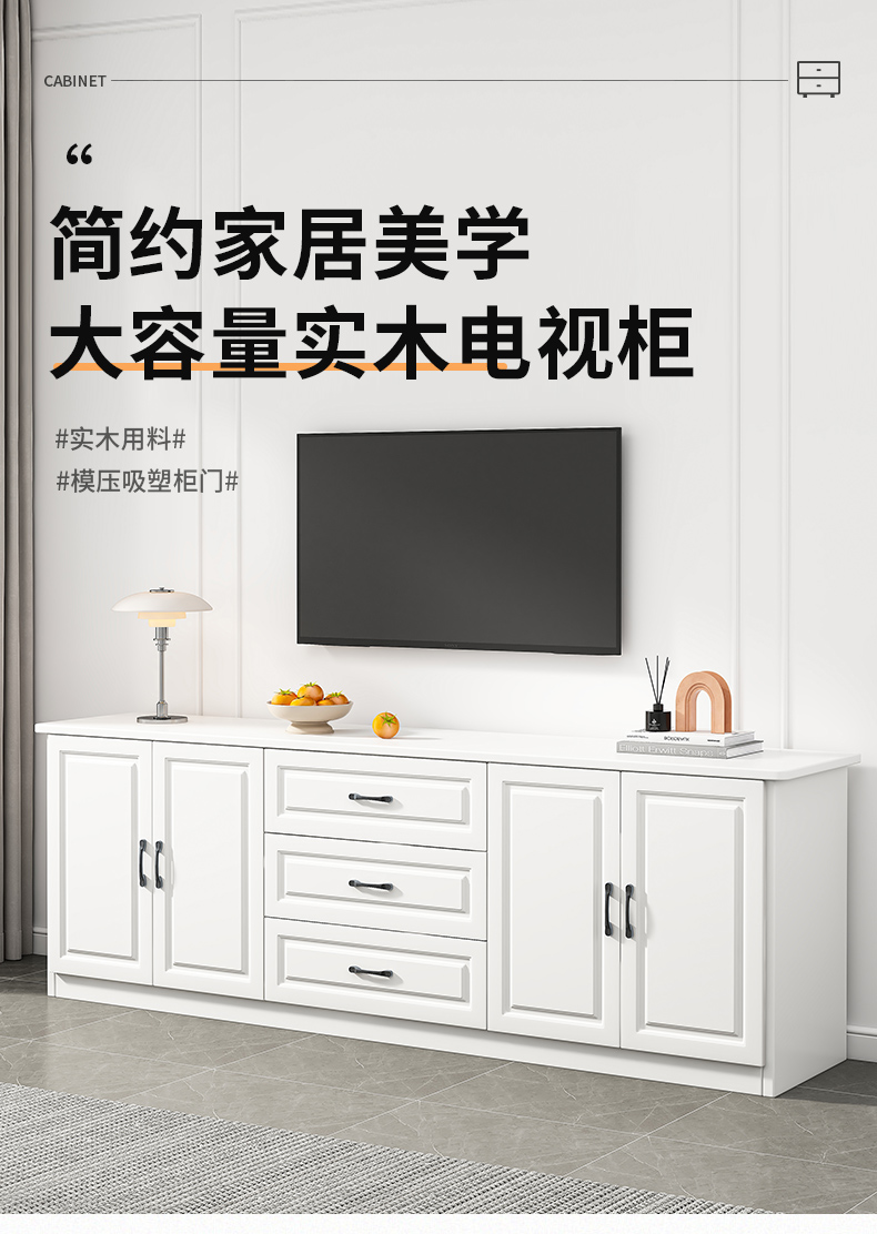 Solid wood TV cabinet living room modern simple light luxury small apartment bedroom storage integrated TV cabinet