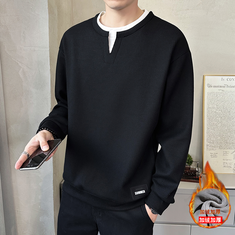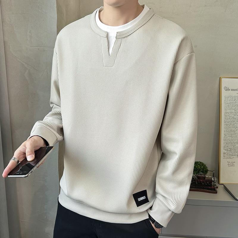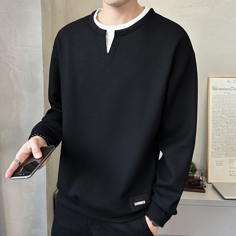 Design sense fake two men's sweatshirts, hatless long sleeve T-shirts, spring and autumn fashion brands, casual and versatile men's tops