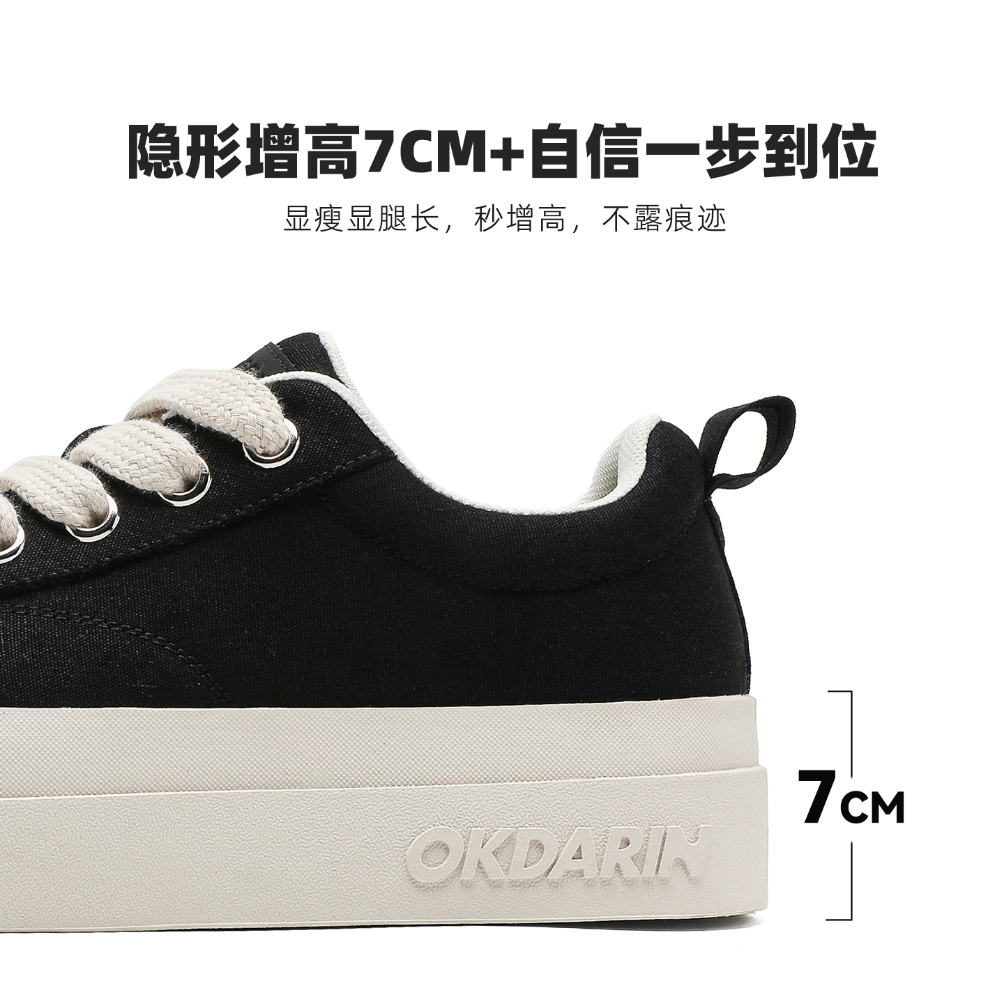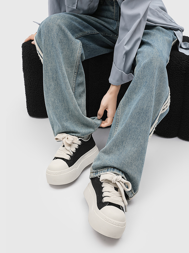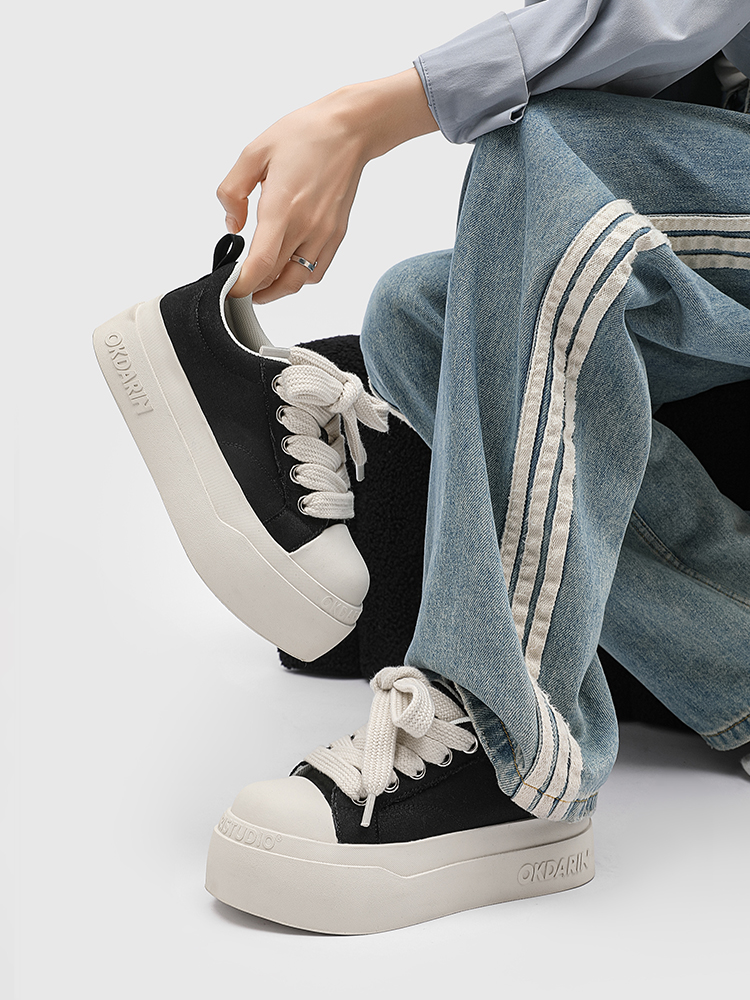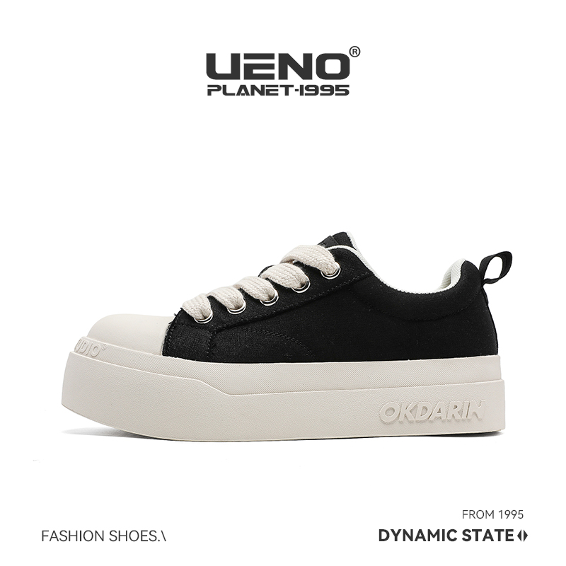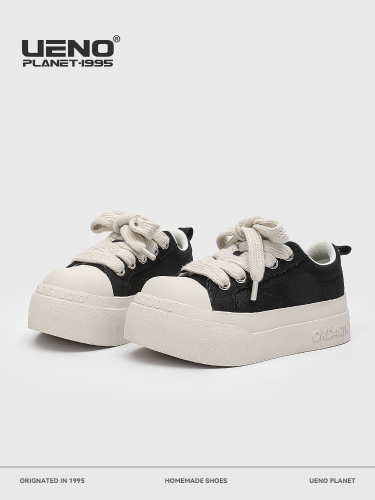 UENO American black and white platform shoes women's breathable big-toe canvas shoes height-increasing casual shoes men's versatile sports shoes