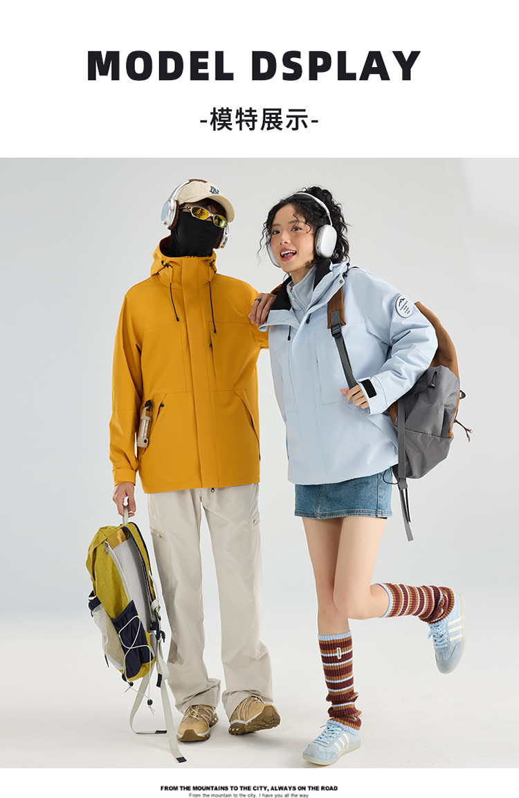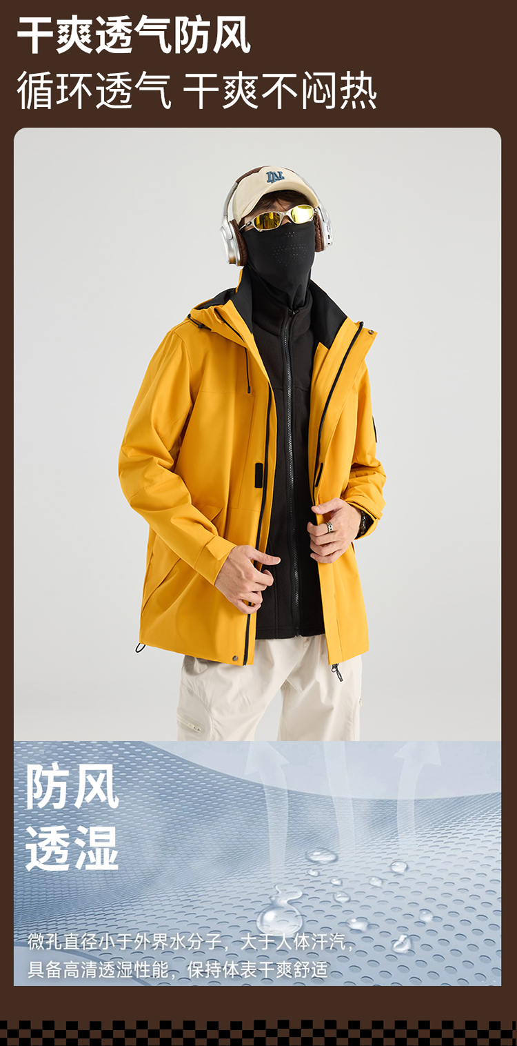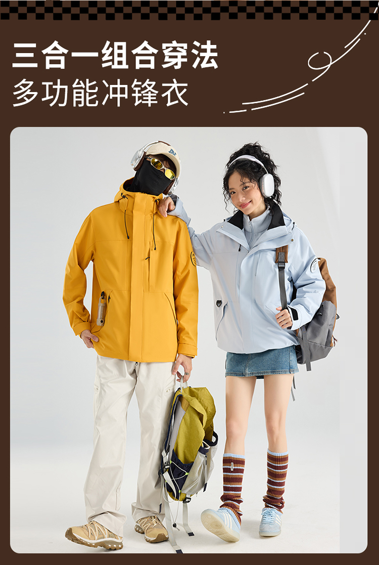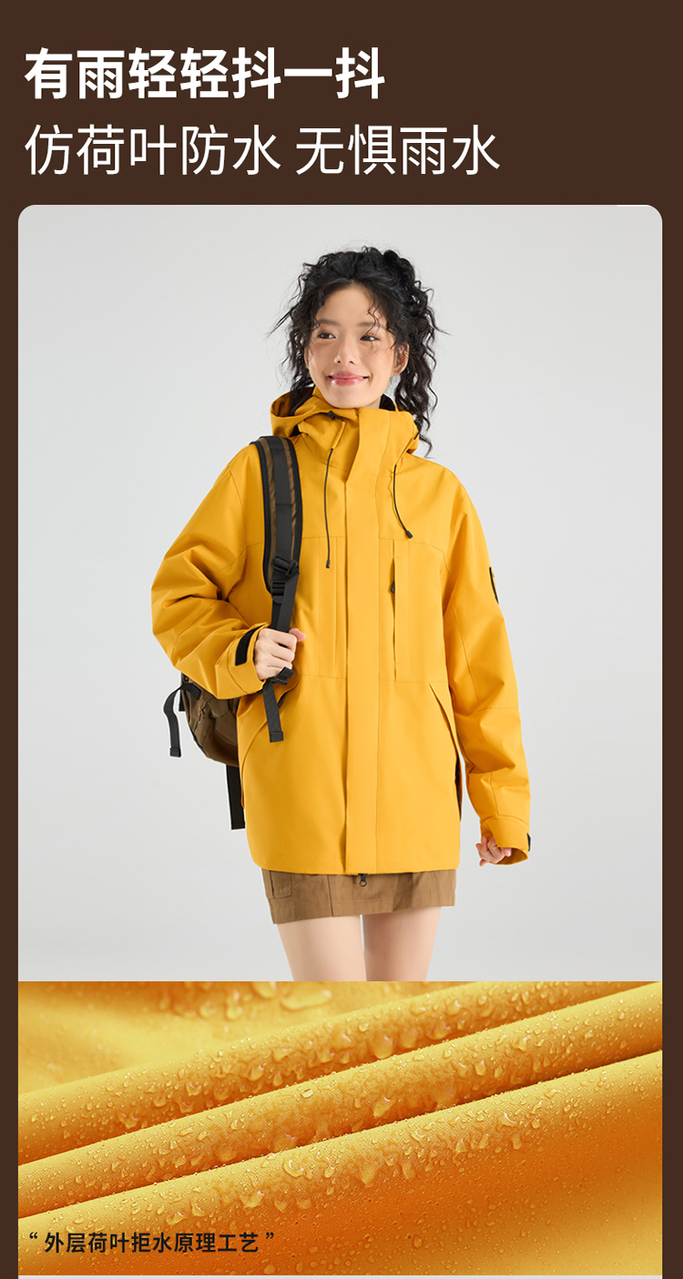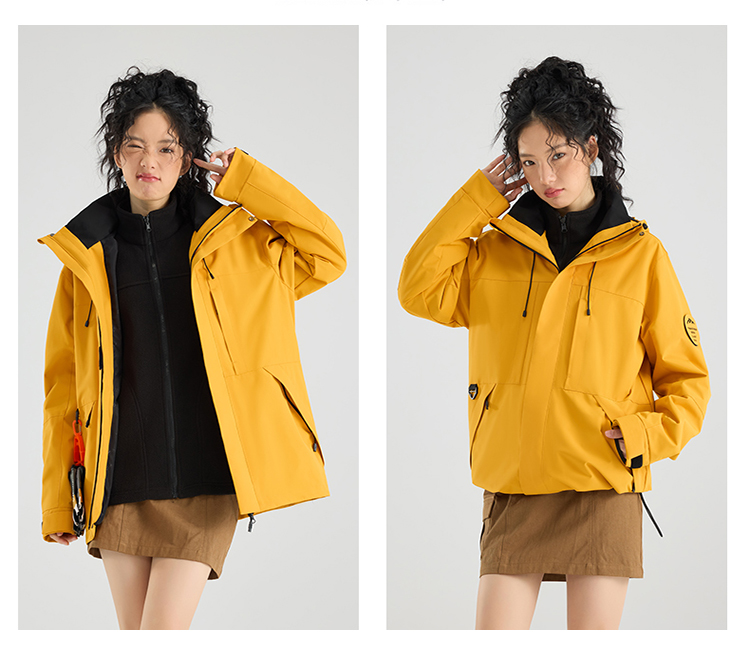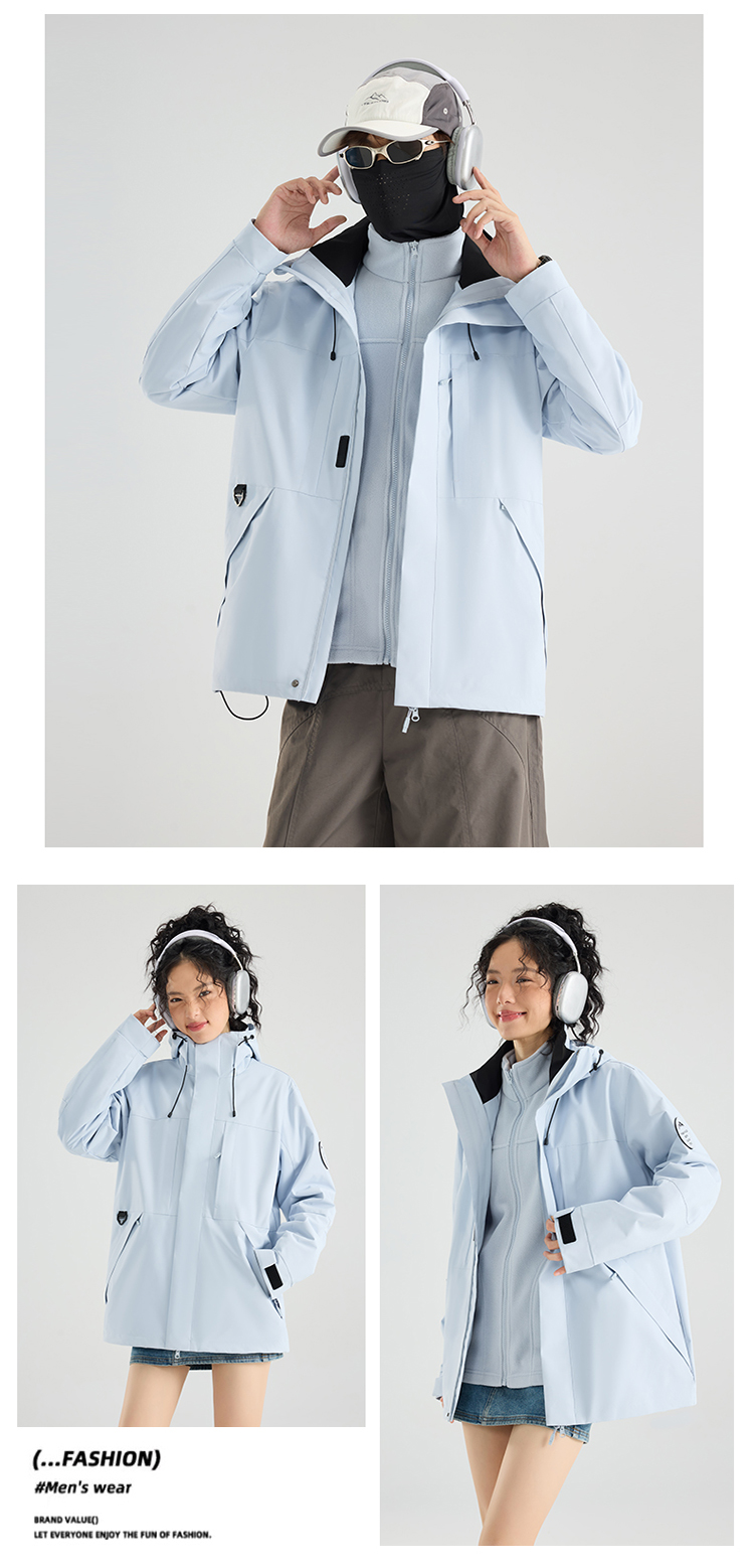 Wheat outdoor couple windproof waterproof breathable detachable two-piece set 3-in-1 hiking mountaineering jacket