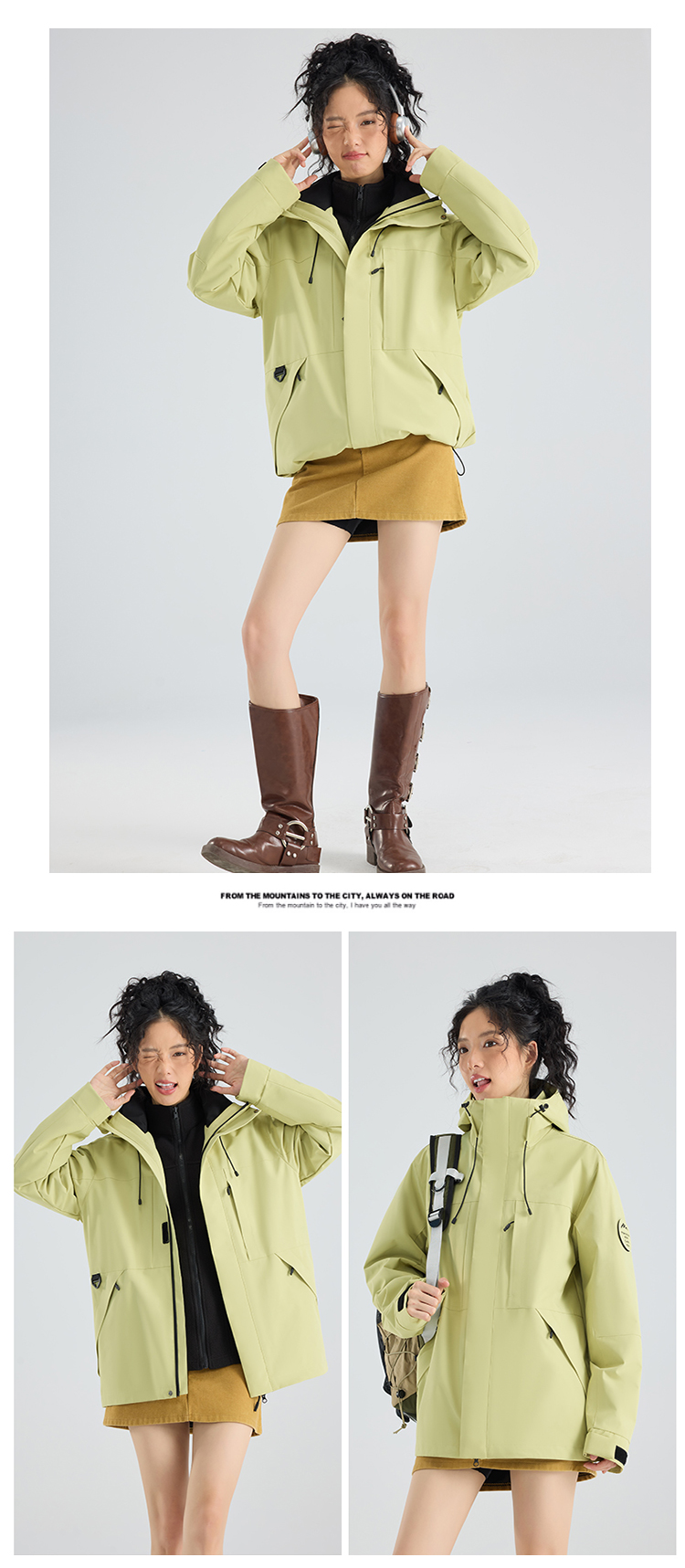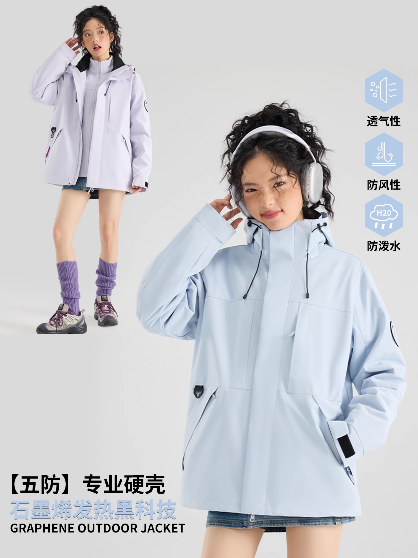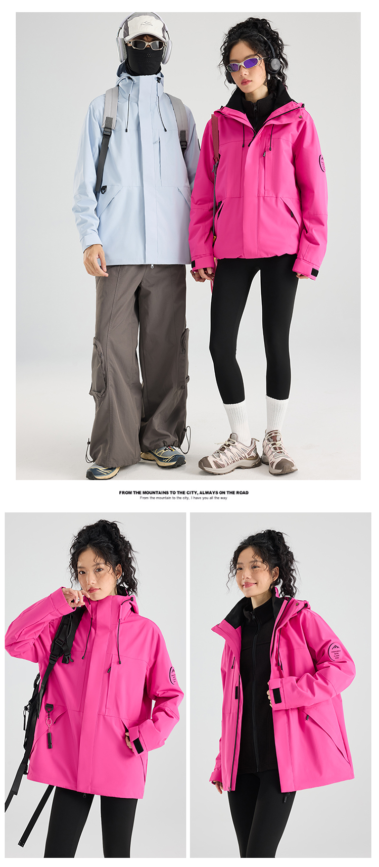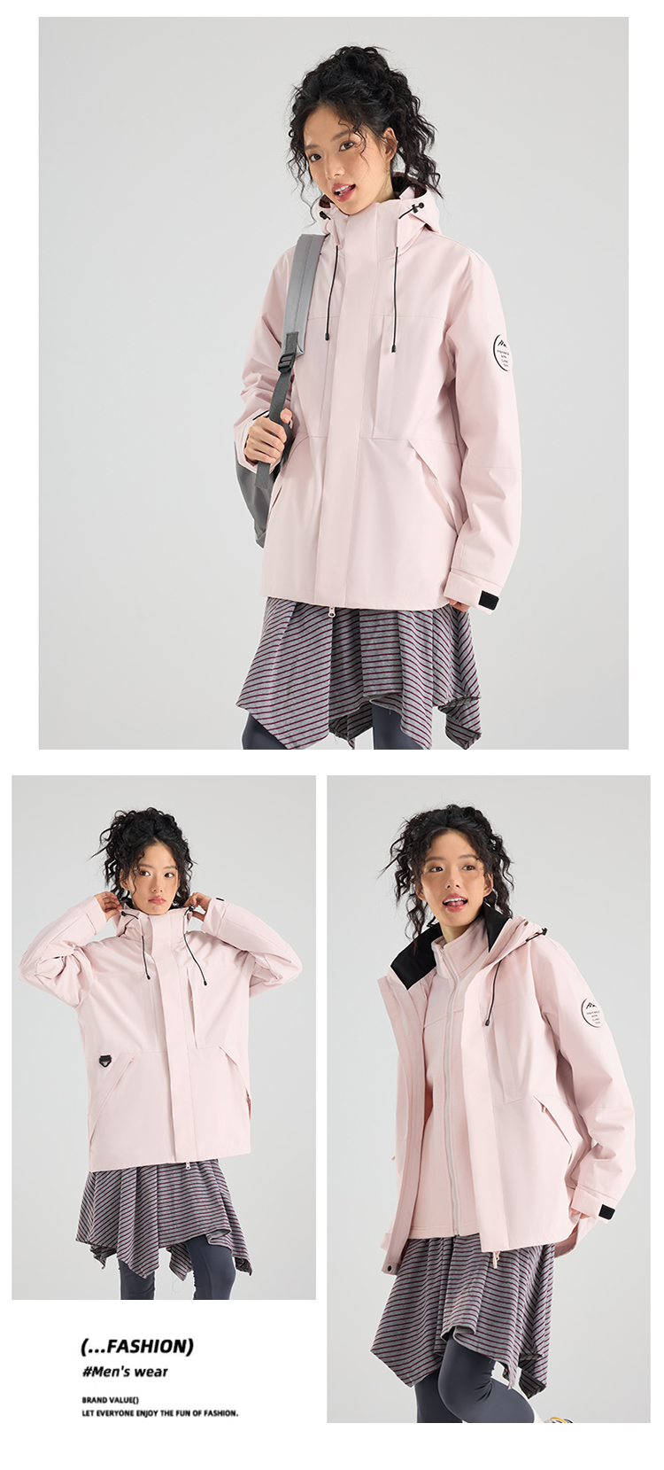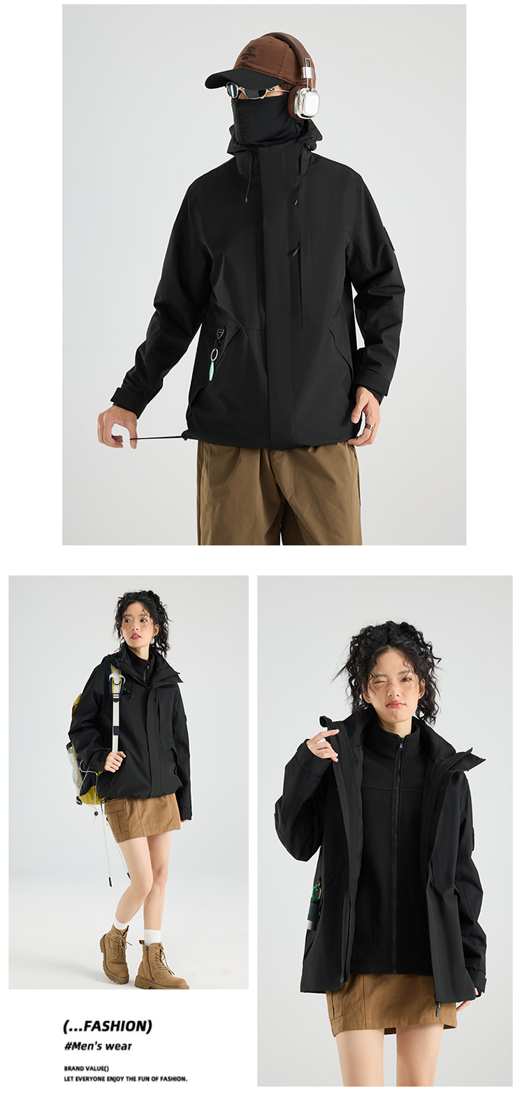 Wheat outdoor couple windproof waterproof breathable detachable two-piece set 3-in-1 hiking mountaineering jacket