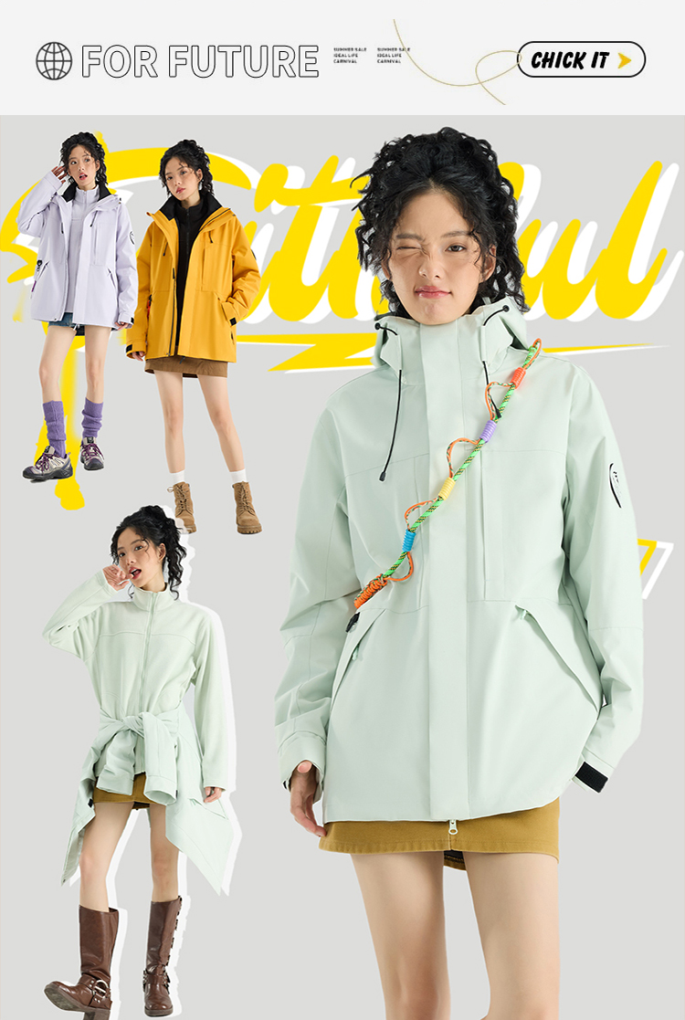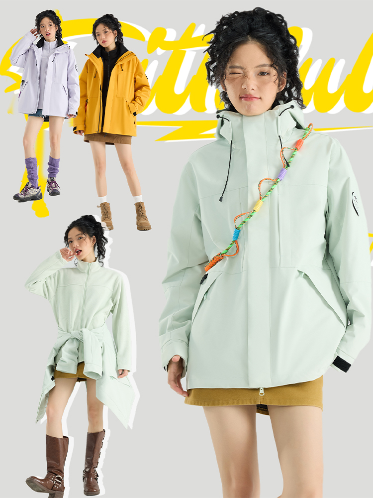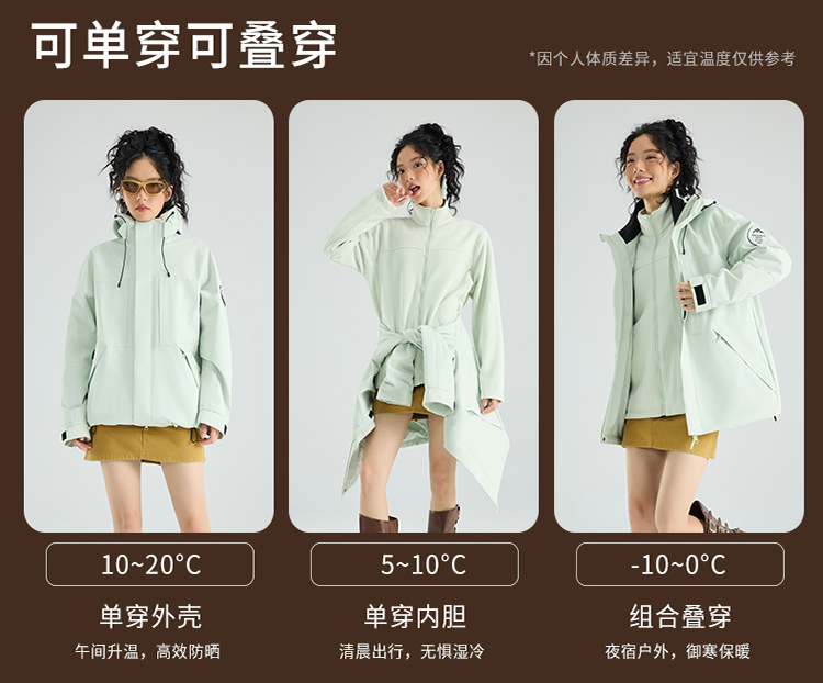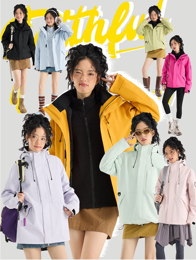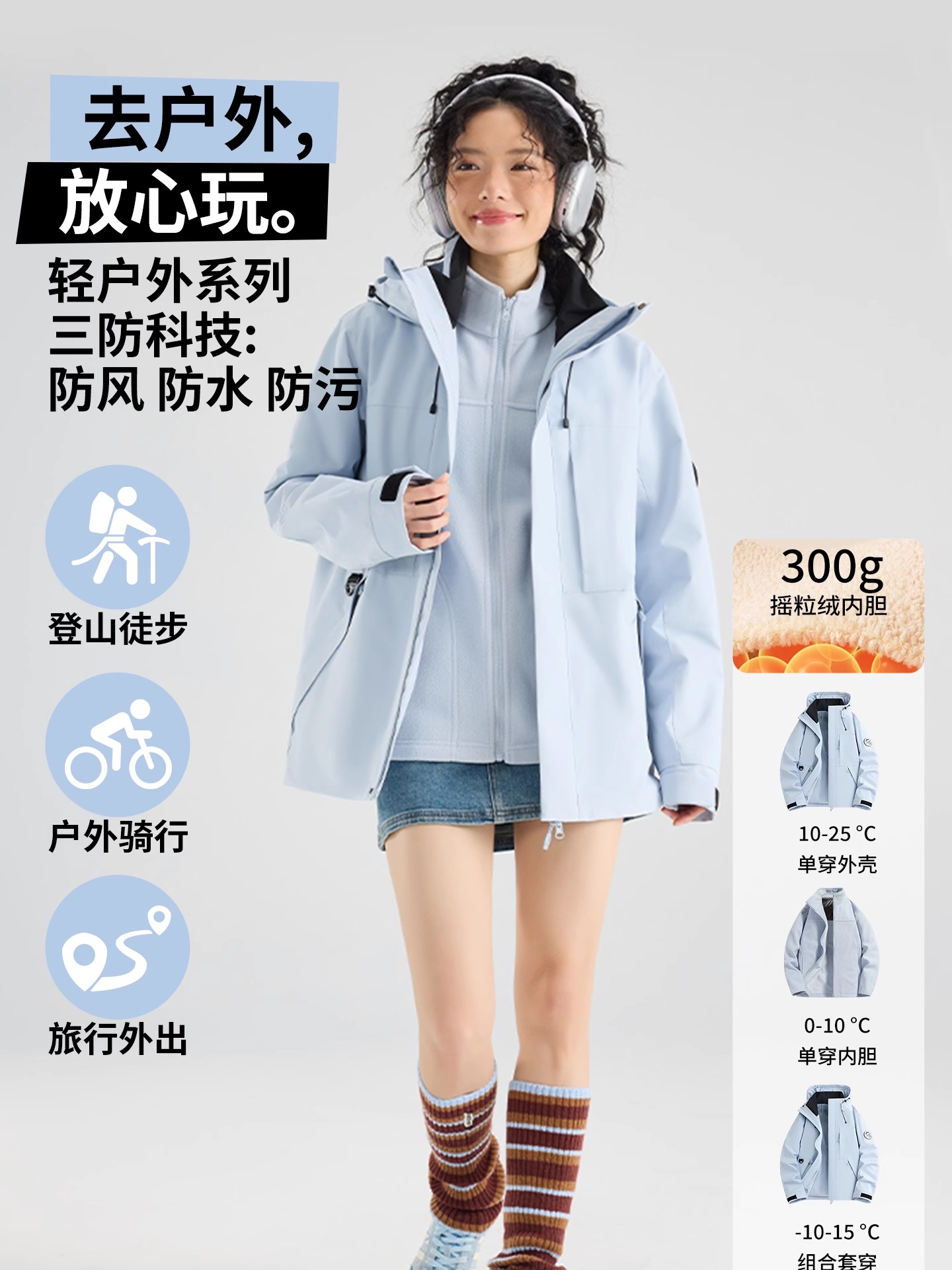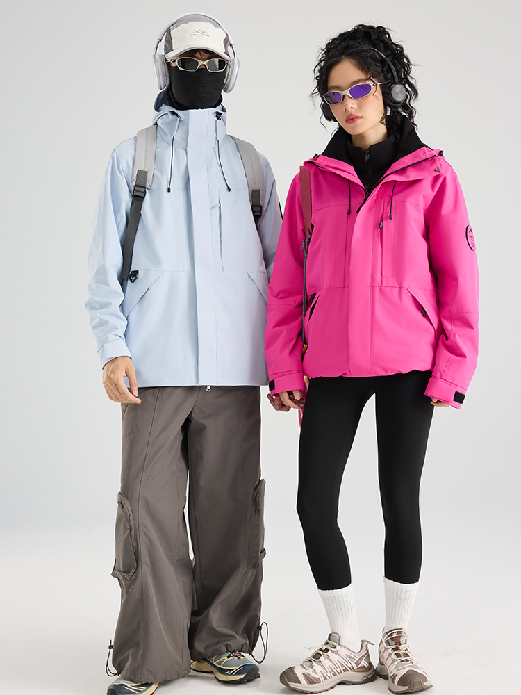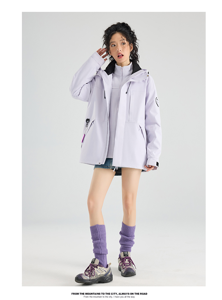 Wheat outdoor couple windproof waterproof breathable detachable two-piece set 3-in-1 hiking mountaineering jacket