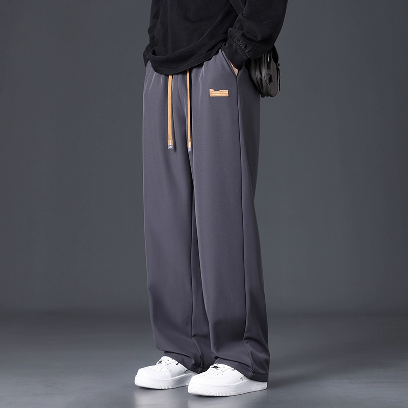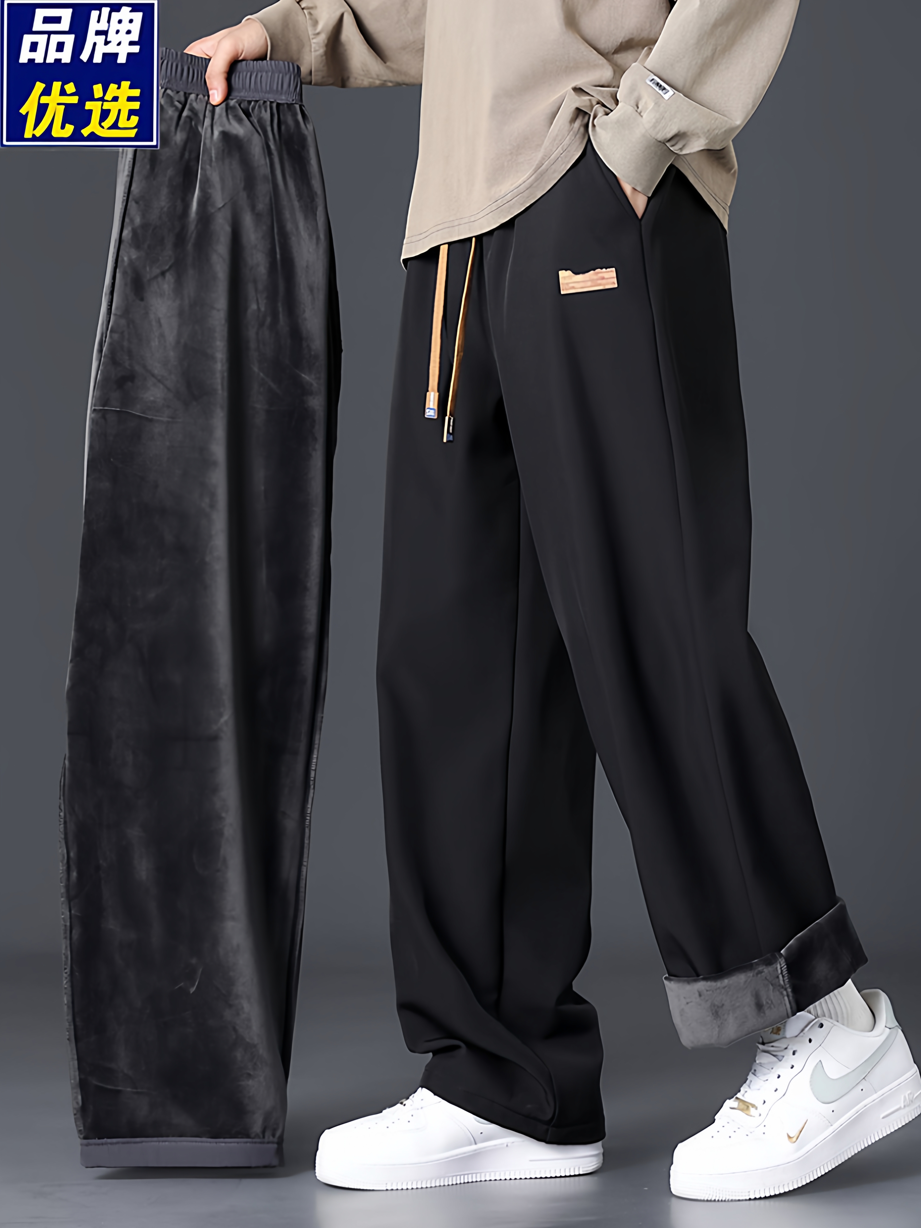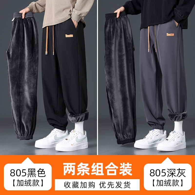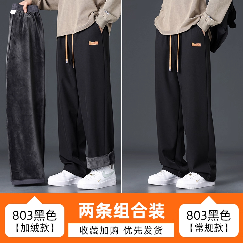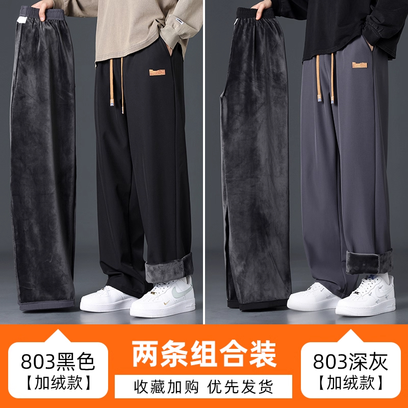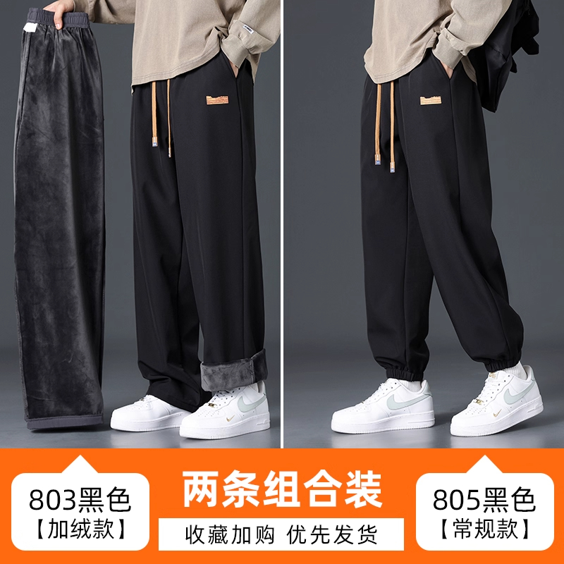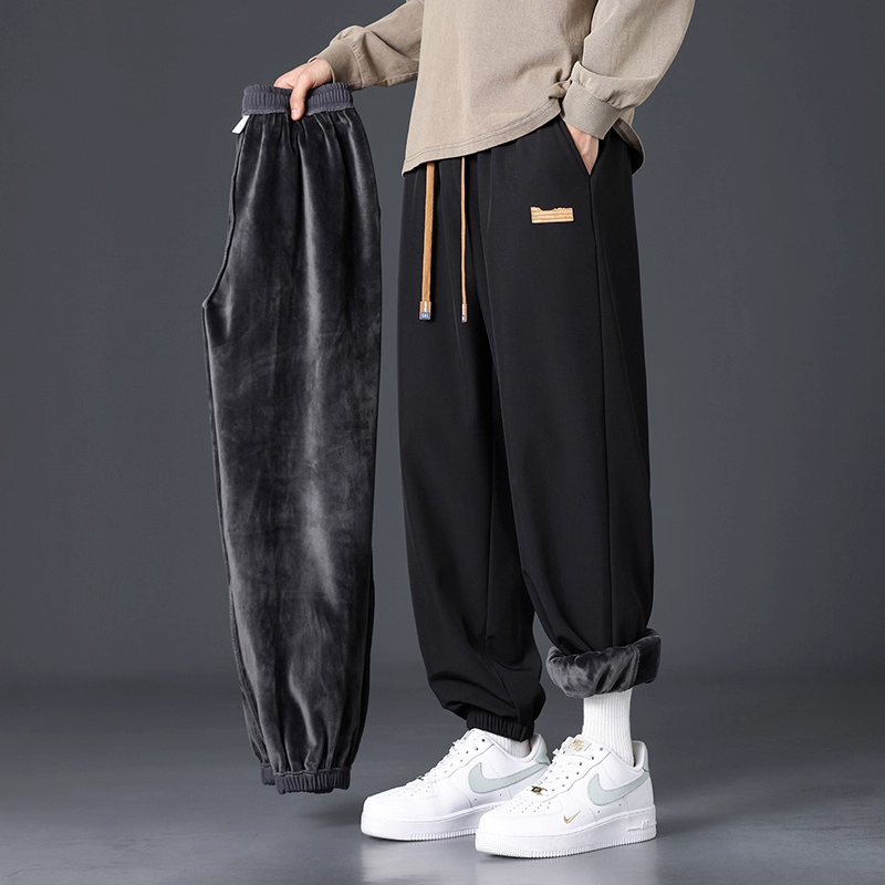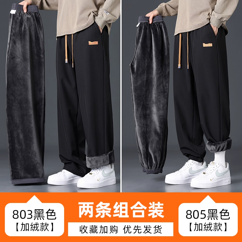 Branded casual pants, men's new loose straight-leg sweatpants, autumn and winter warm, fleece and thickened trousers, sweatpants