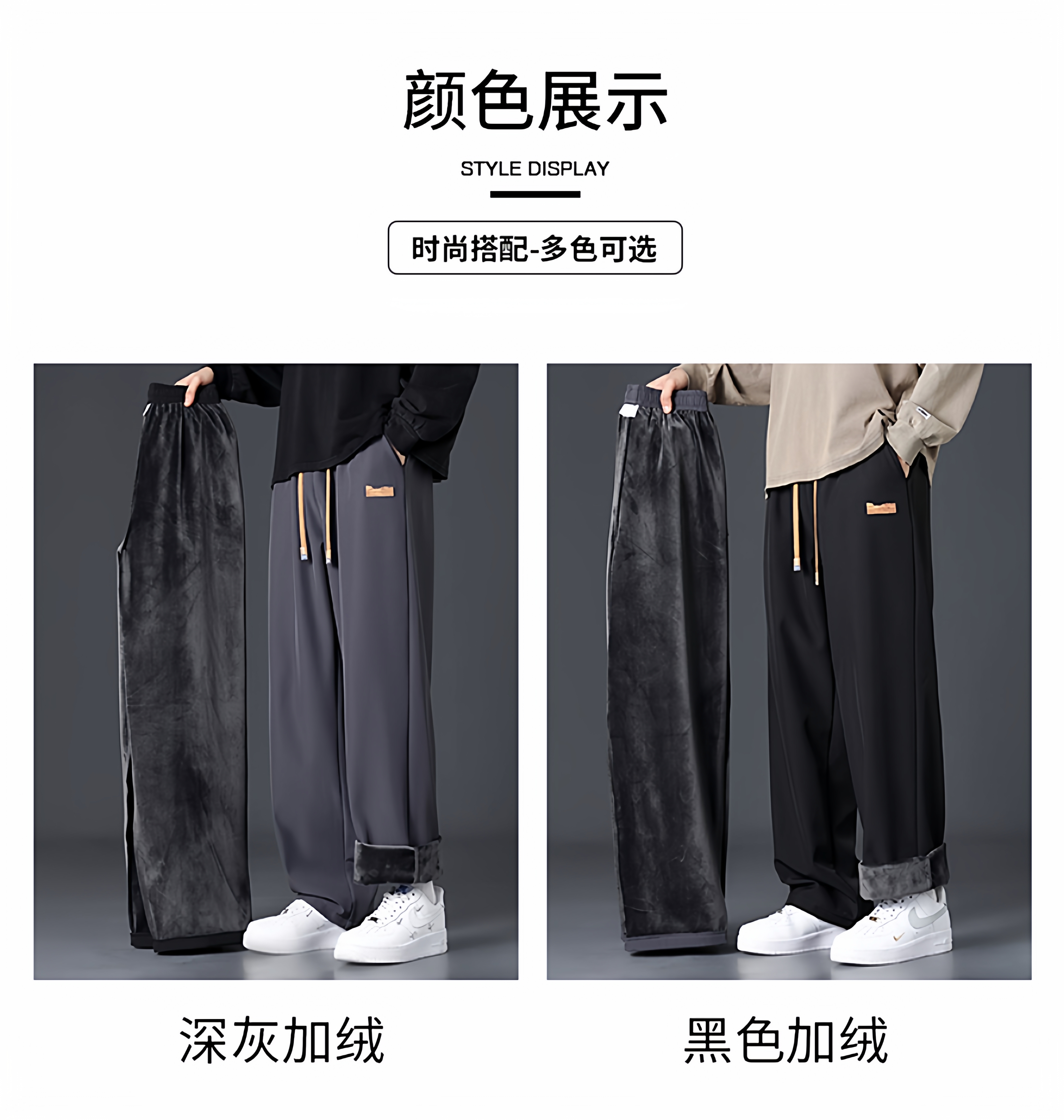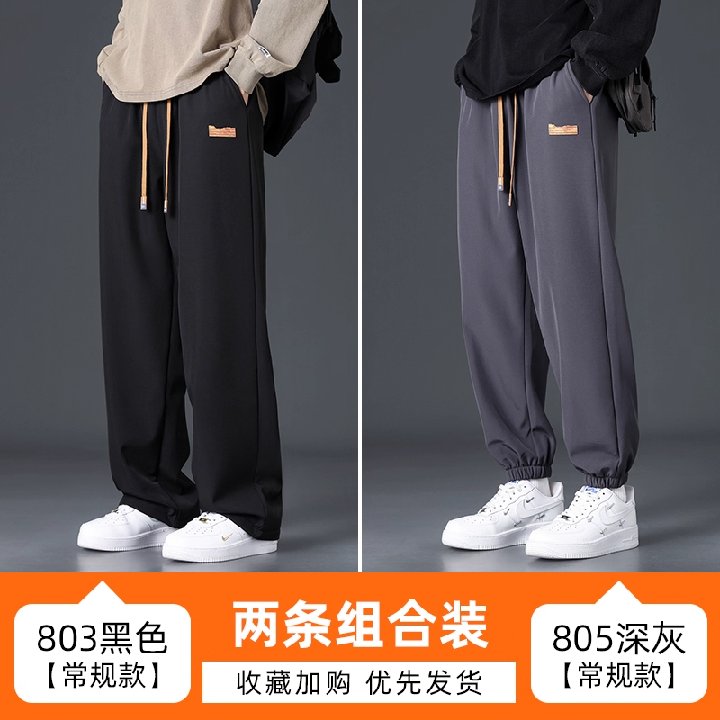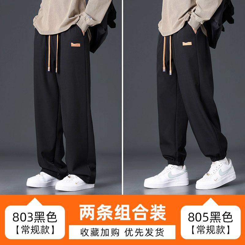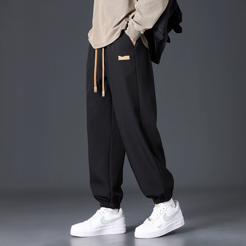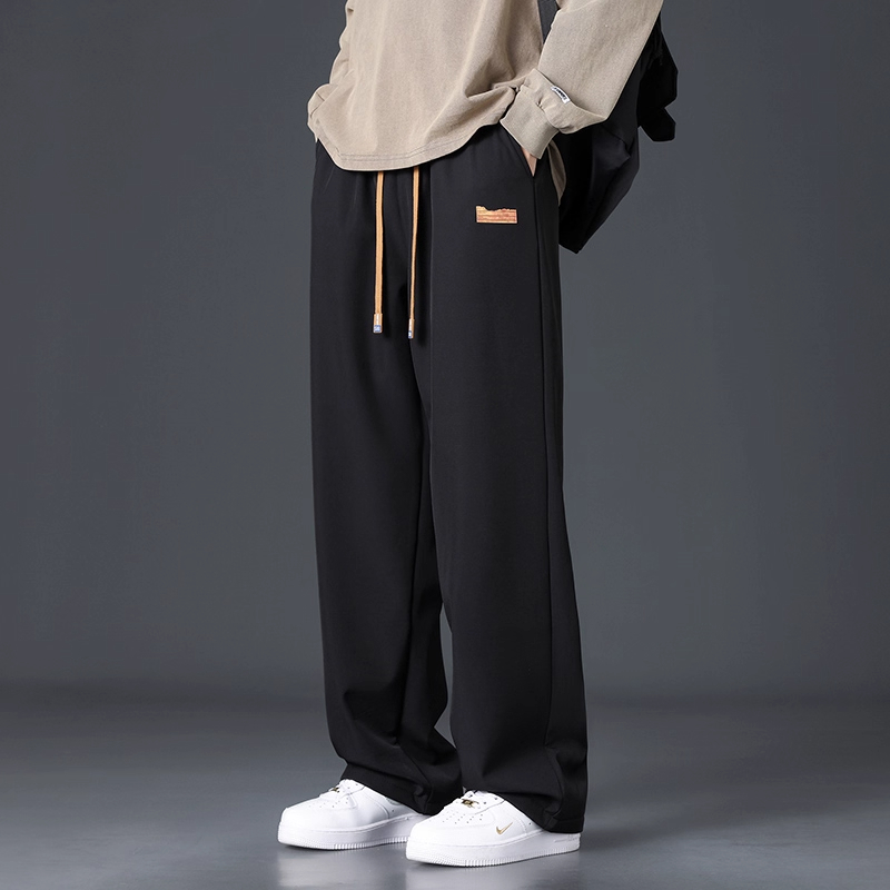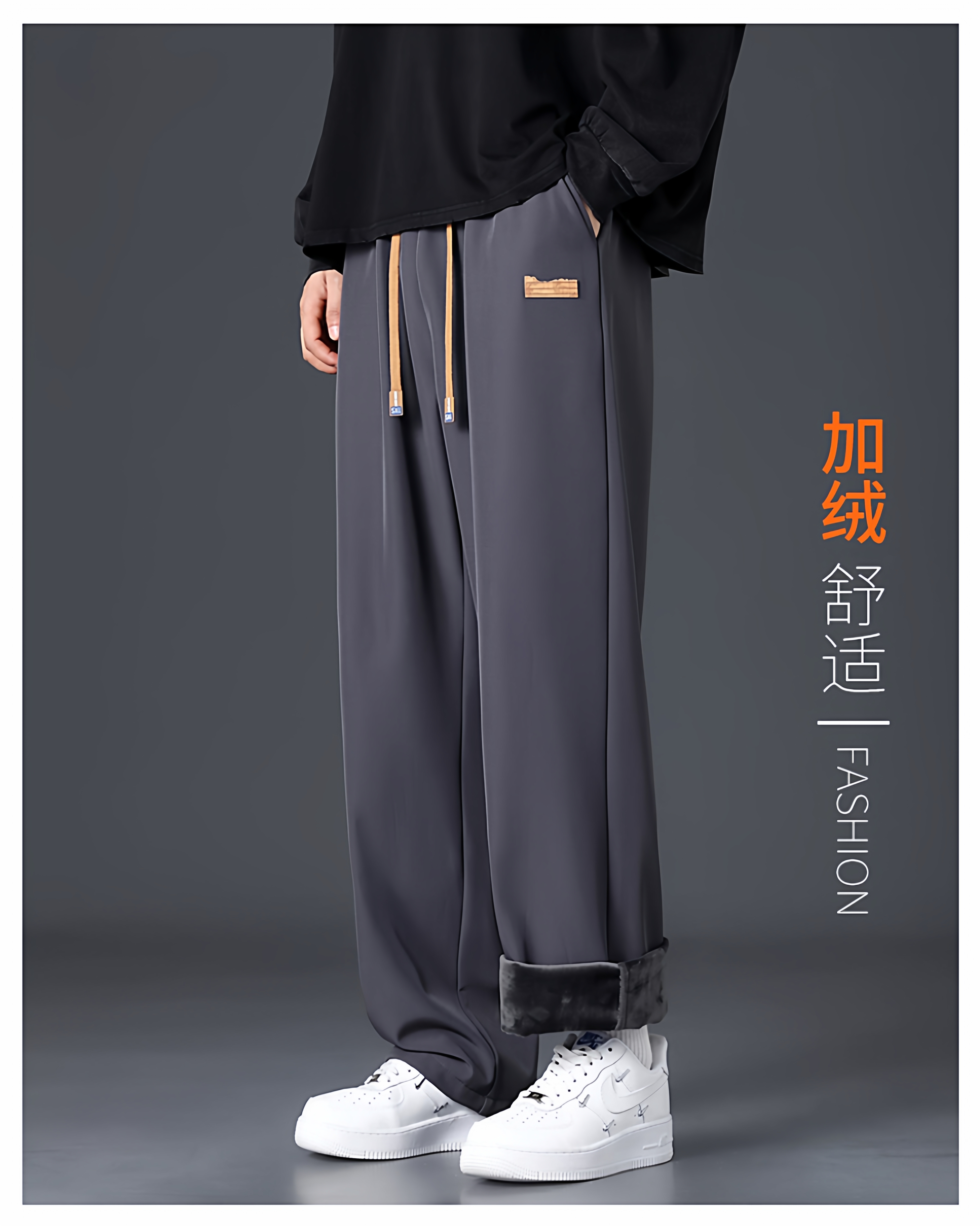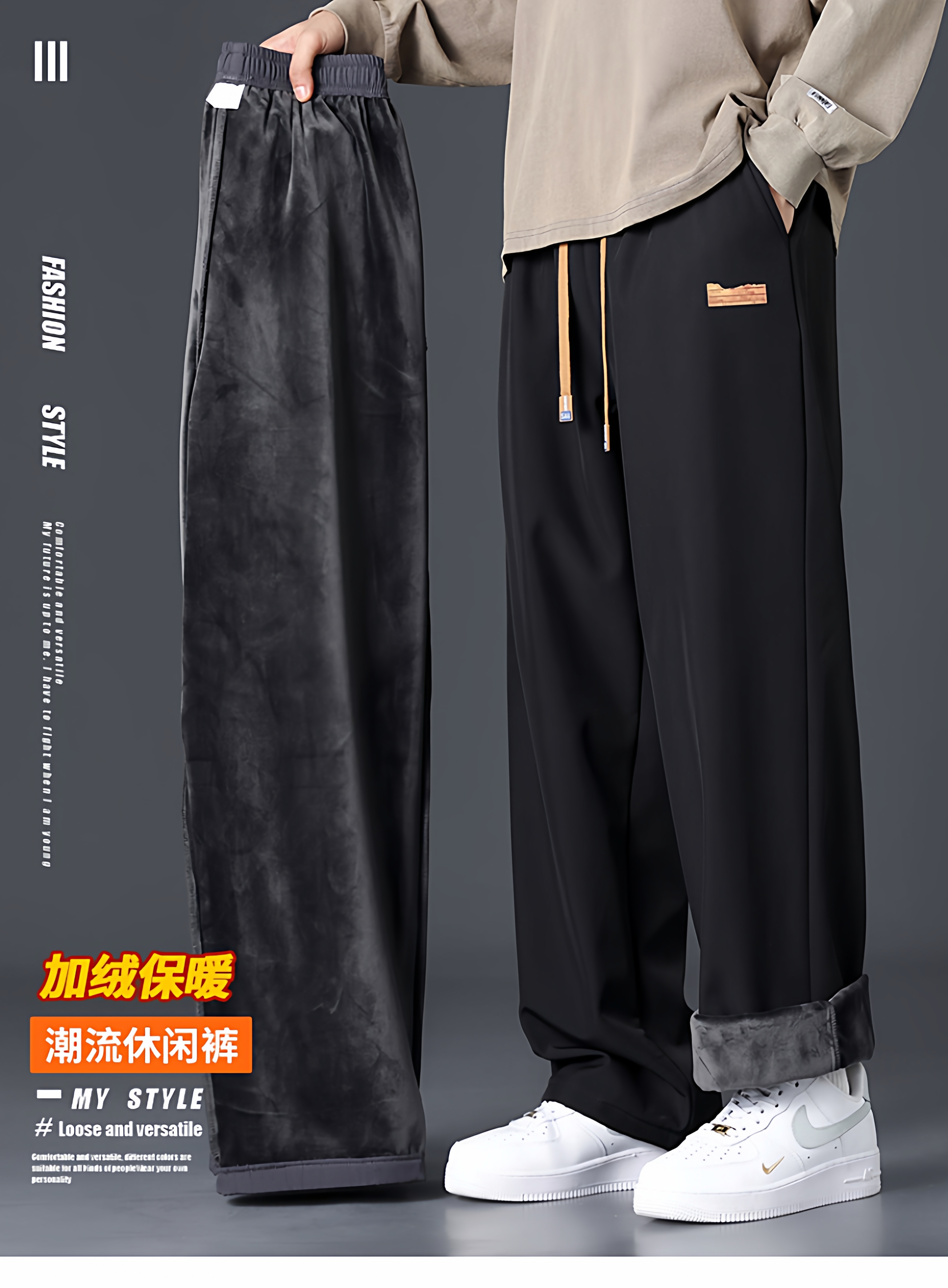 Branded casual pants, men's new loose straight-leg sweatpants, autumn and winter warm, fleece and thickened trousers, sweatpants
