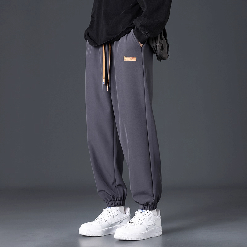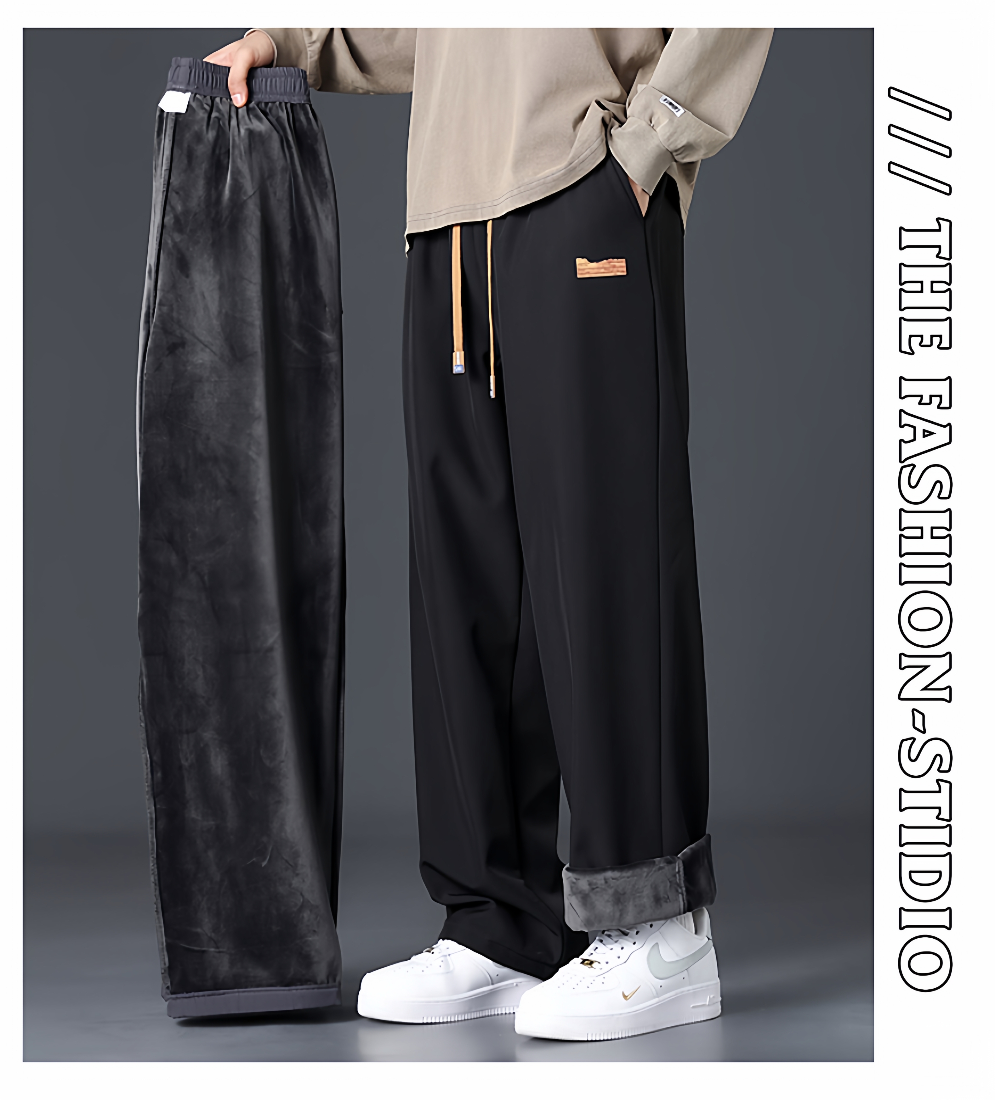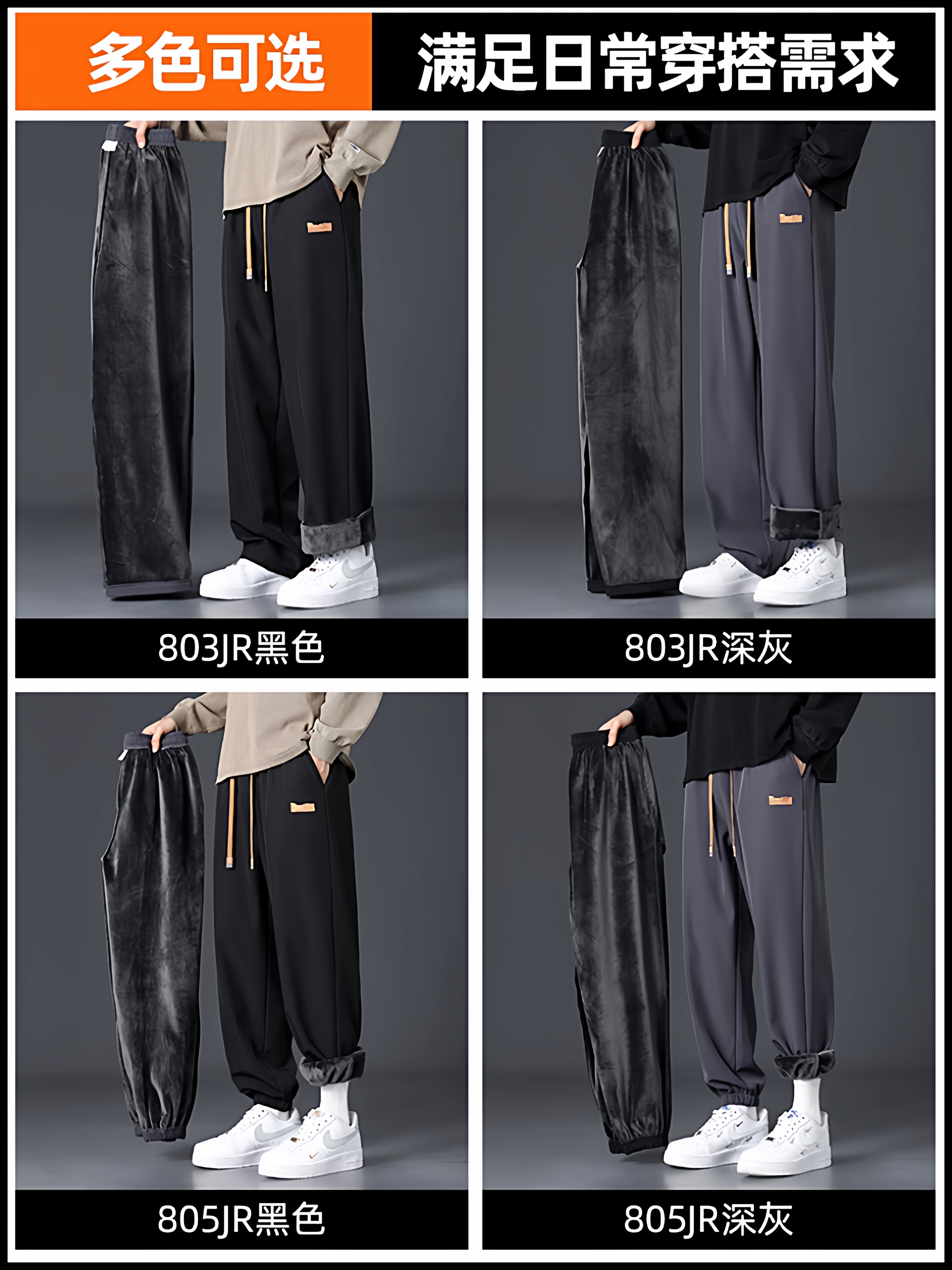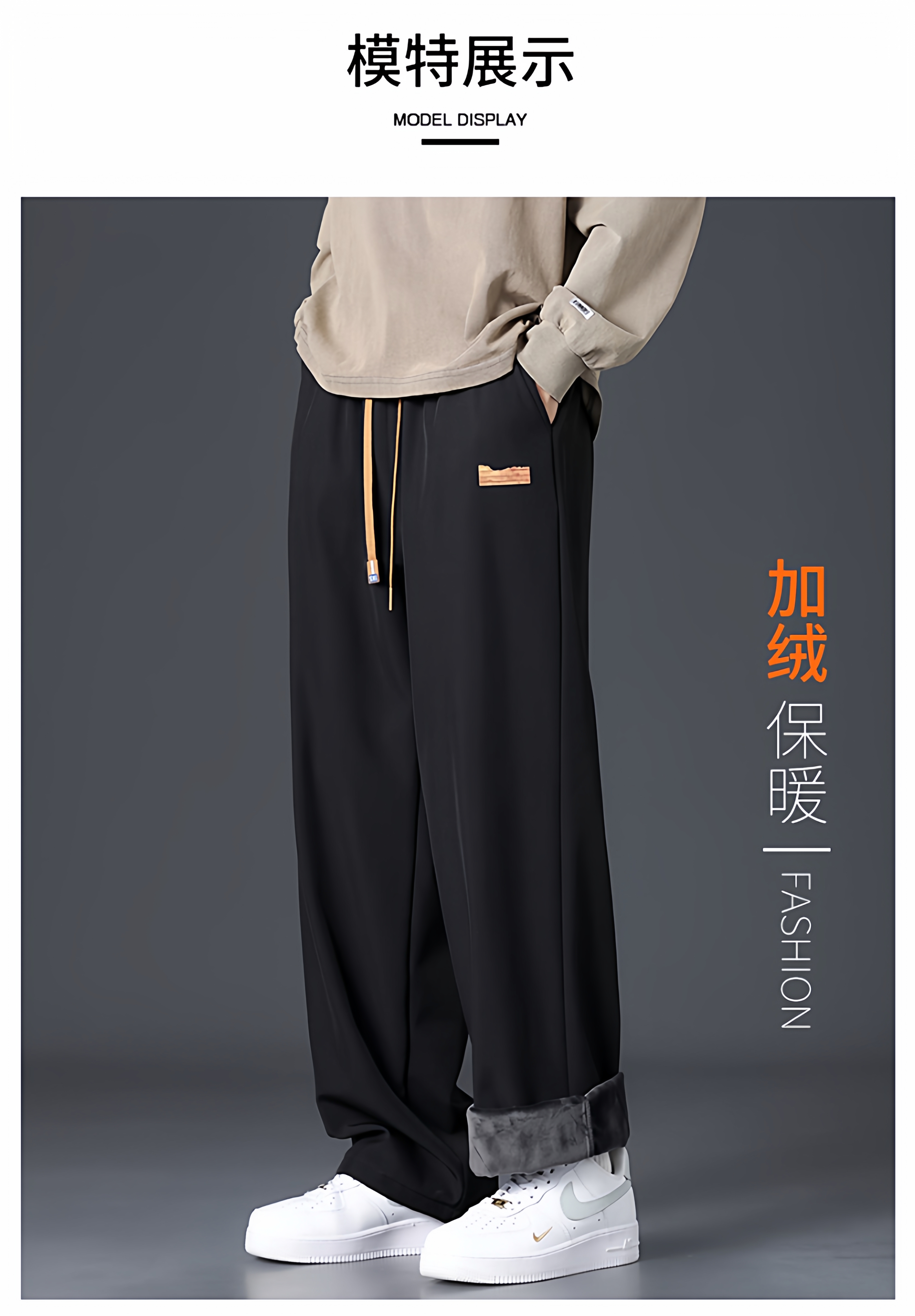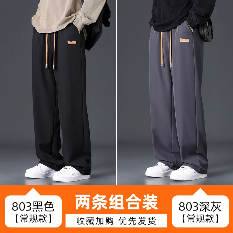 Branded casual pants, men's new loose straight-leg sweatpants, autumn and winter warm, fleece and thickened trousers, sweatpants