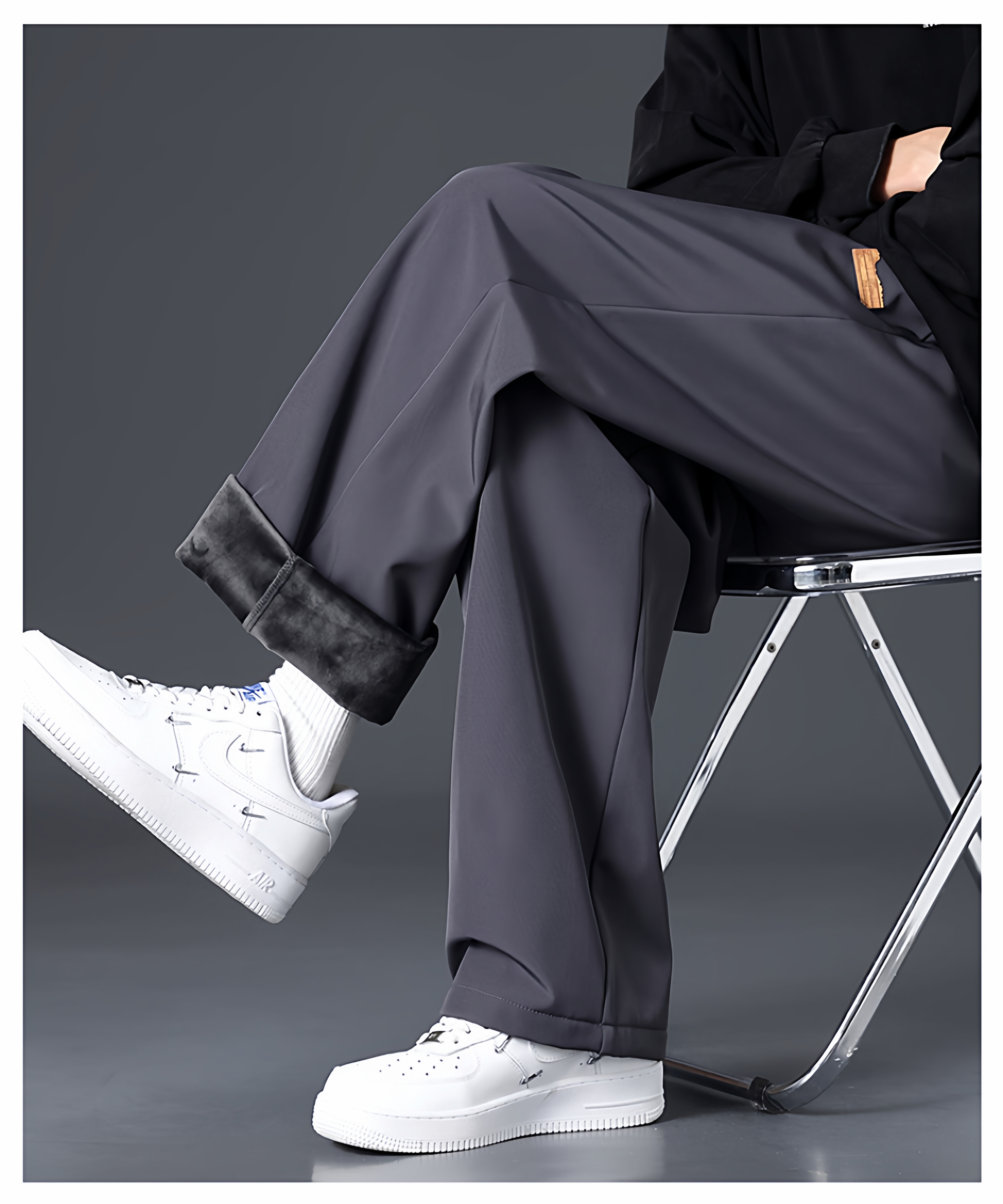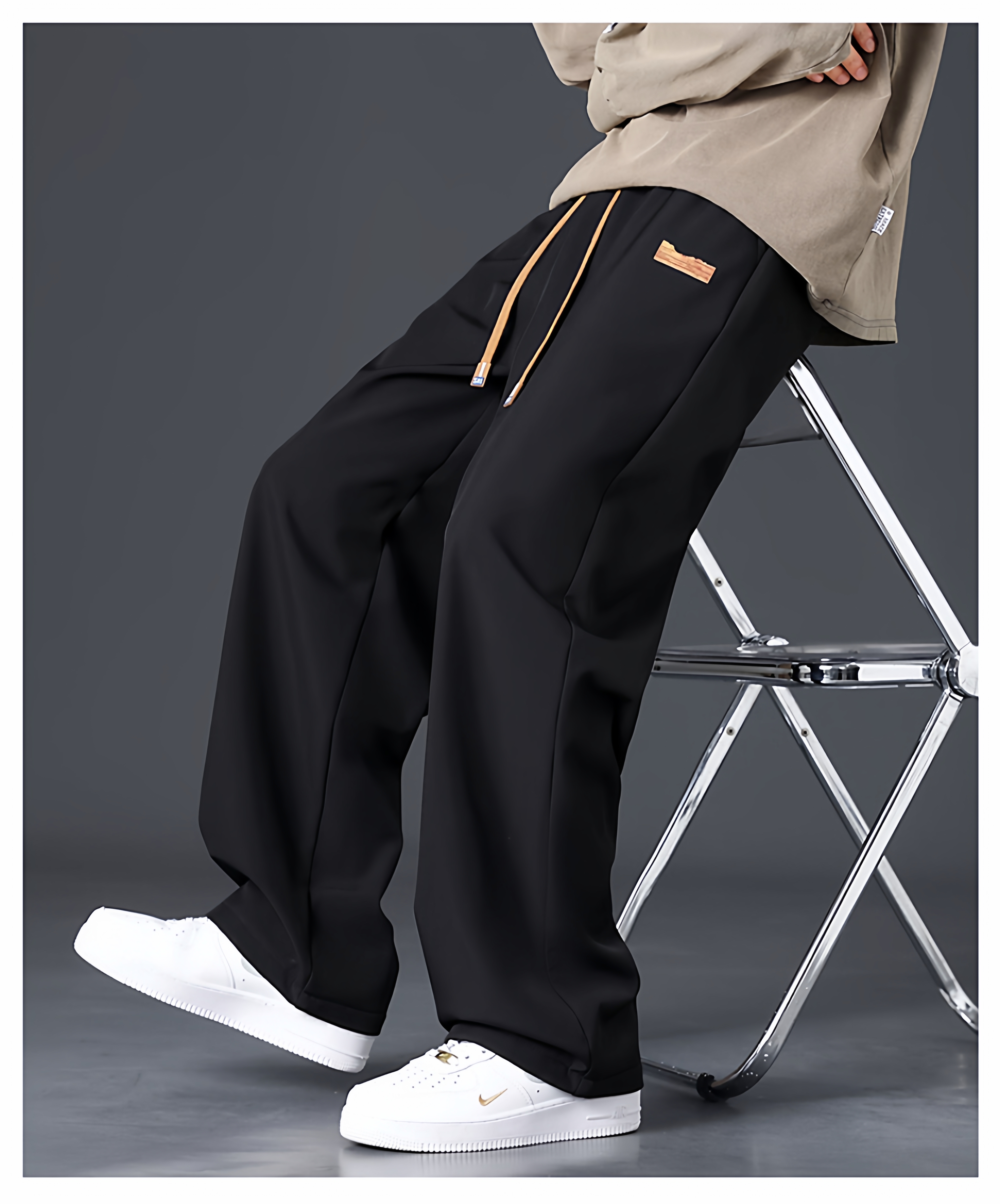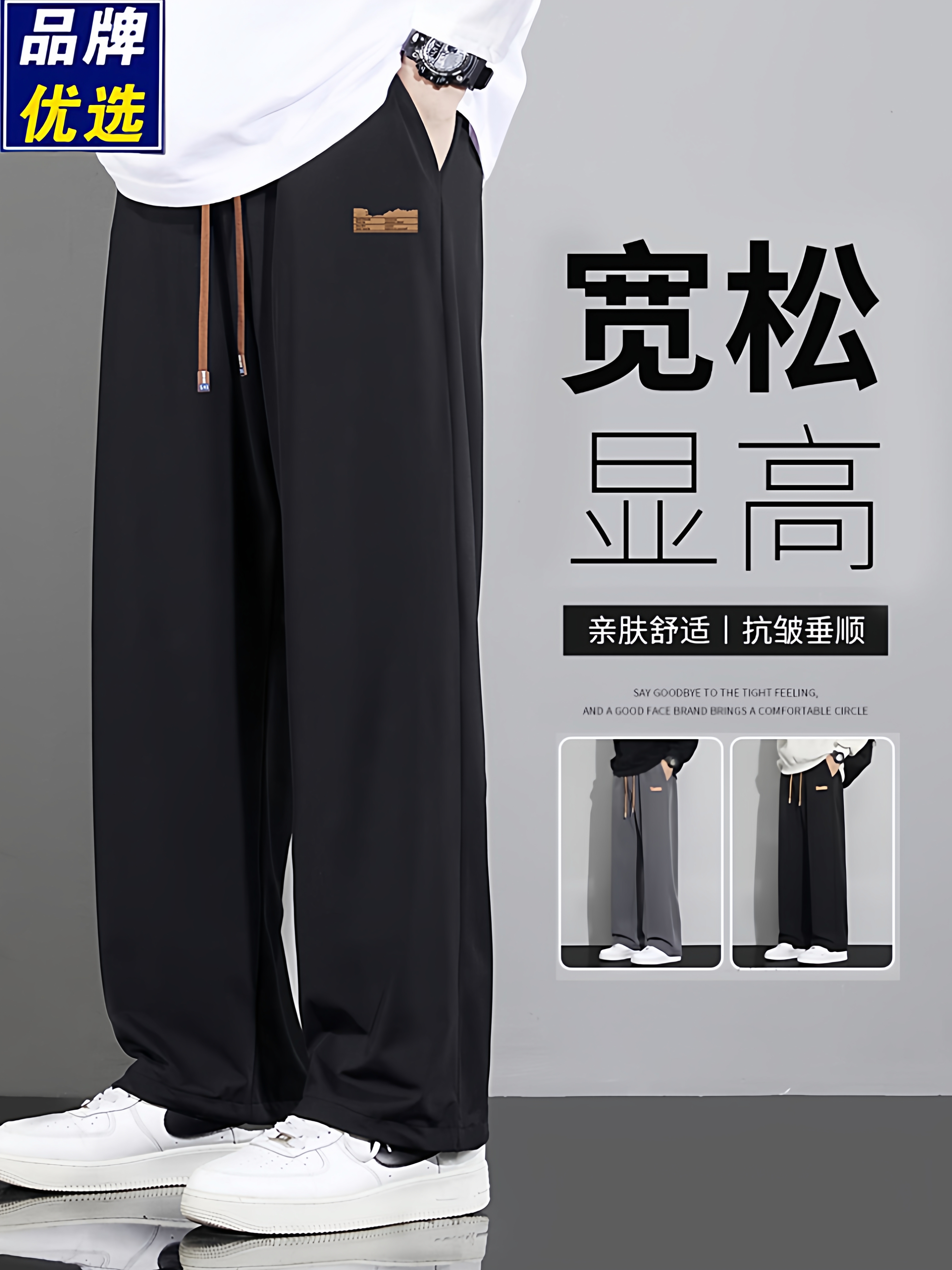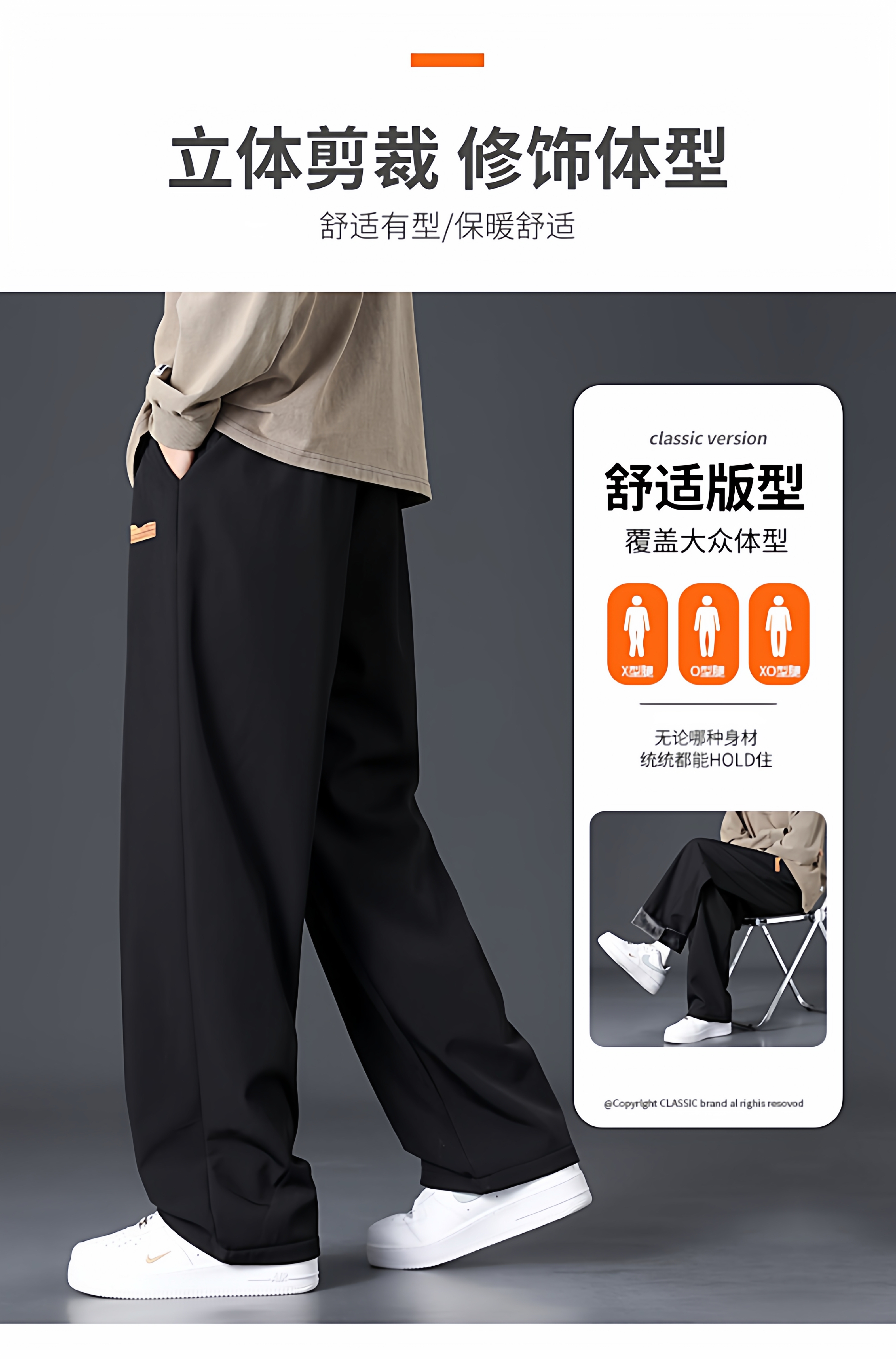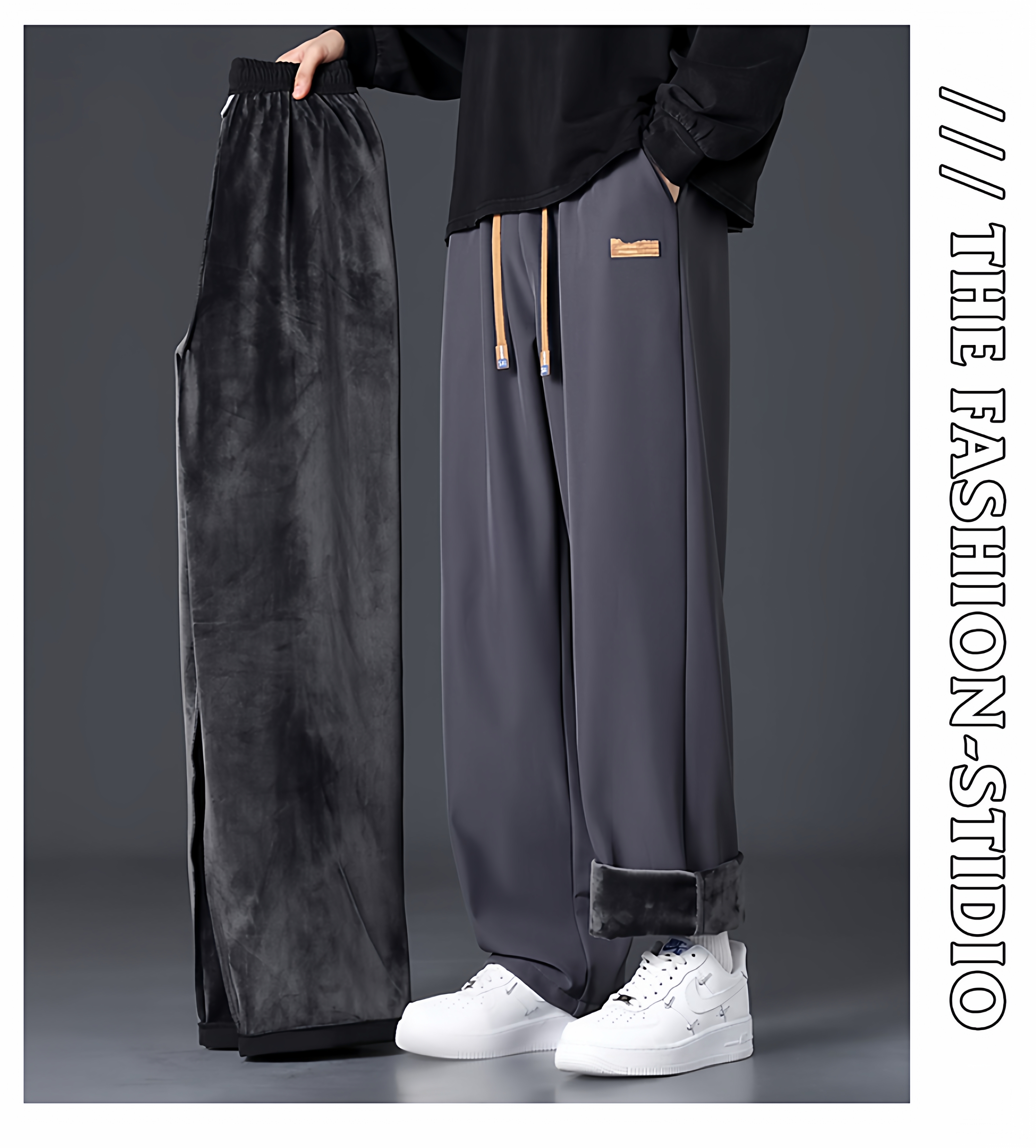 Branded casual pants, men's new loose straight-leg sweatpants, autumn and winter warm, fleece and thickened trousers, sweatpants