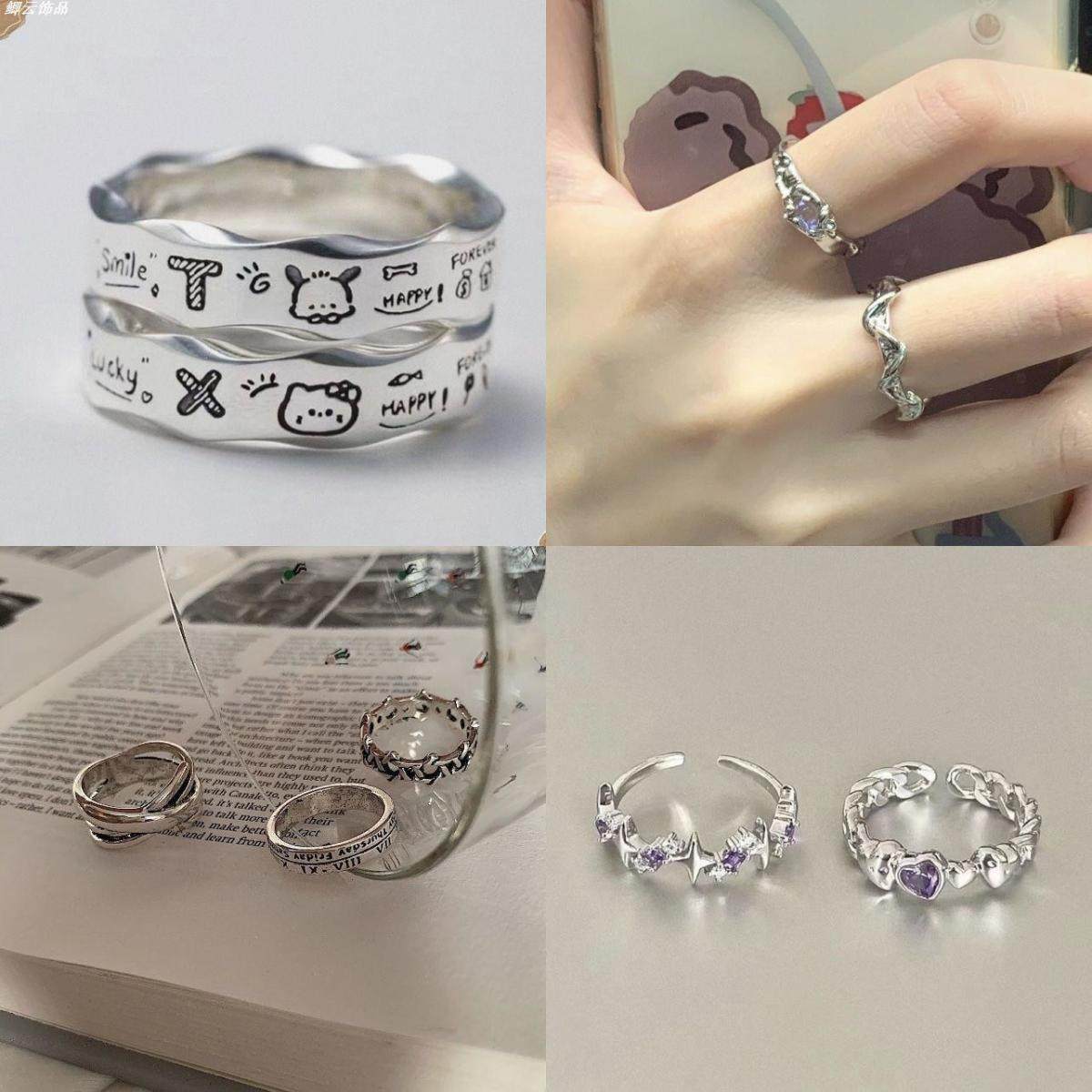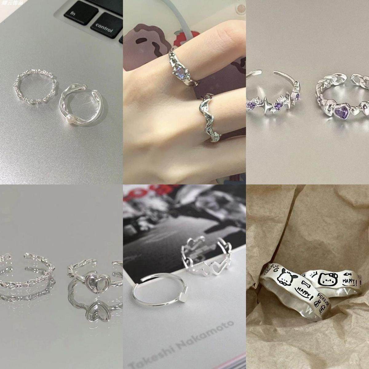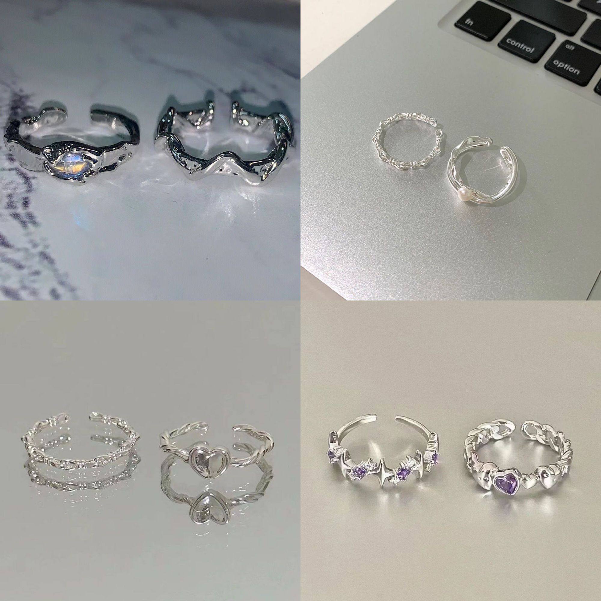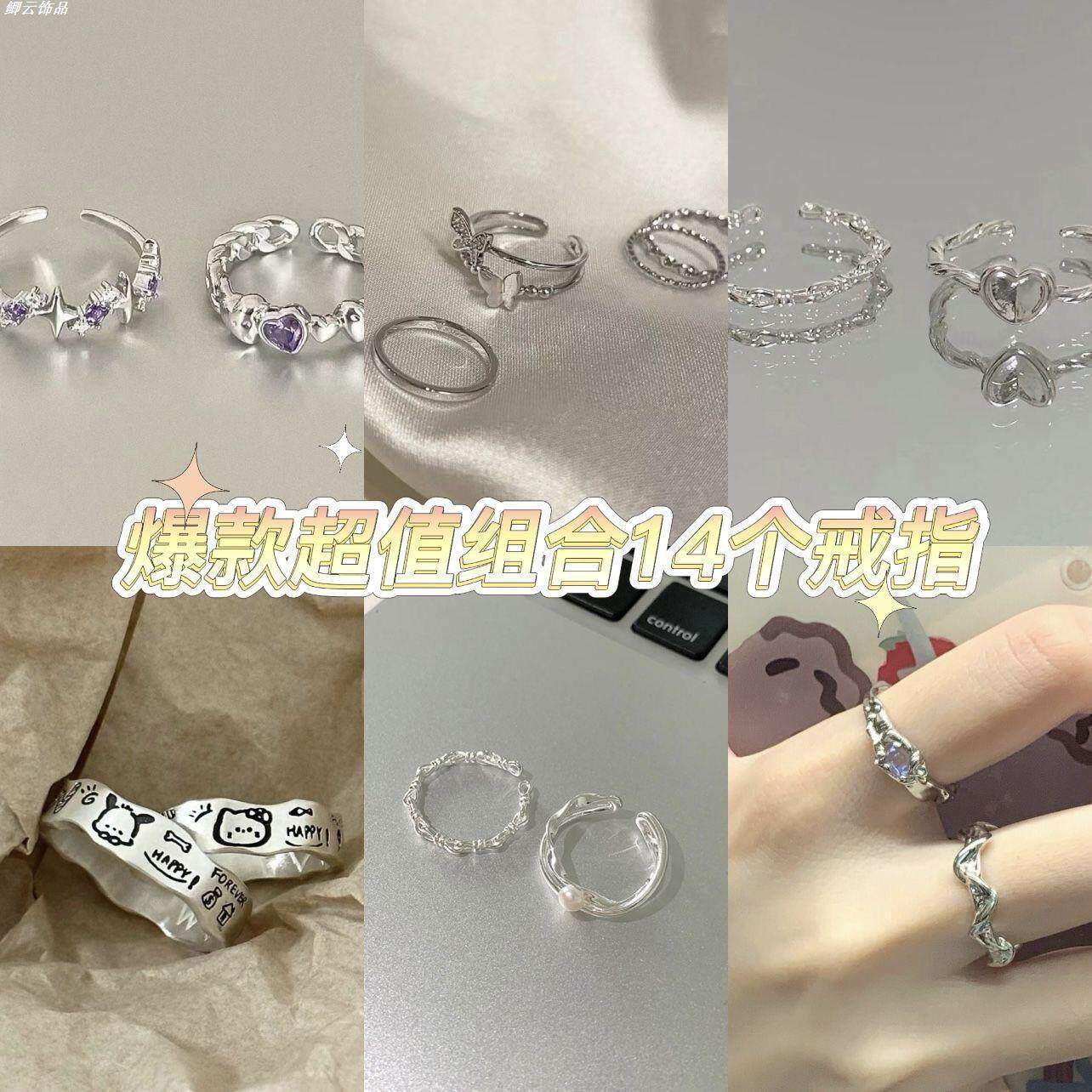Super value 14-piece set, cheap opening, adjustable ring, wave, water ripple, niche vines, light luxury, pair rings, explosive models