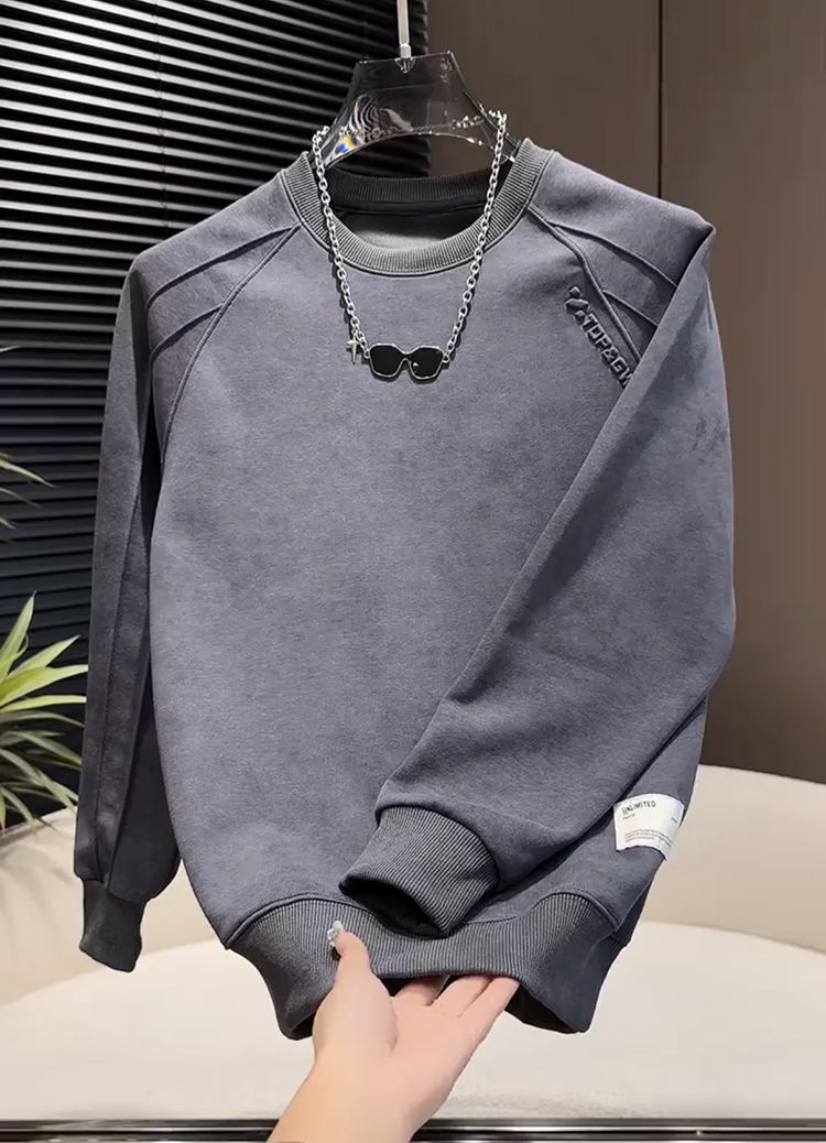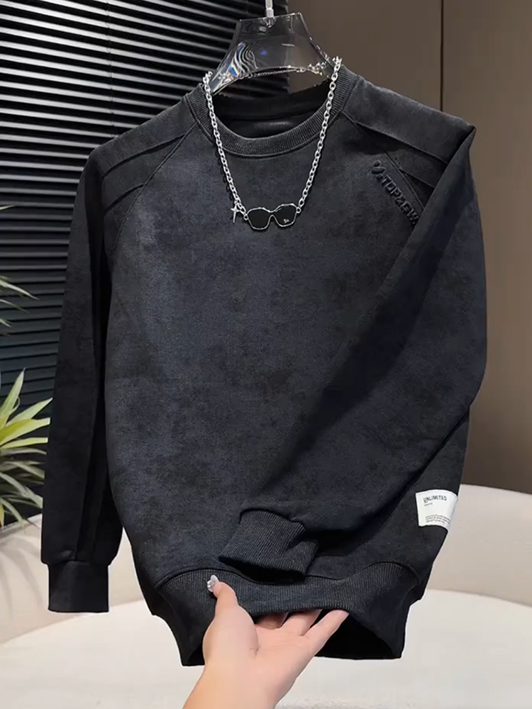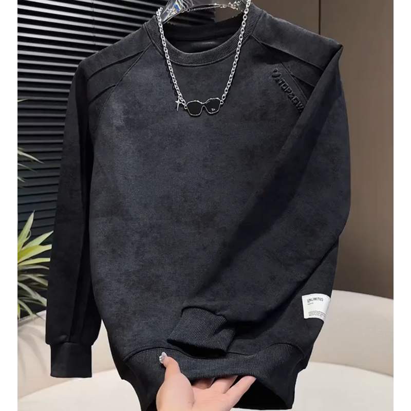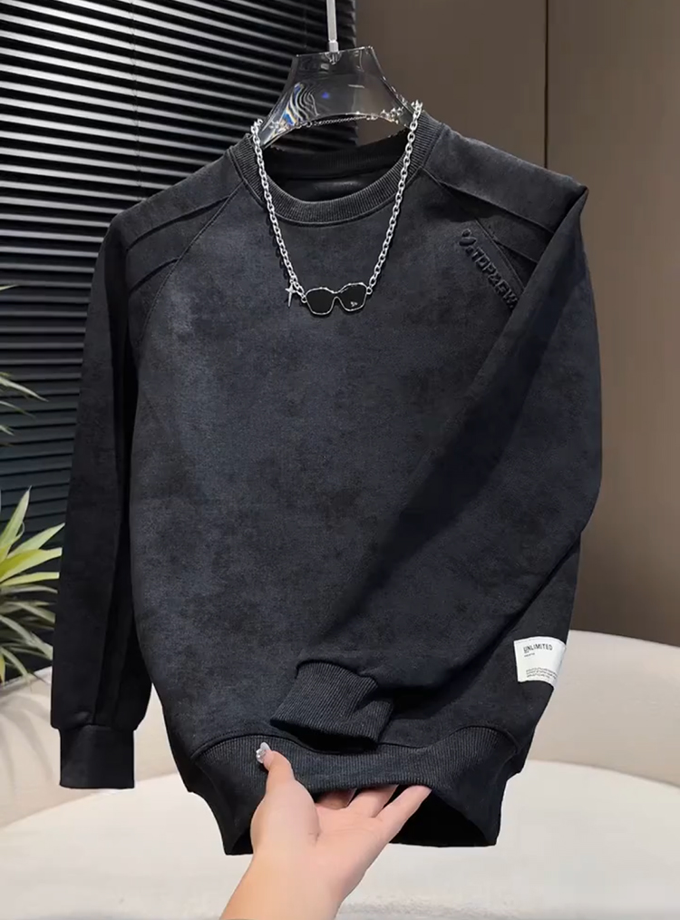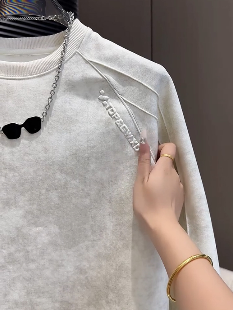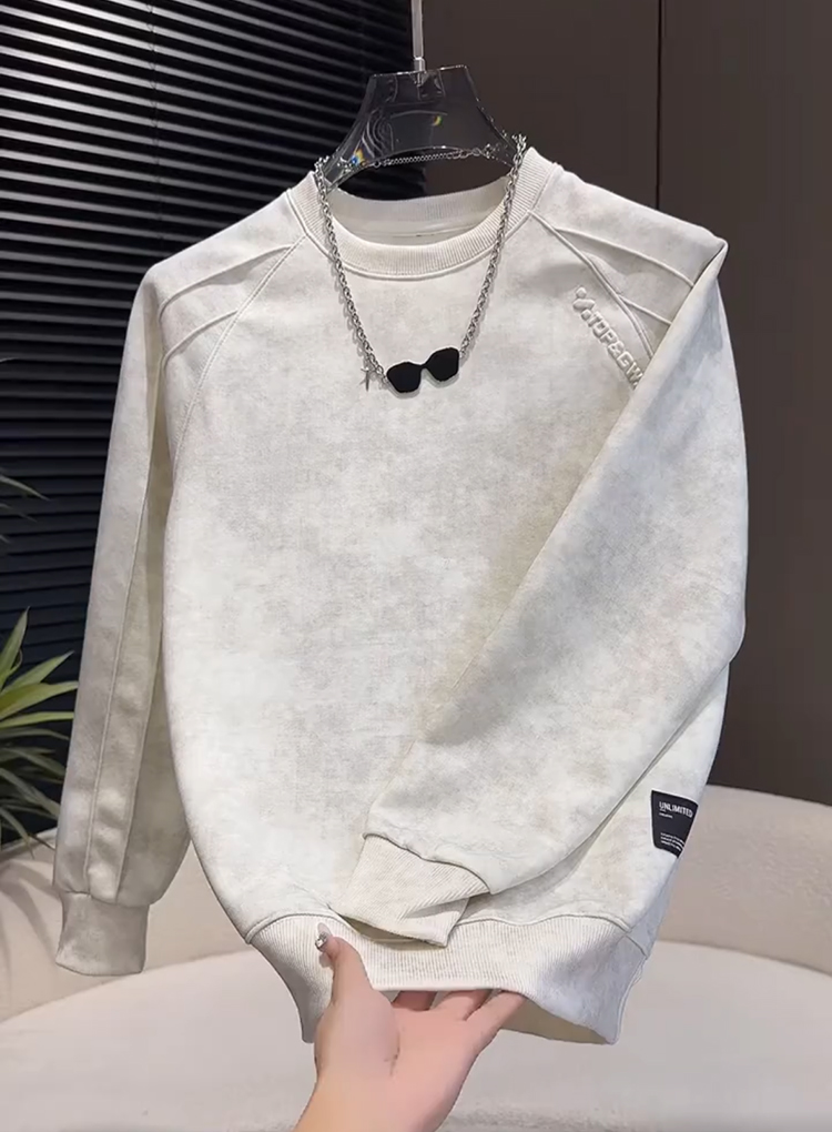 Men's fleece sweatshirt, autumn and winter Korean version of handsome long-sleeved top, tie-dye steel print design, crew neck, high street trendy brand