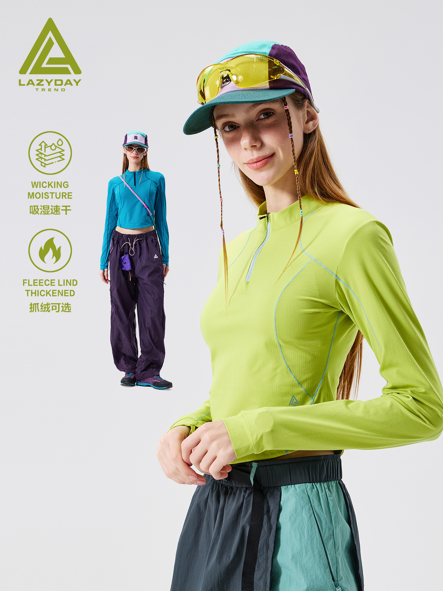 LAZY DAY TREND outdoor hot girl style moisture-wicking quick-drying long-sleeved T-shirt women's hiking tight sports top trend