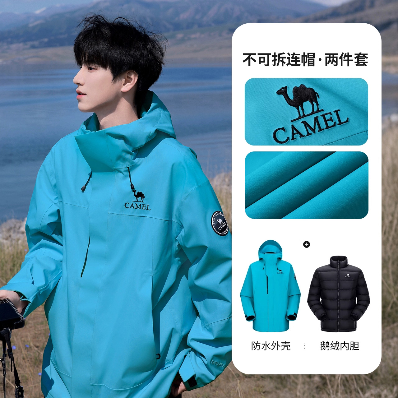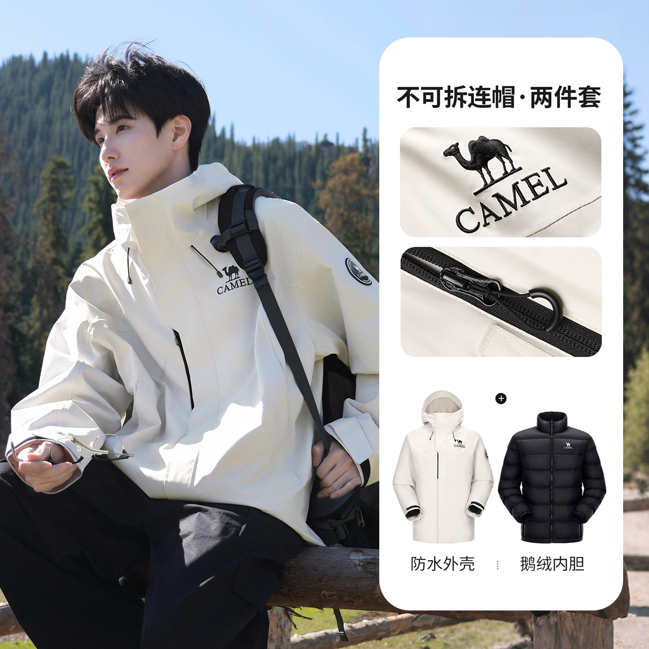 [Goose Down Edition] Camel King Kaijia ICON Goose Down Jacket Jacket Men's and Women's New 3-in-1 Jacket