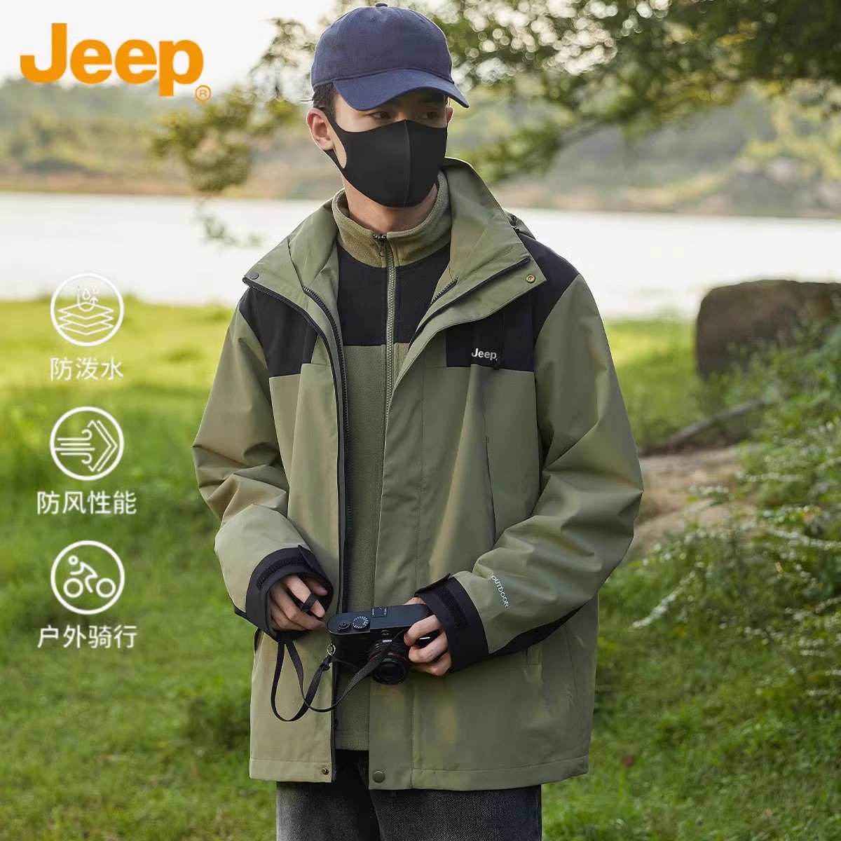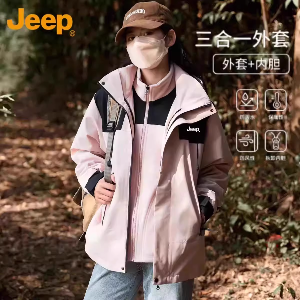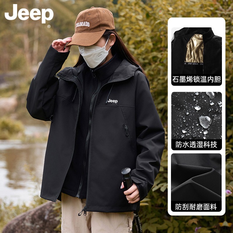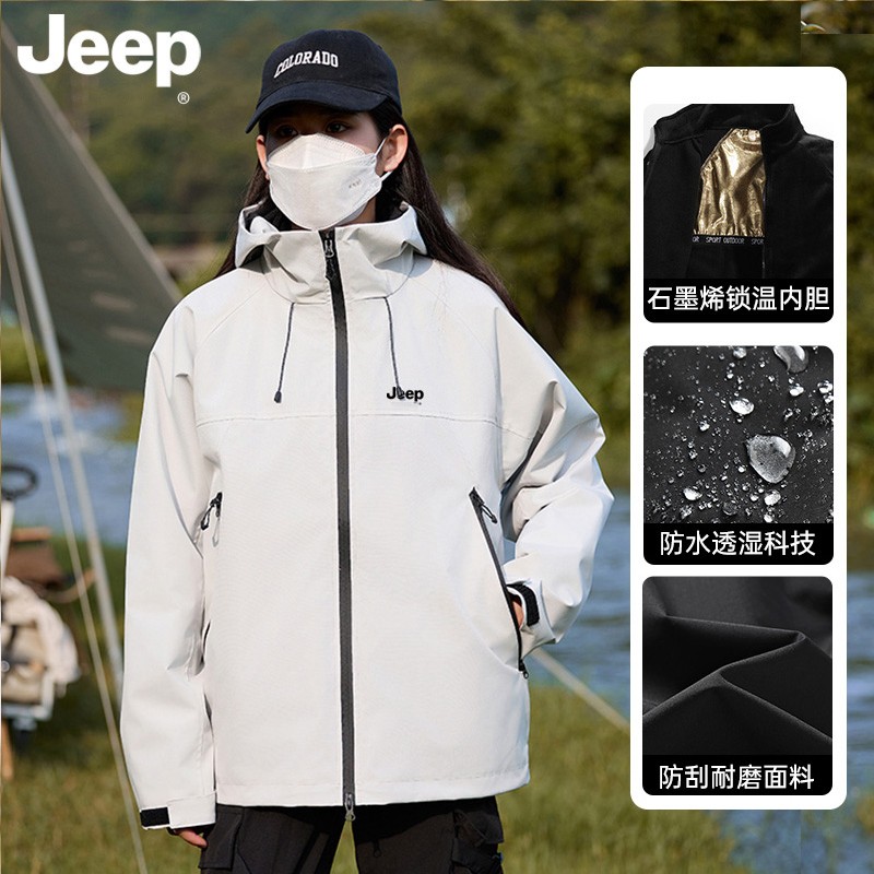 Jeep Jeep Jacket Fall Winter Men's and Women's Charge Water Repellent Hiking Jacket 2025 3-in-1 Sports Top Jacket