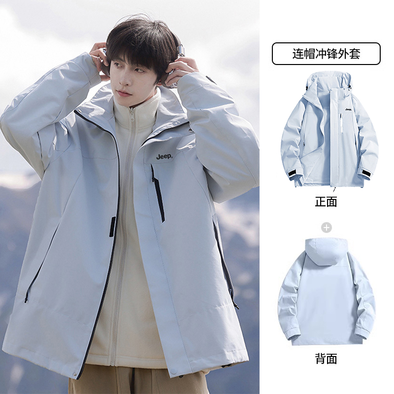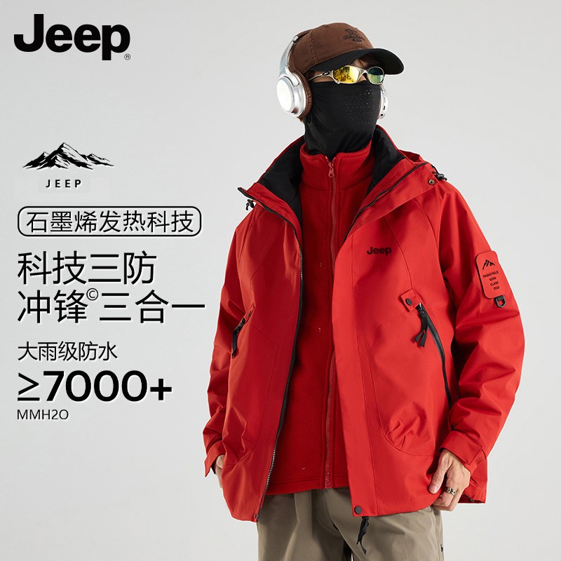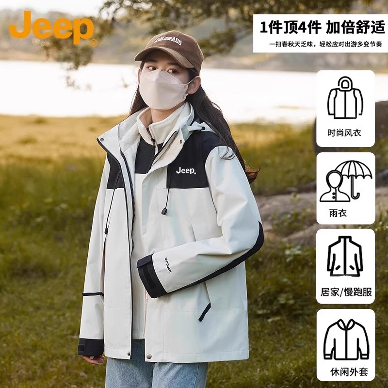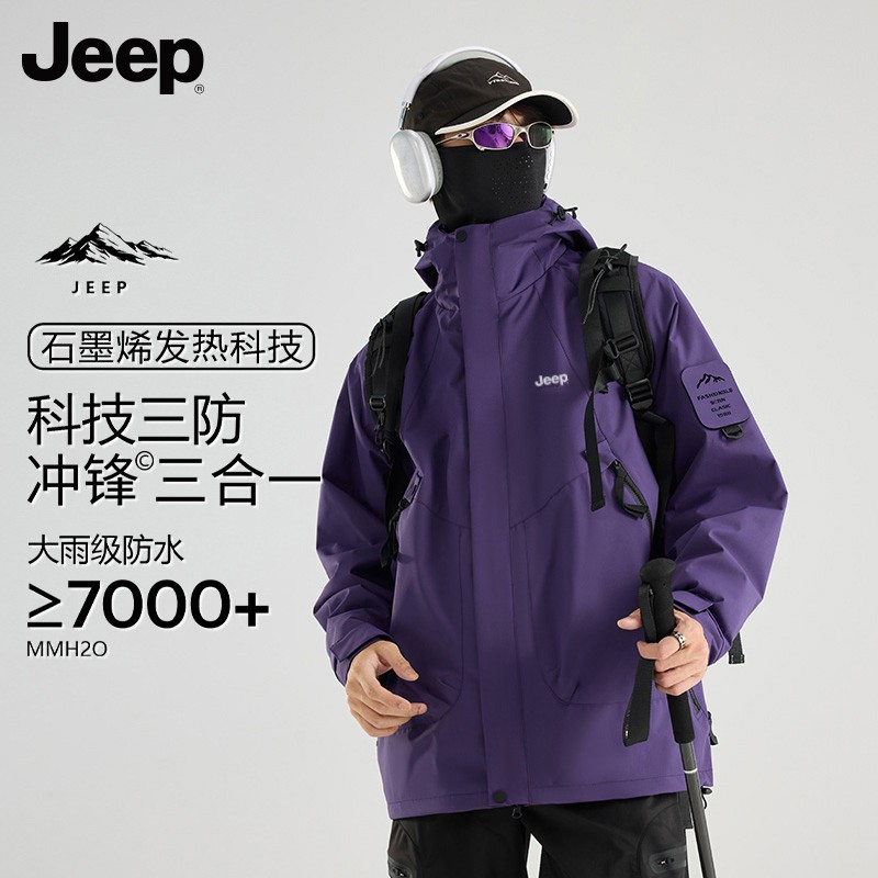 Jeep Jeep Jacket Fall Winter Men's and Women's Charge Water Repellent Hiking Jacket 2025 3-in-1 Sports Top Jacket