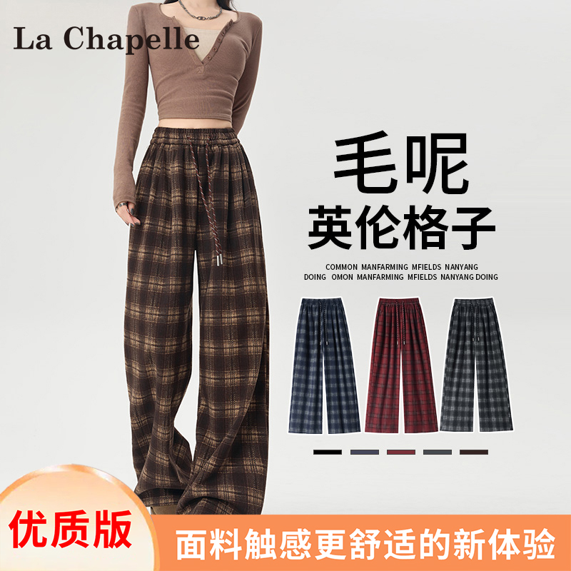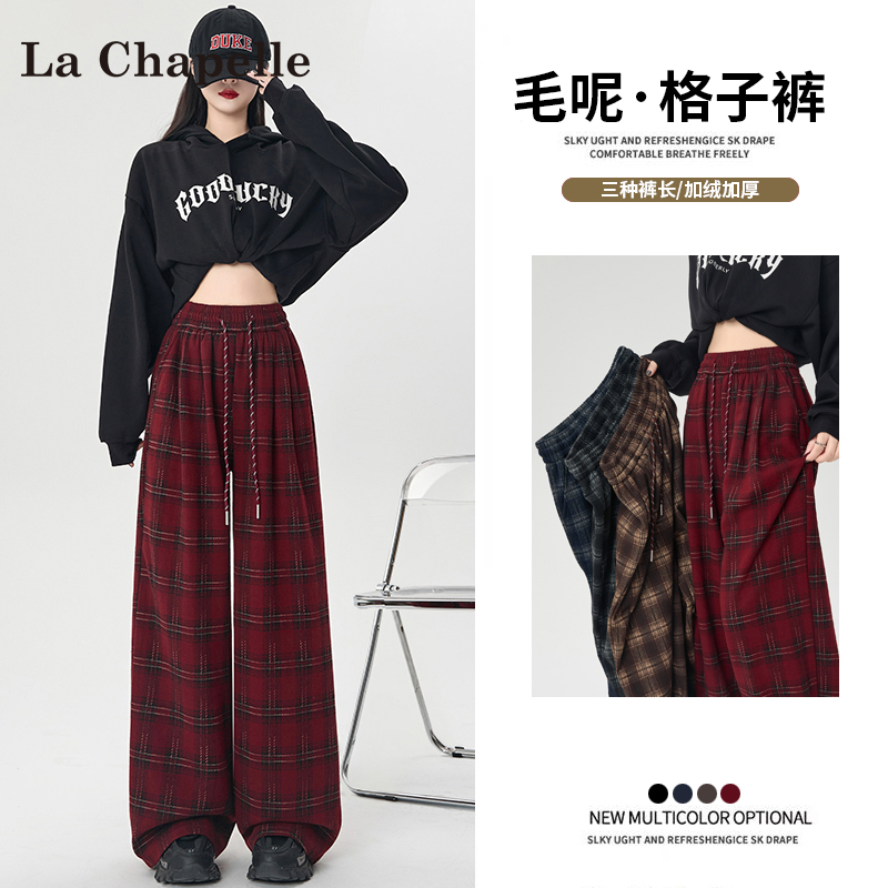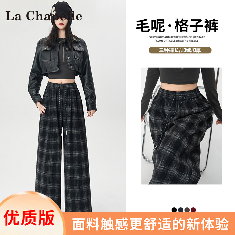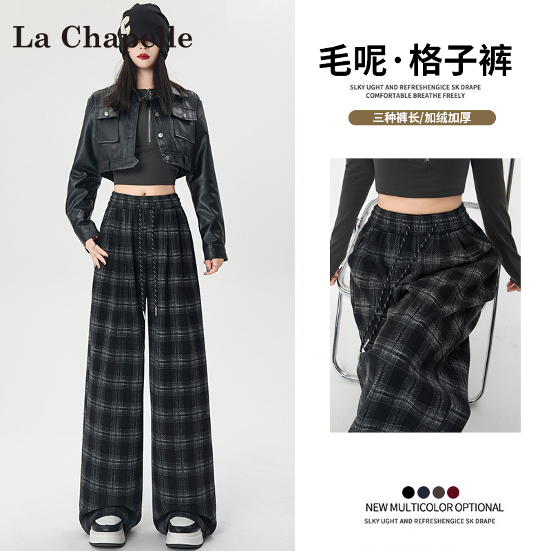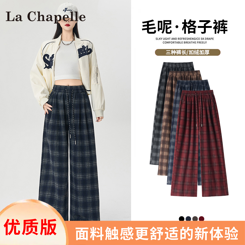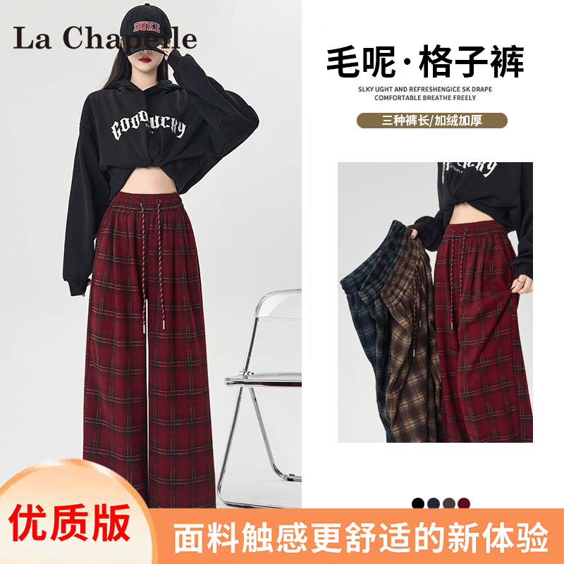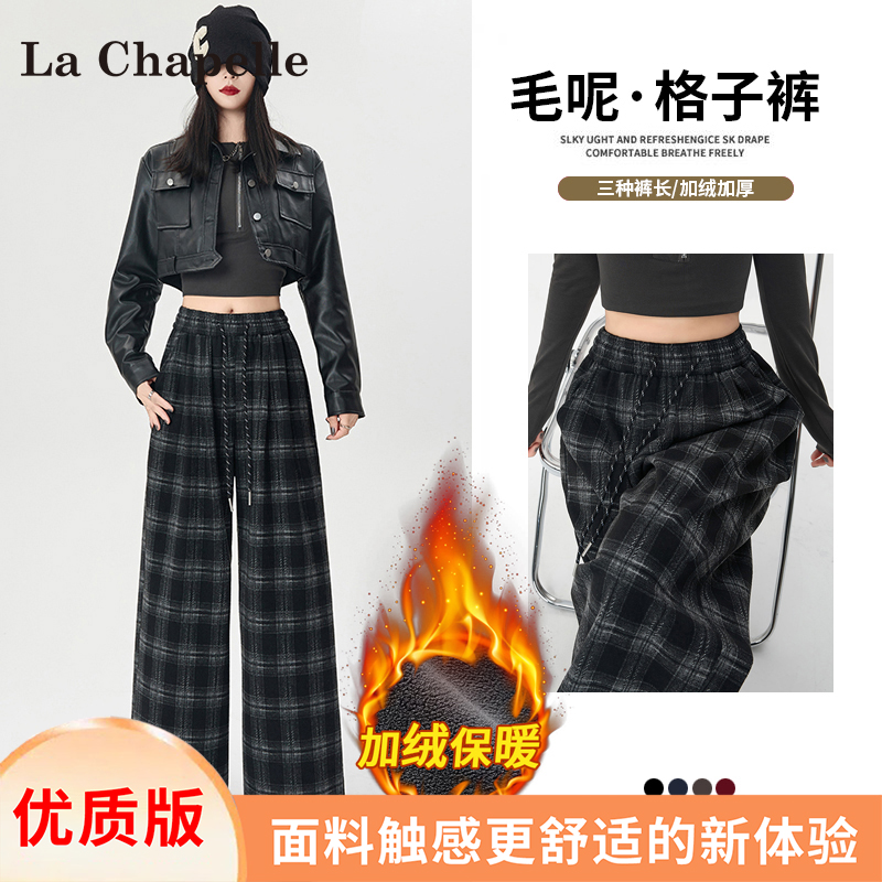 La Chapelle fleece thickened plaid slacks women's autumn/winter 2025 new small high-waisted drape wide-leg pants