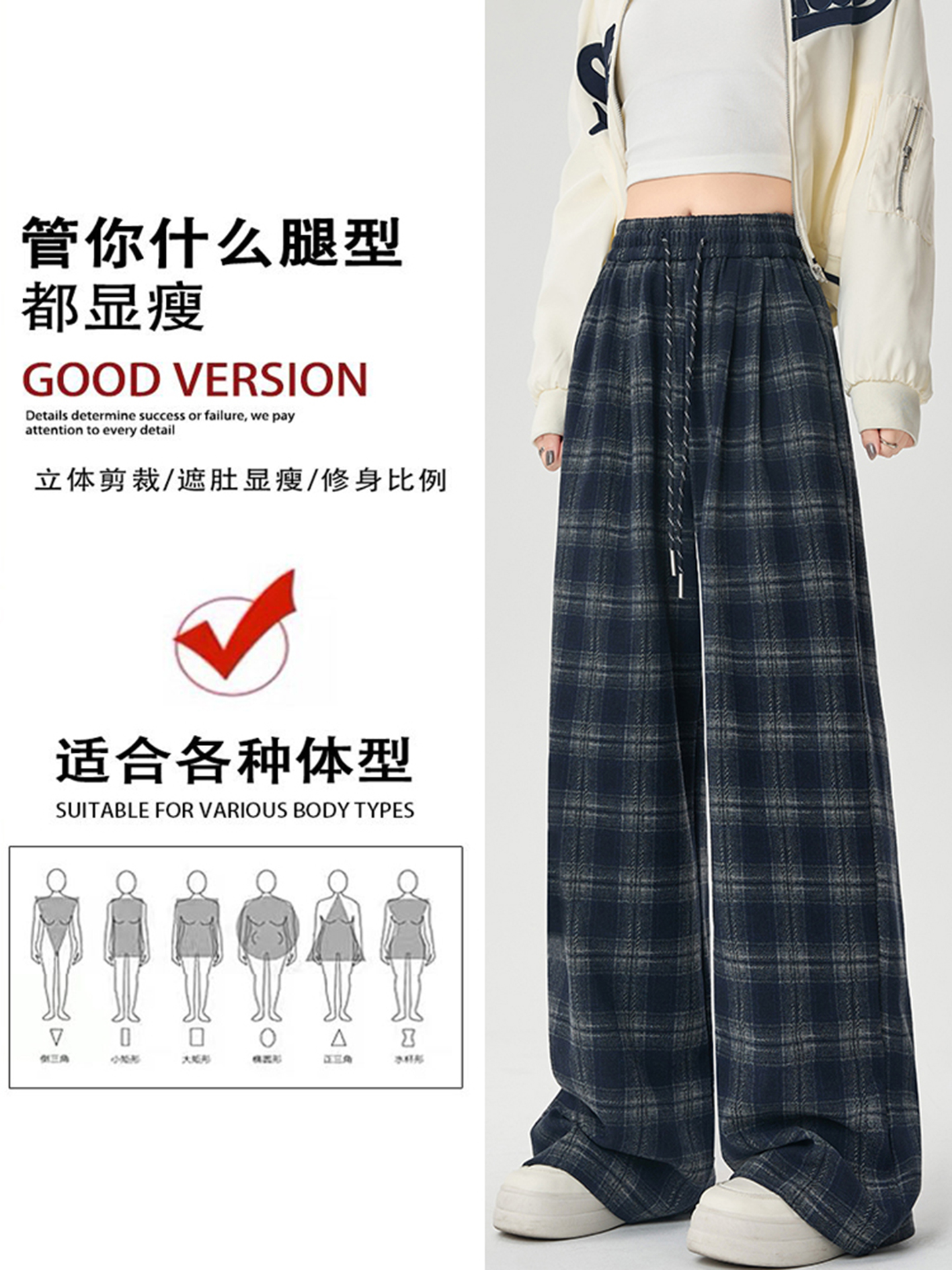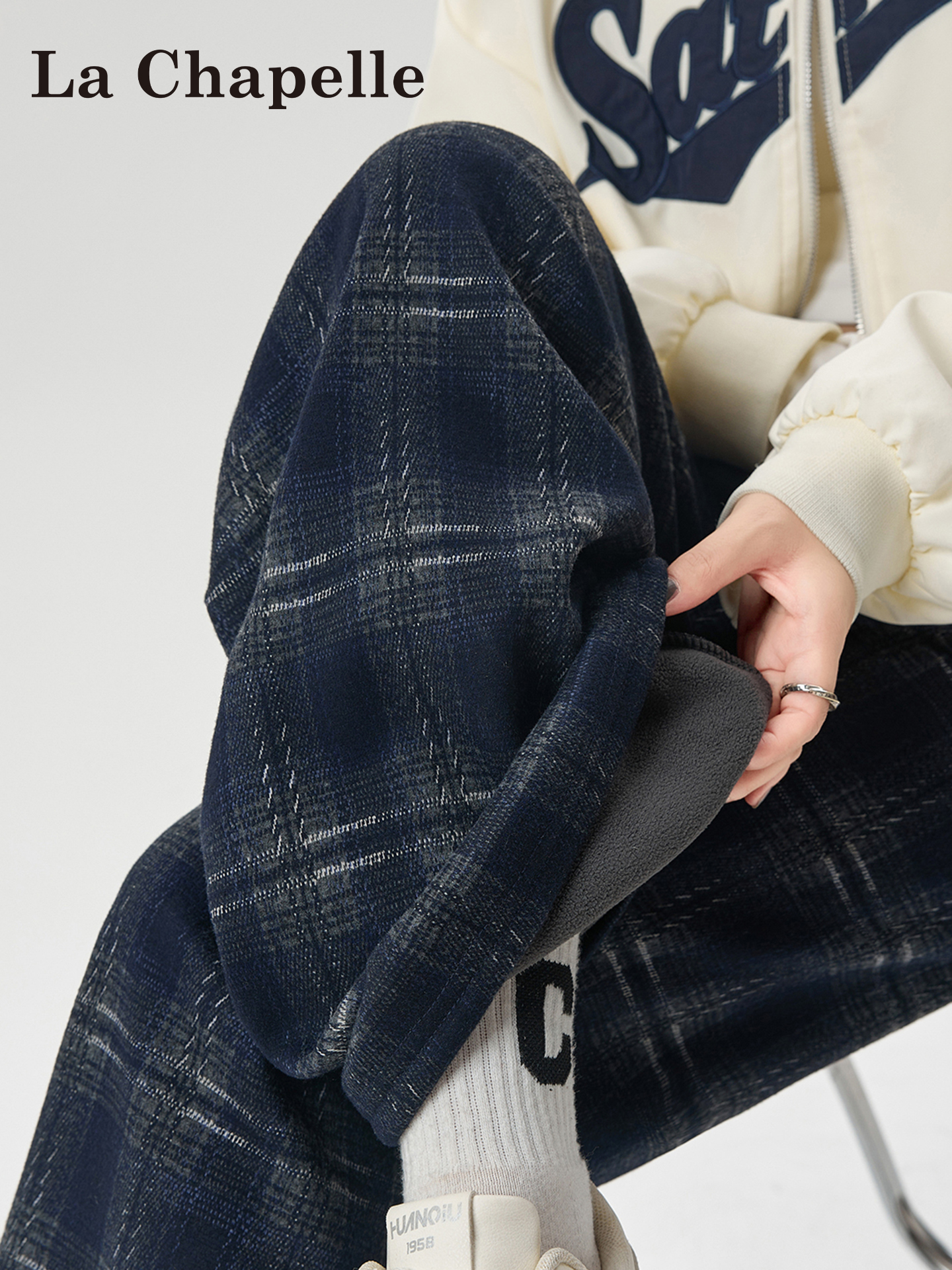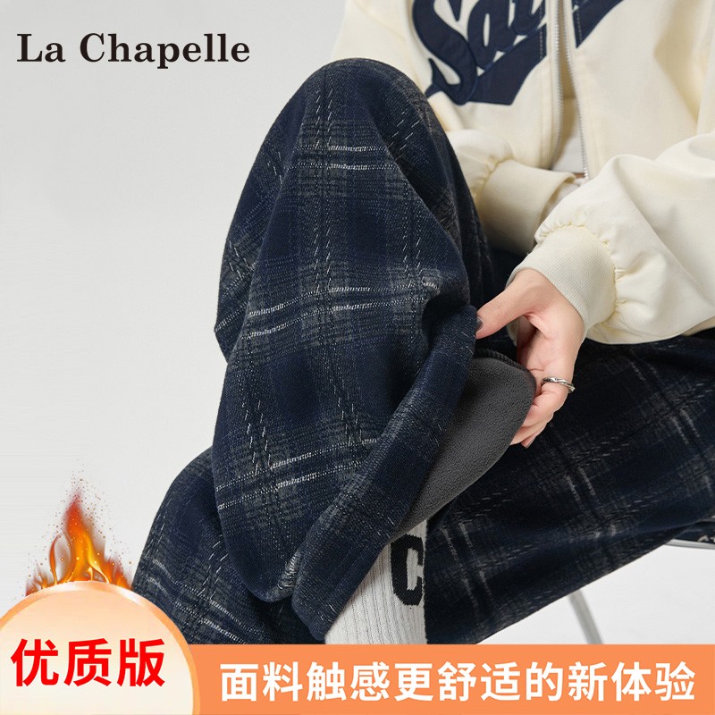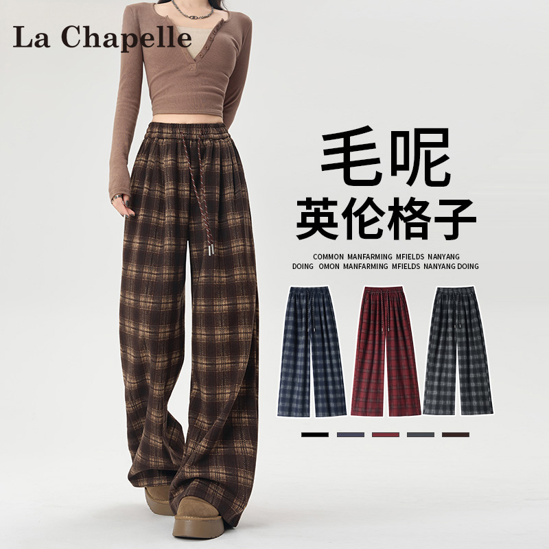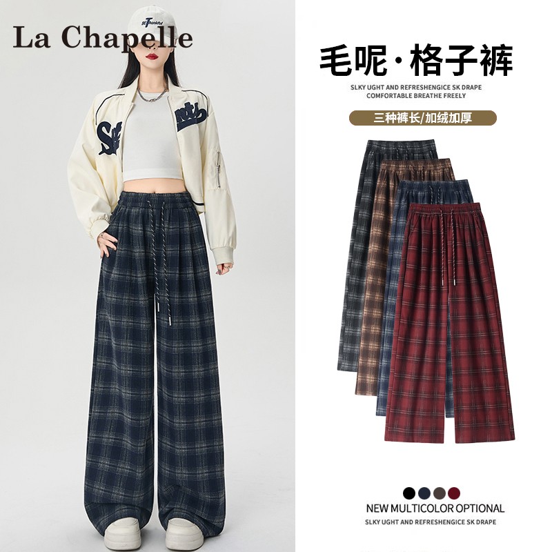 La Chapelle fleece thickened plaid slacks women's autumn/winter 2025 new small high-waisted drape wide-leg pants