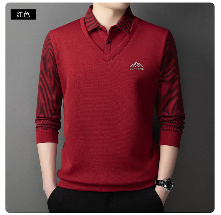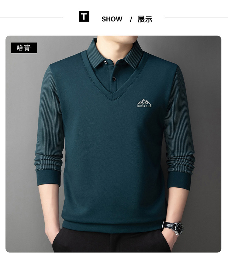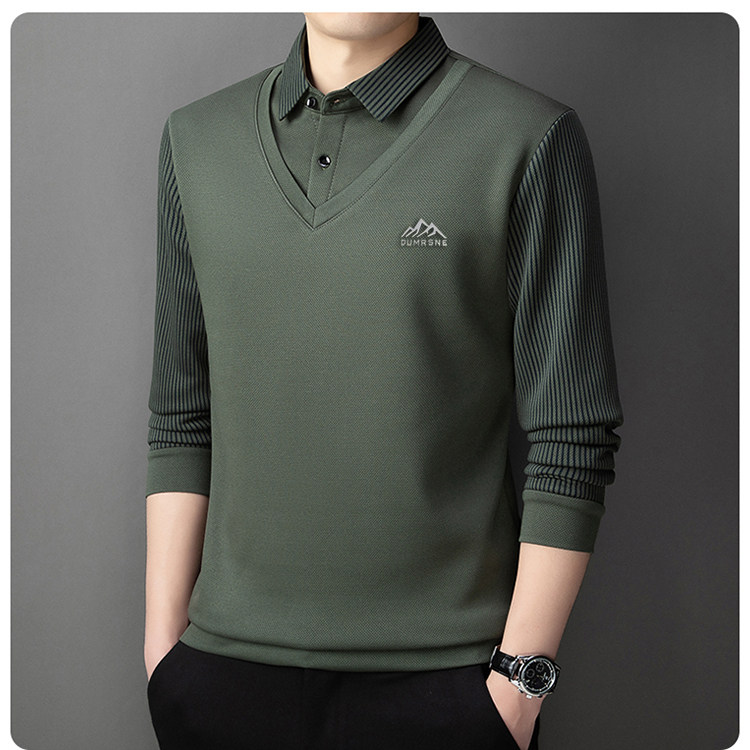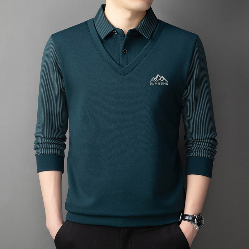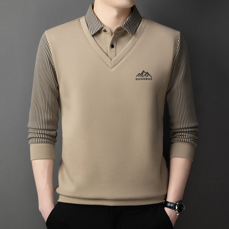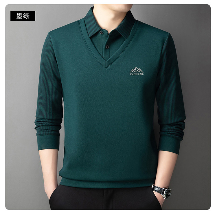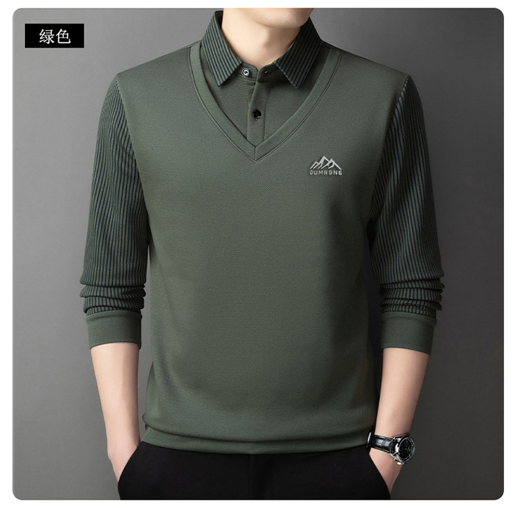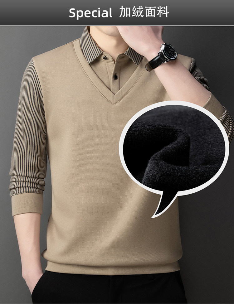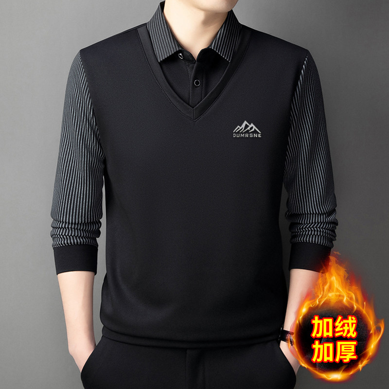 Woodpecker Autumn and Winter New High-end Men's Fleece Fake Two Printed Base Layers Thickened Shirt Collar Warm Sweatshirt