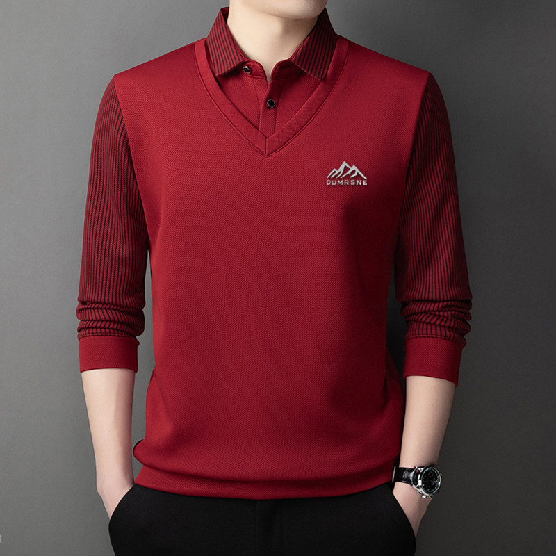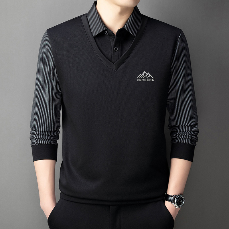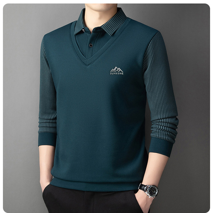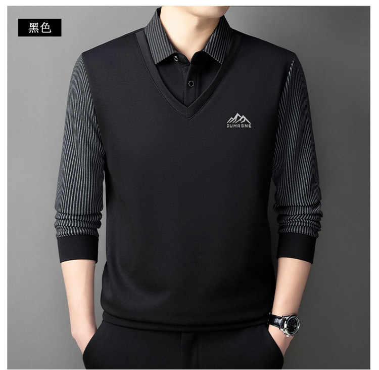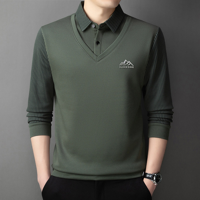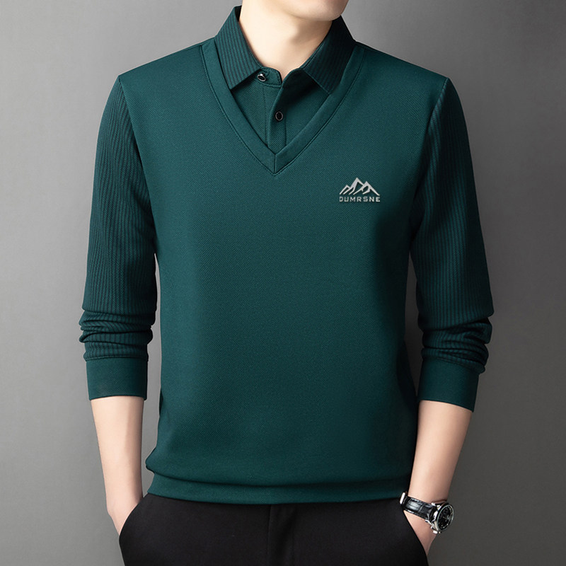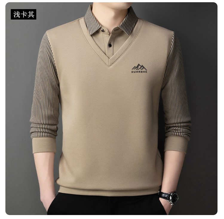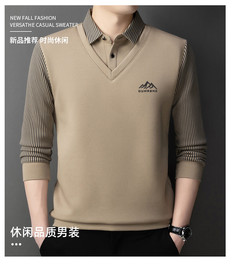 Woodpecker Autumn and Winter New High-end Men's Fleece Fake Two Printed Base Layers Thickened Shirt Collar Warm Sweatshirt