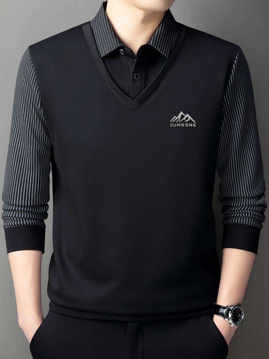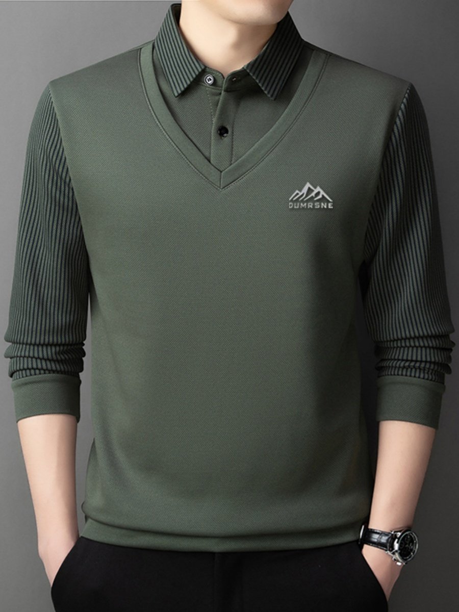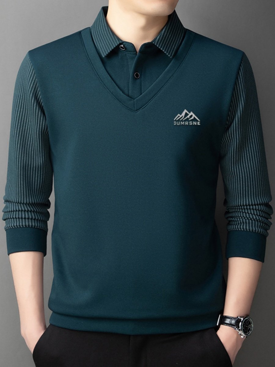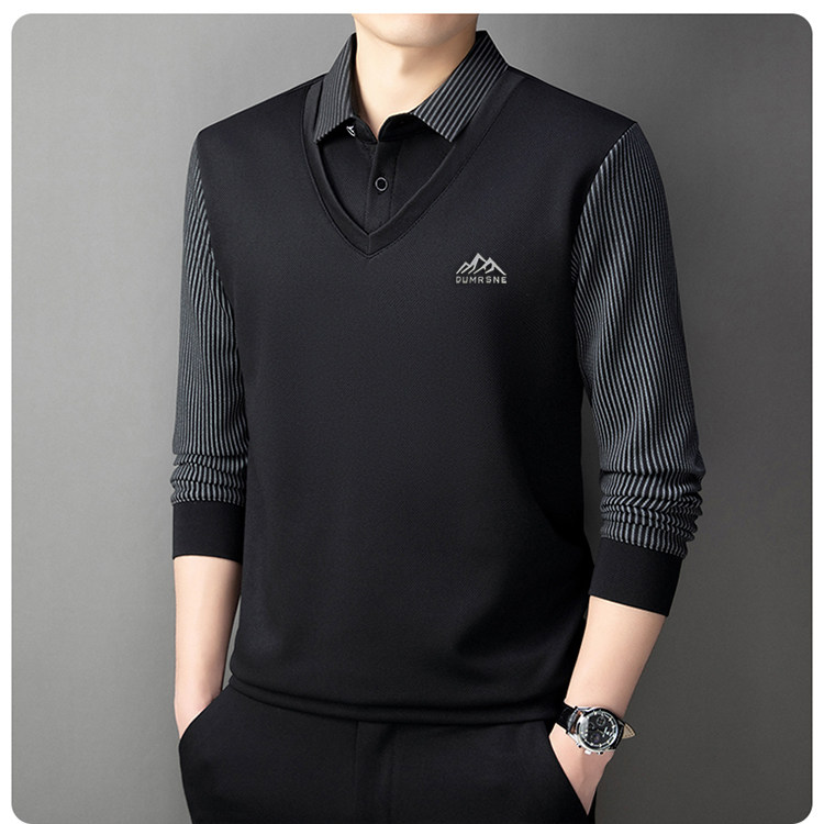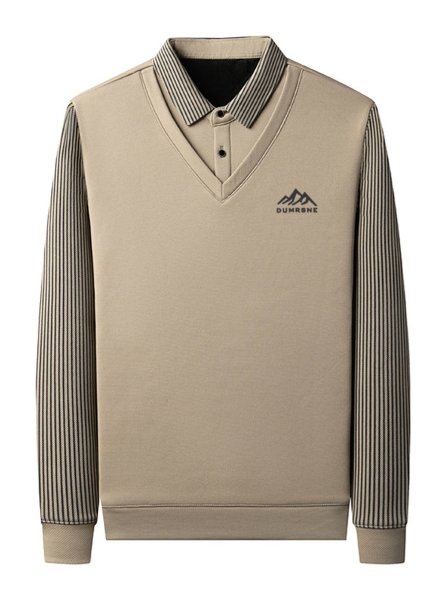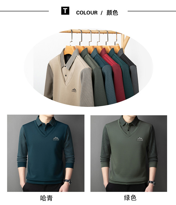 Woodpecker Autumn and Winter New High-end Men's Fleece Fake Two Printed Base Layers Thickened Shirt Collar Warm Sweatshirt
