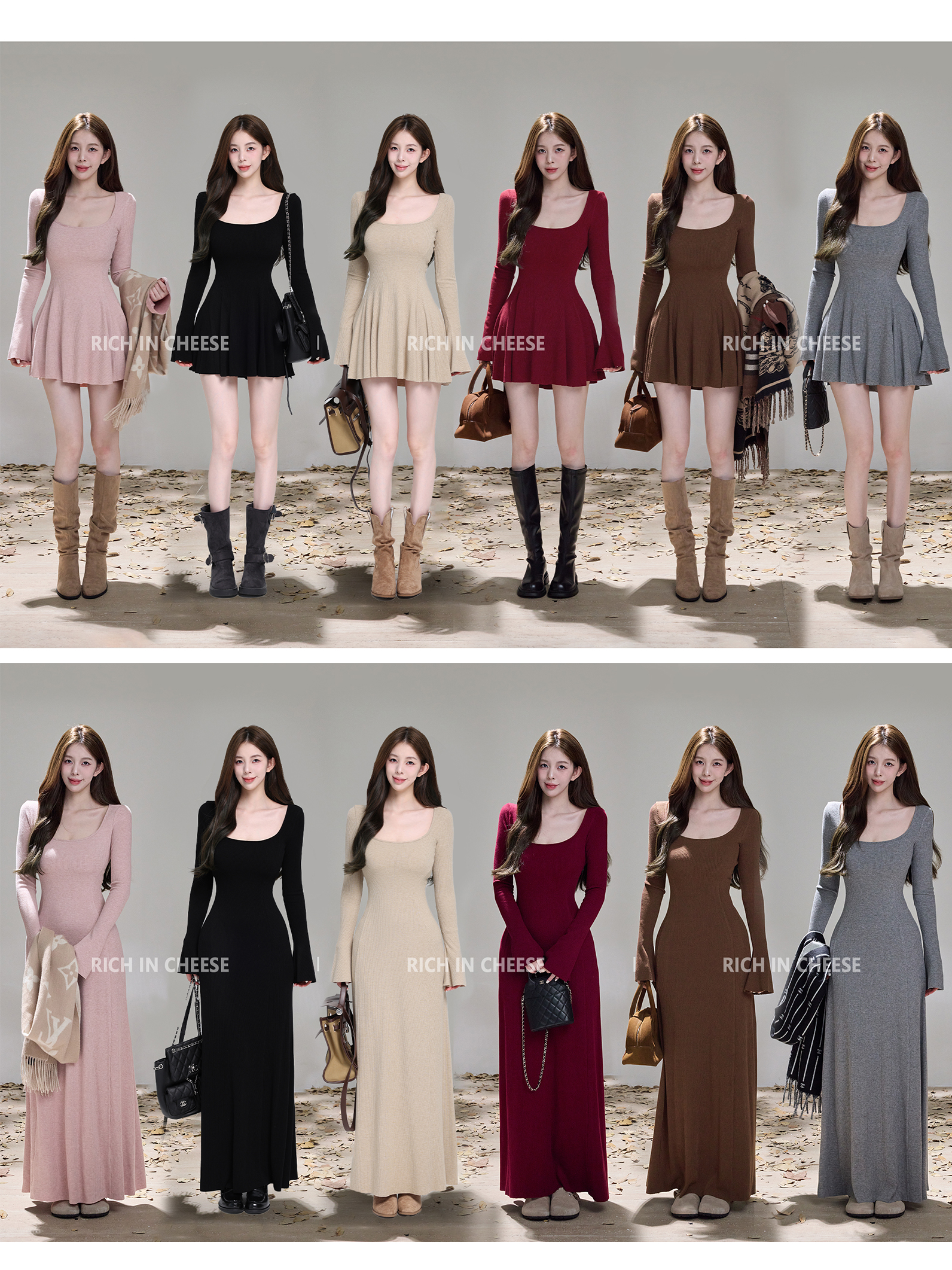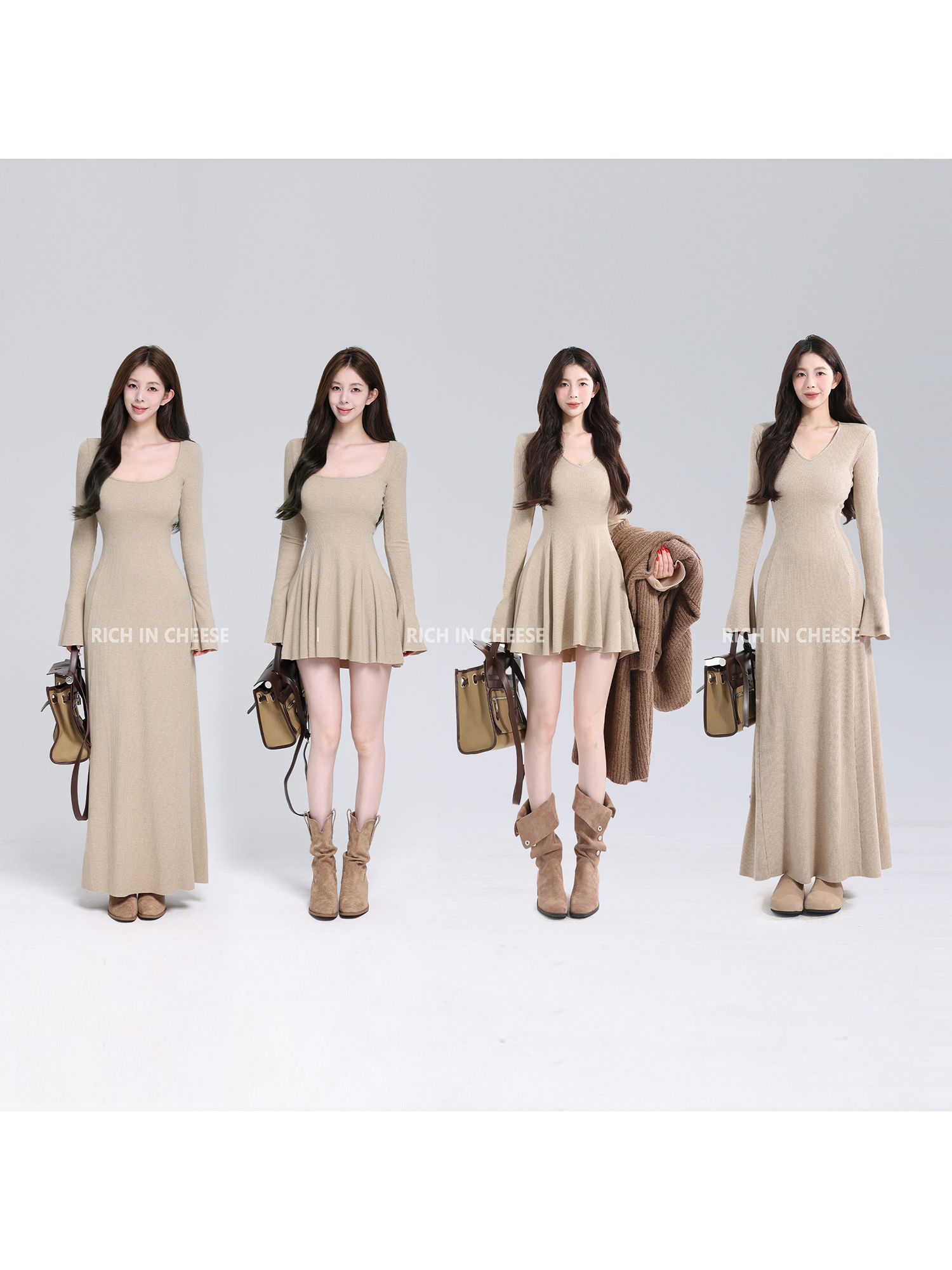 Shu Hulei tea-scented croissant [inner king] long-sleeved knitted dress women's waist slimming with skirts