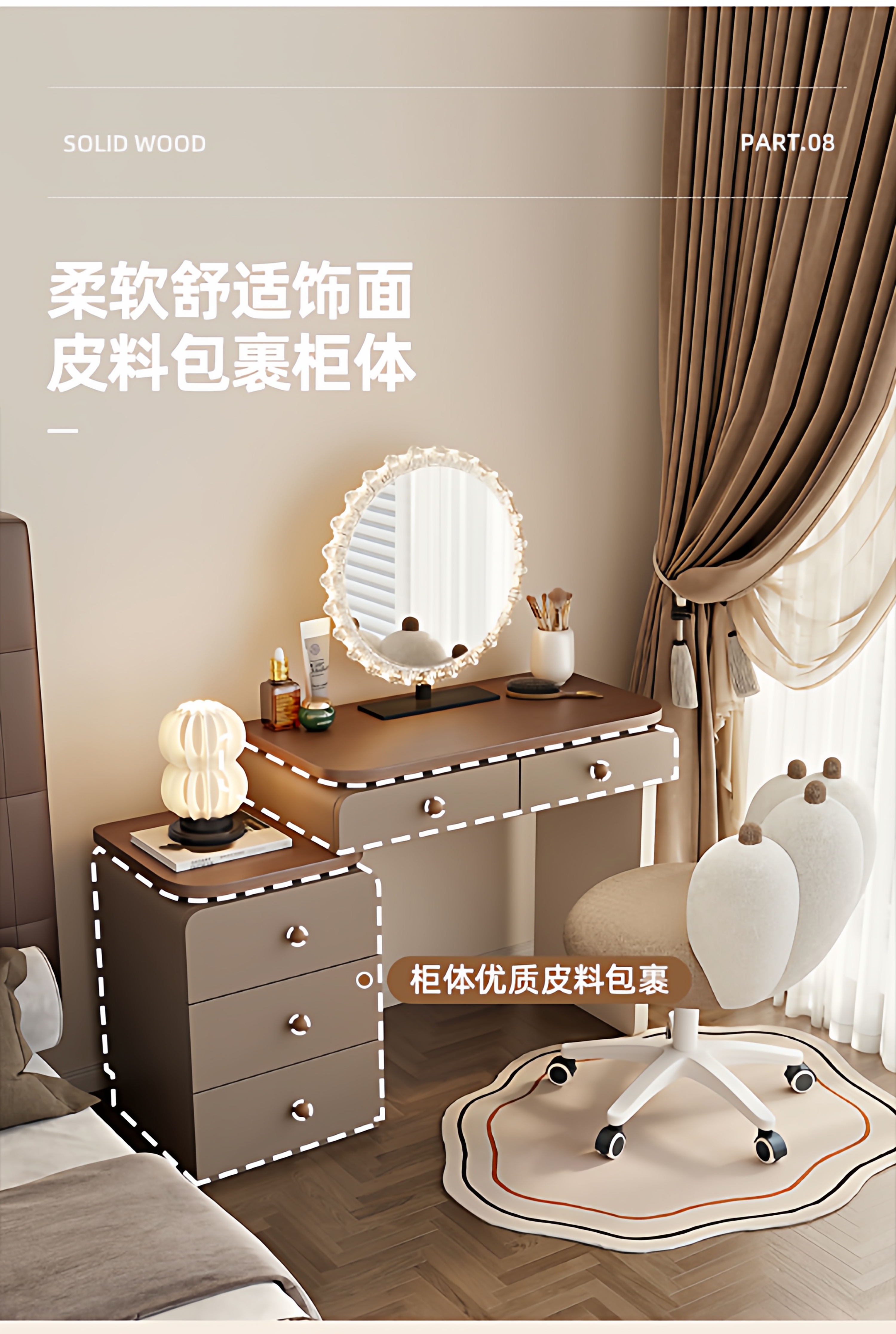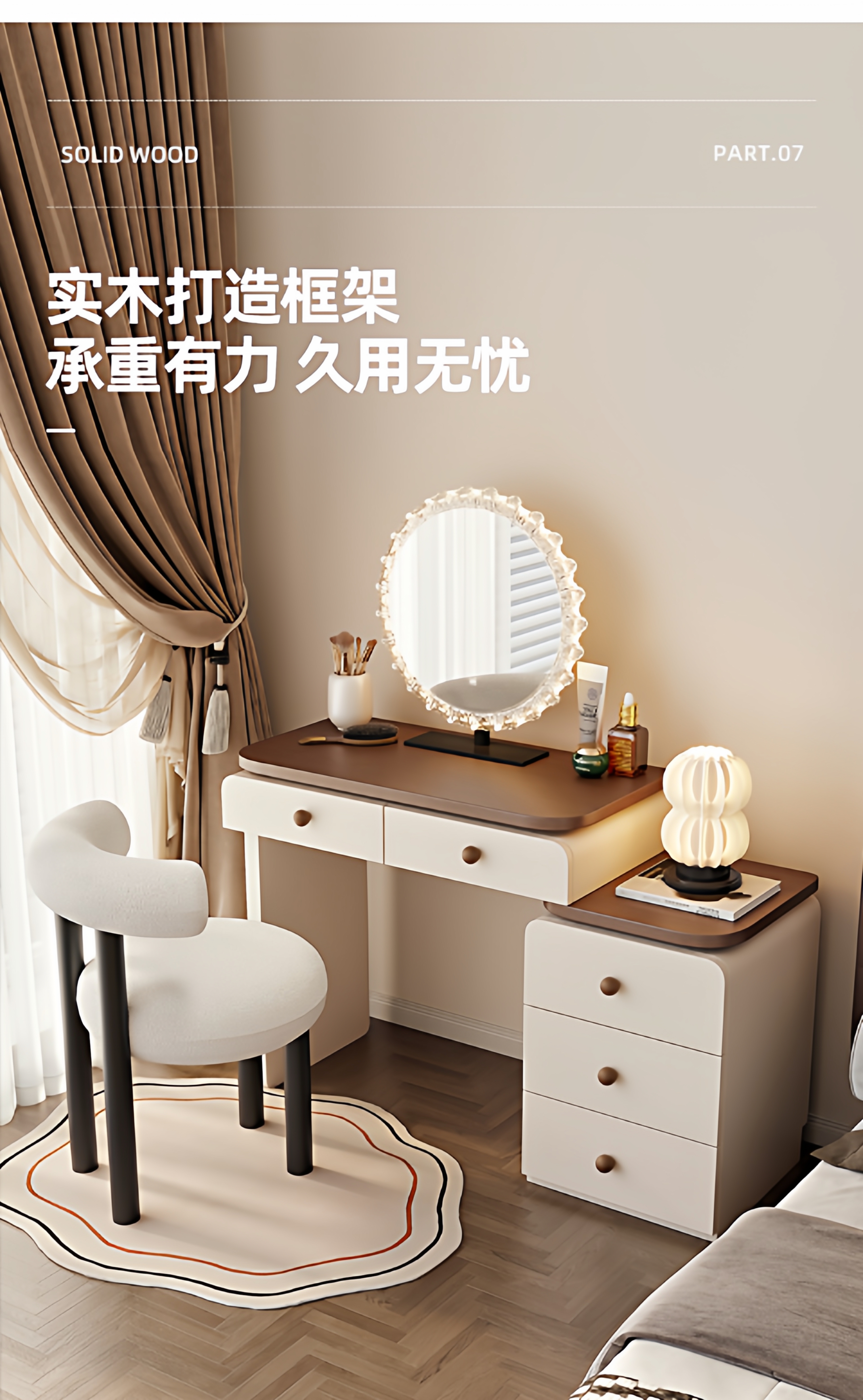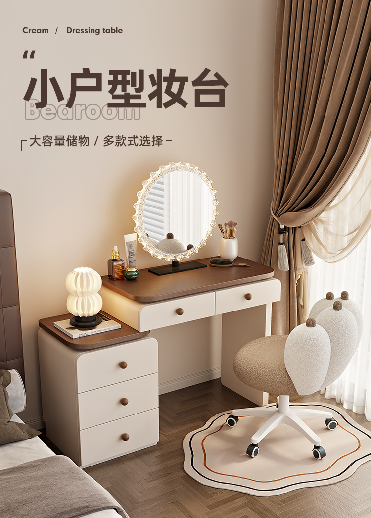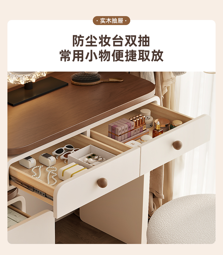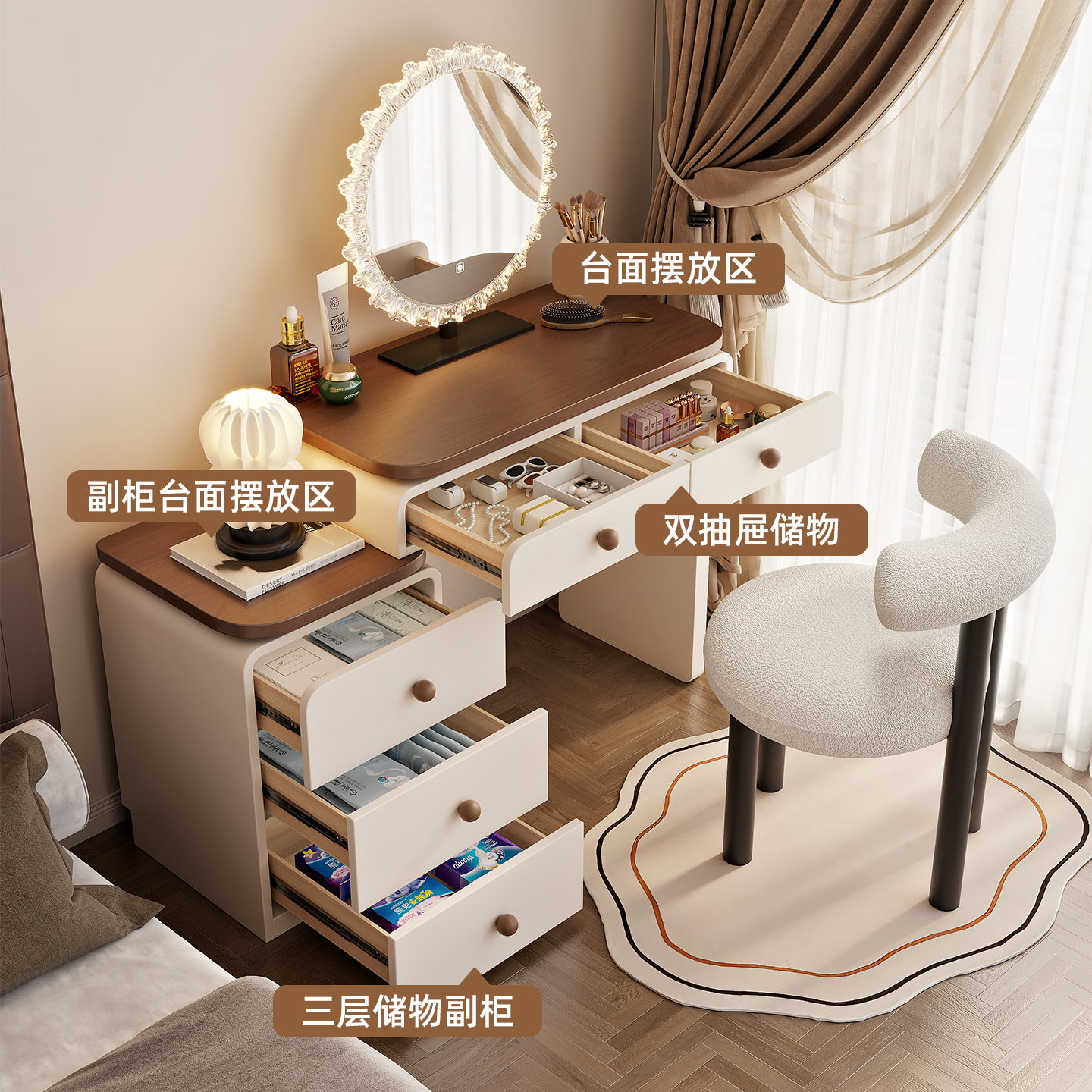 Small apartment solid wood dresser, bedroom modern and simple, 2025 new master bedroom cream-style makeup table and drawer integrated