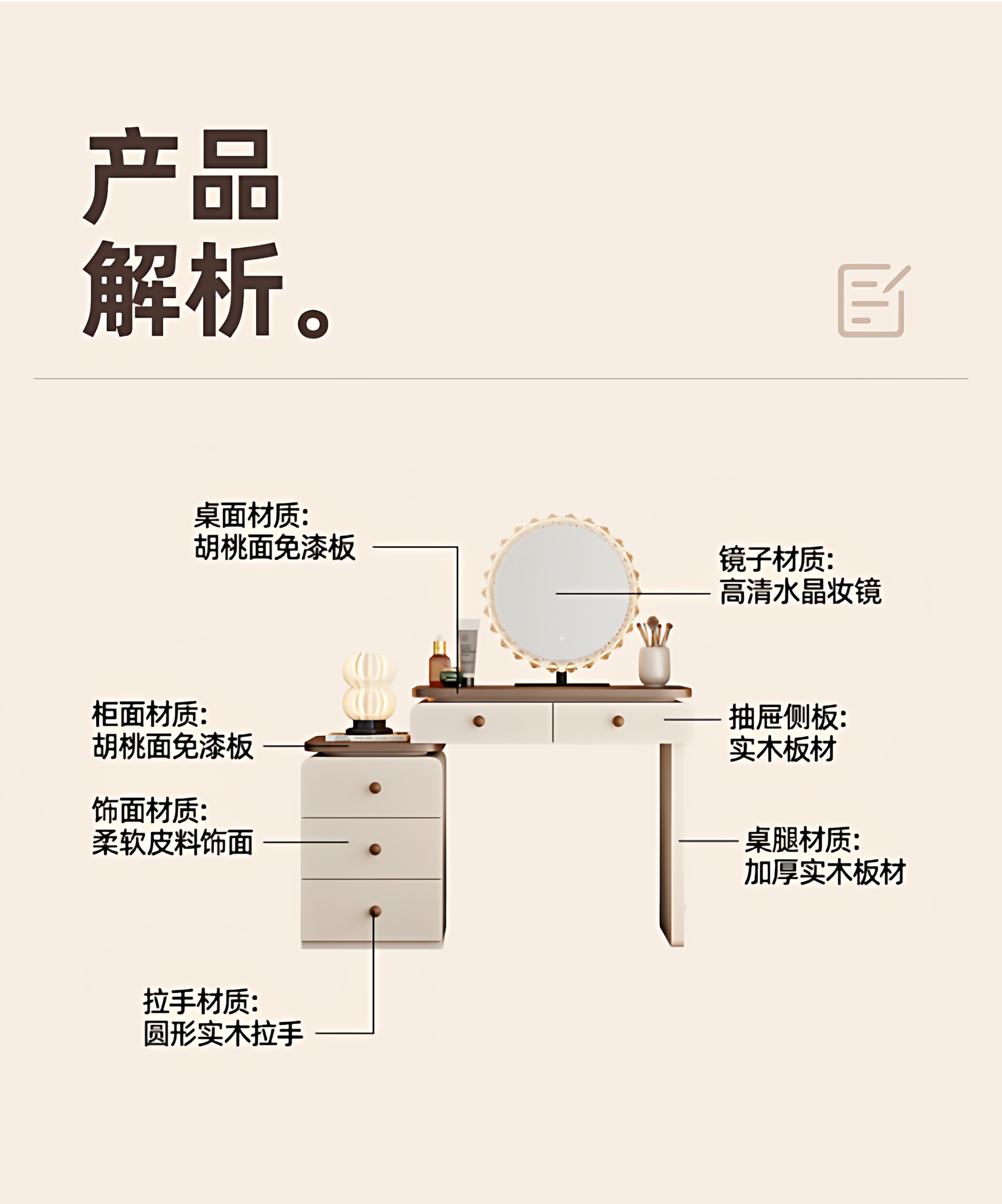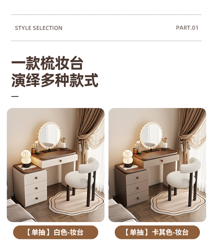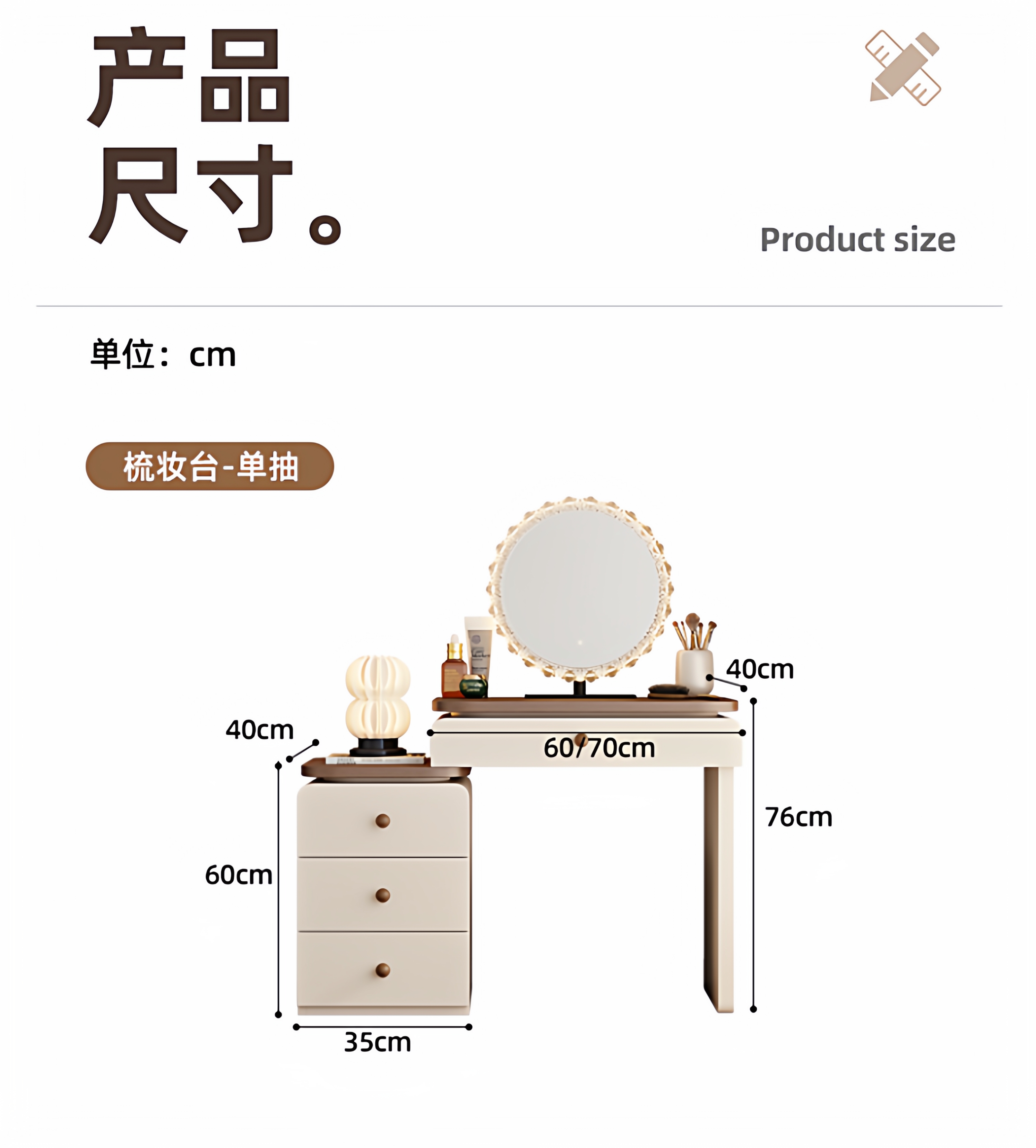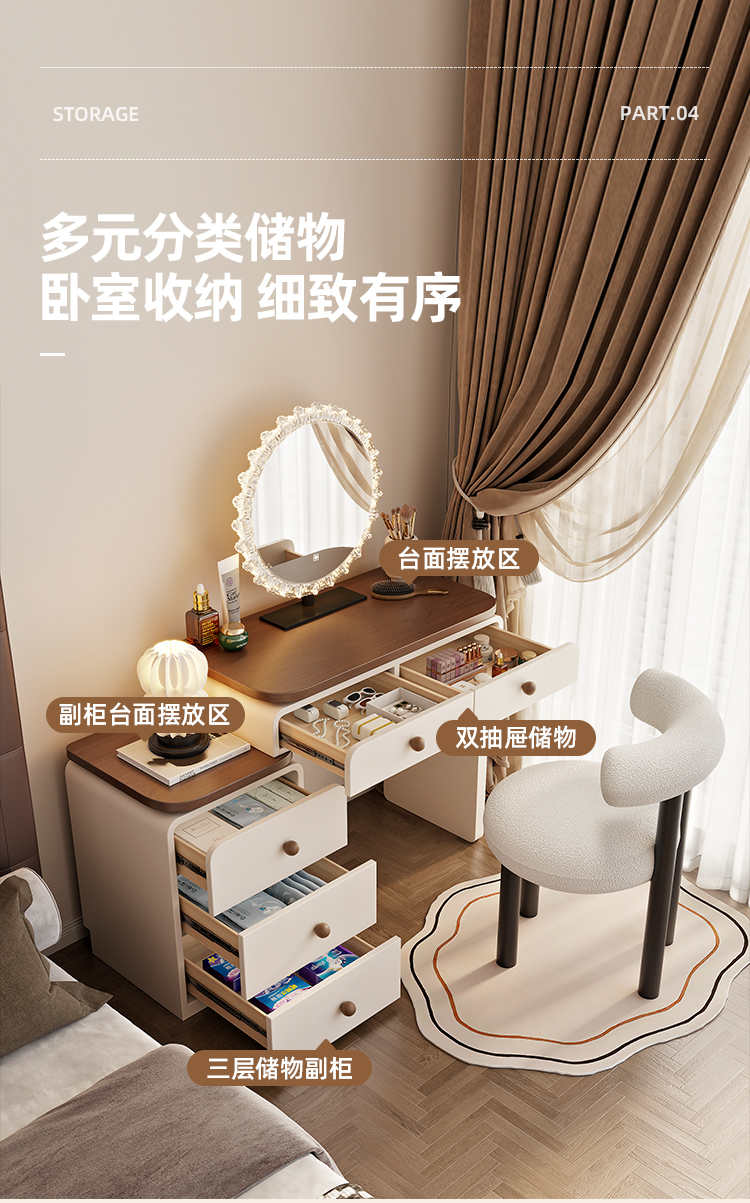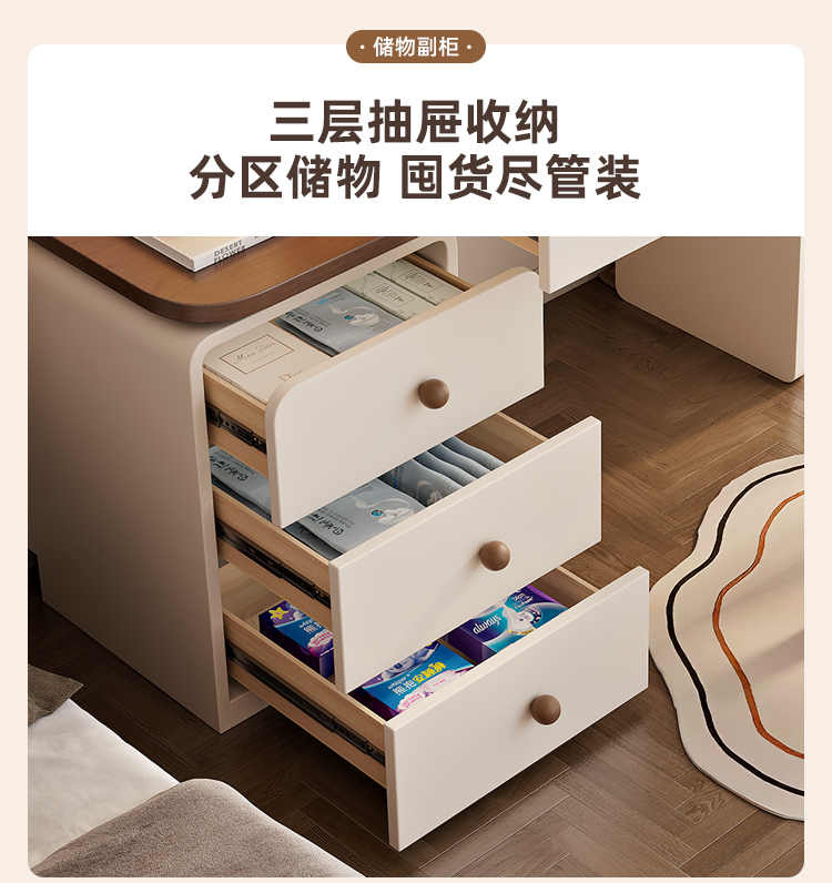Small apartment solid wood dresser, bedroom modern and simple, 2025 new master bedroom cream-style makeup table and drawer integrated