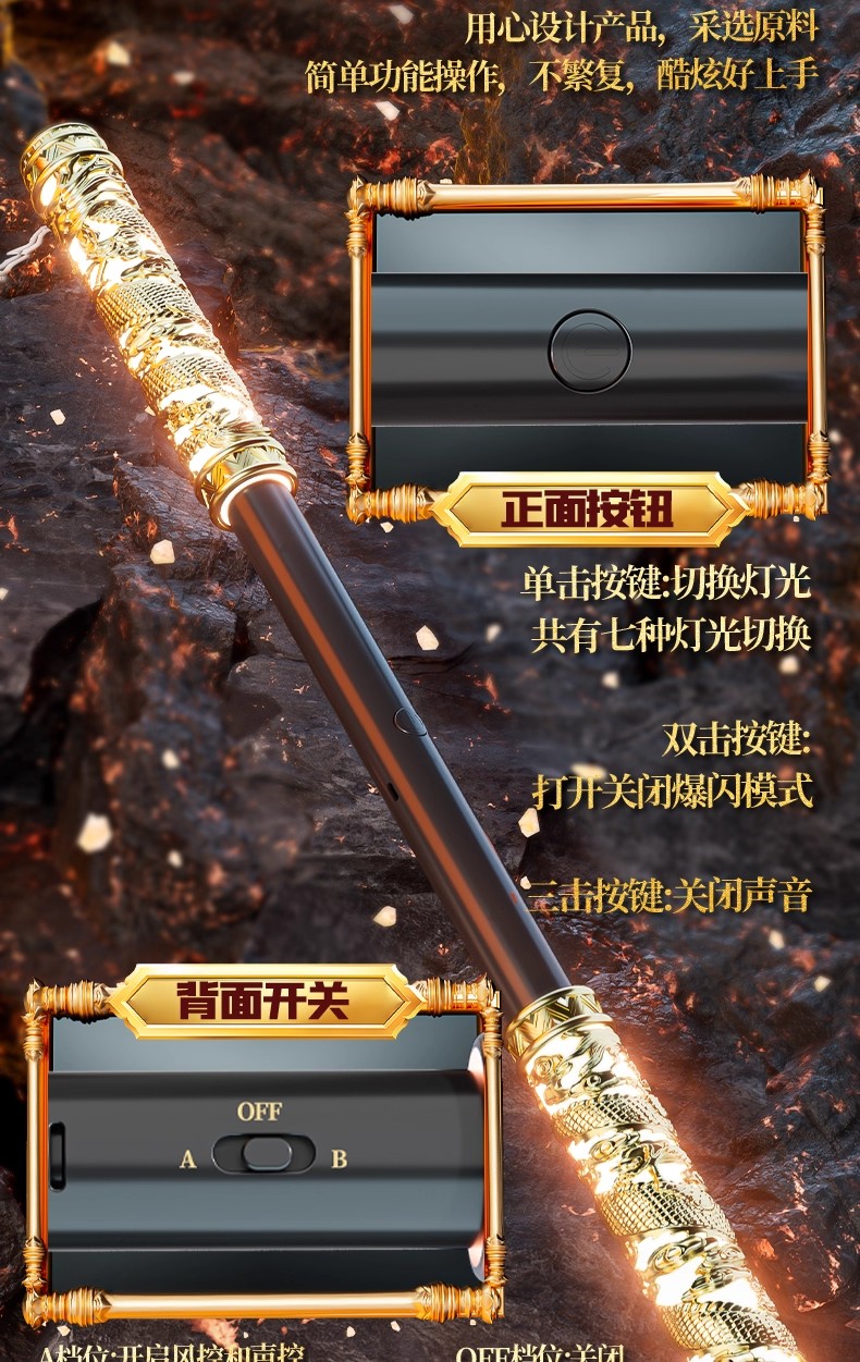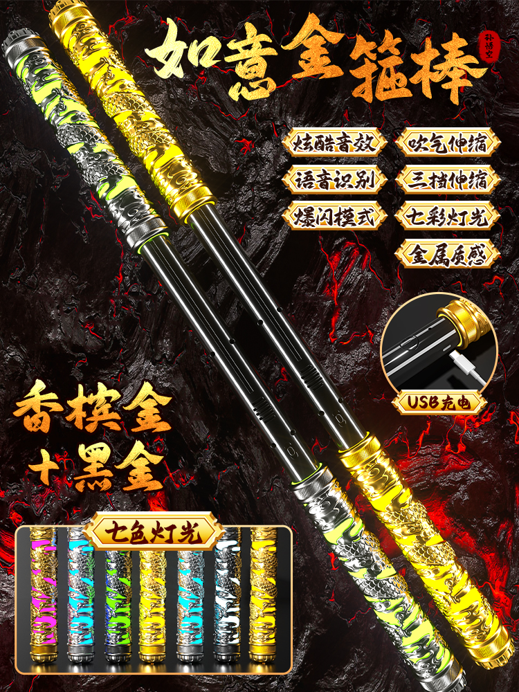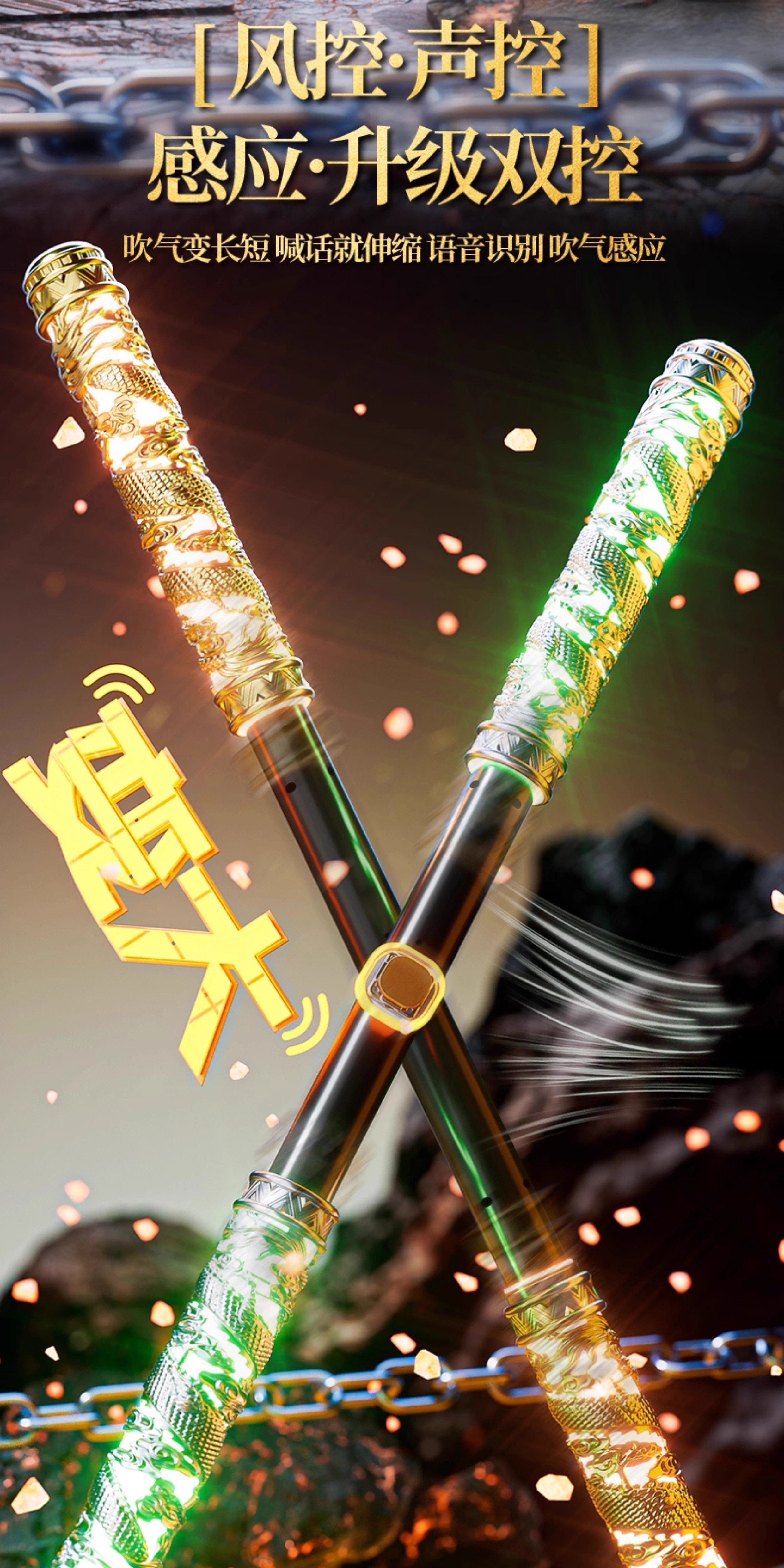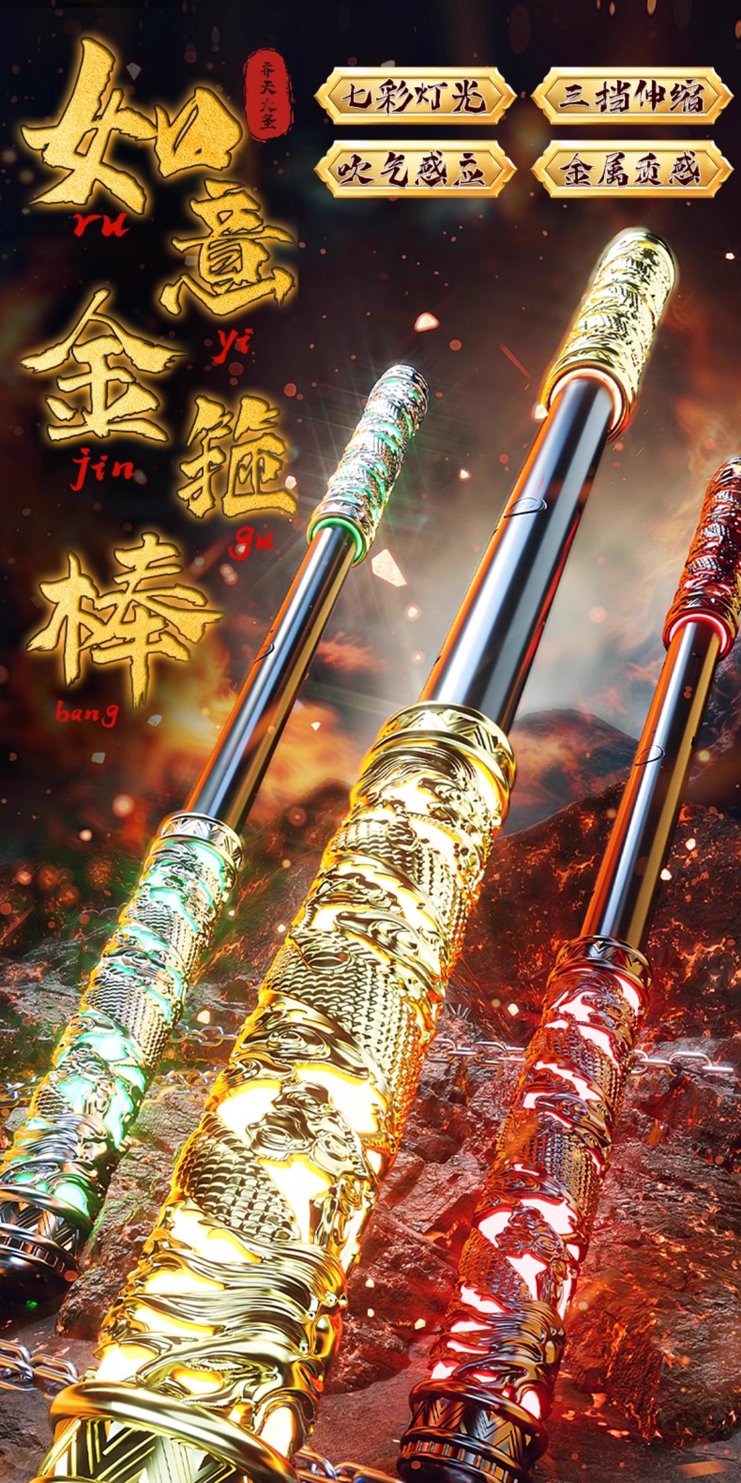 Voice-activated enlargement Ruyi golden hoop stick automatic retractable luminous children's Monkey King toy boy black myth gift